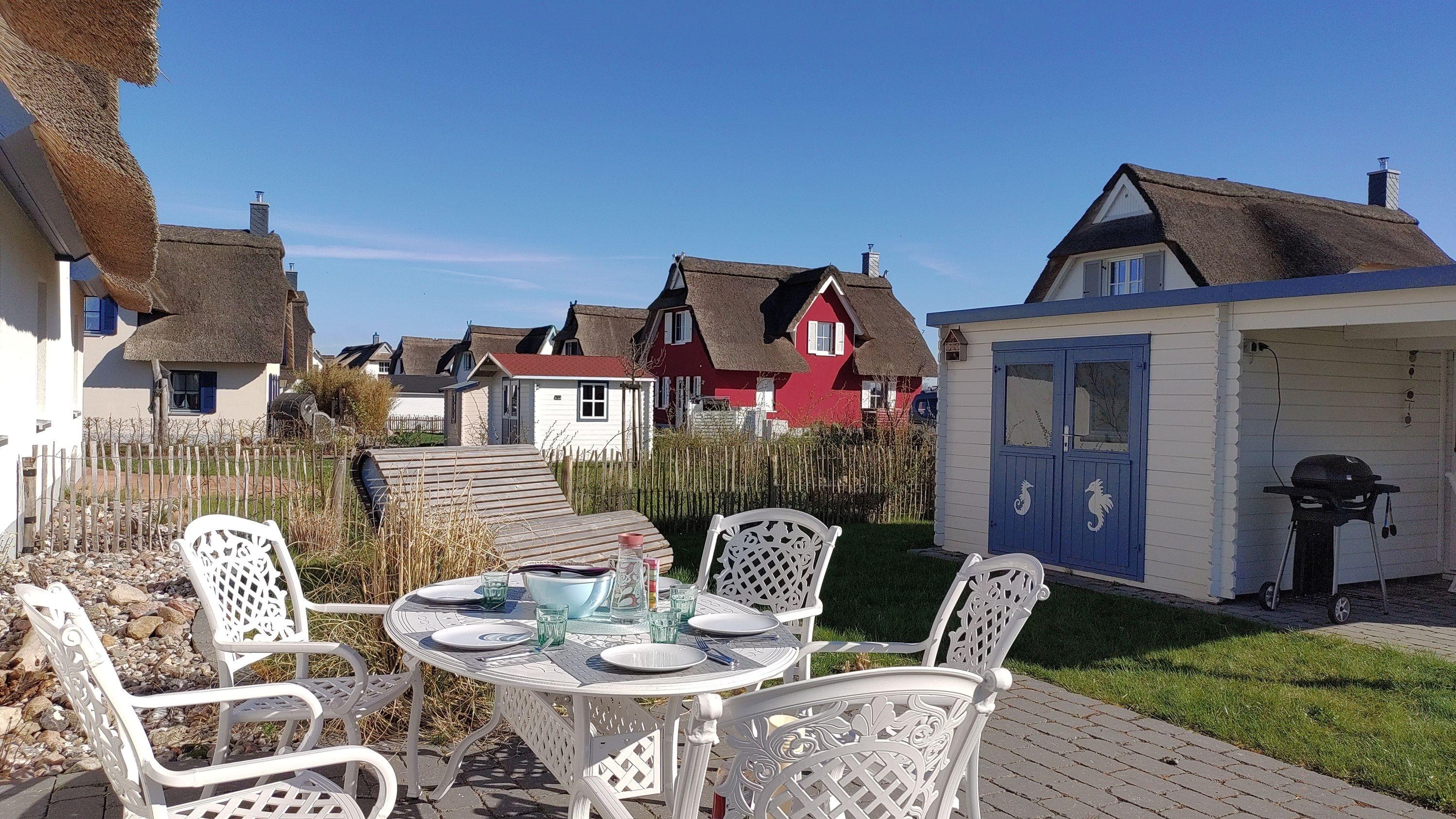 Im Gartenhaus mit sich anfügender Lounge können Sie Ihre mitgebrachten Fahrräder bequem unterstellen und den Tag gemütlich ausklingen lassen. Ein Napoleon Elektrogrill ermöglicht Ihnen hier außerdem köstliche Grillabende.