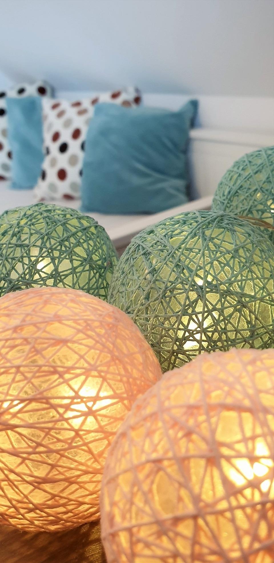 Die Fenster sind mit Plissees und Schals ausgestattet.