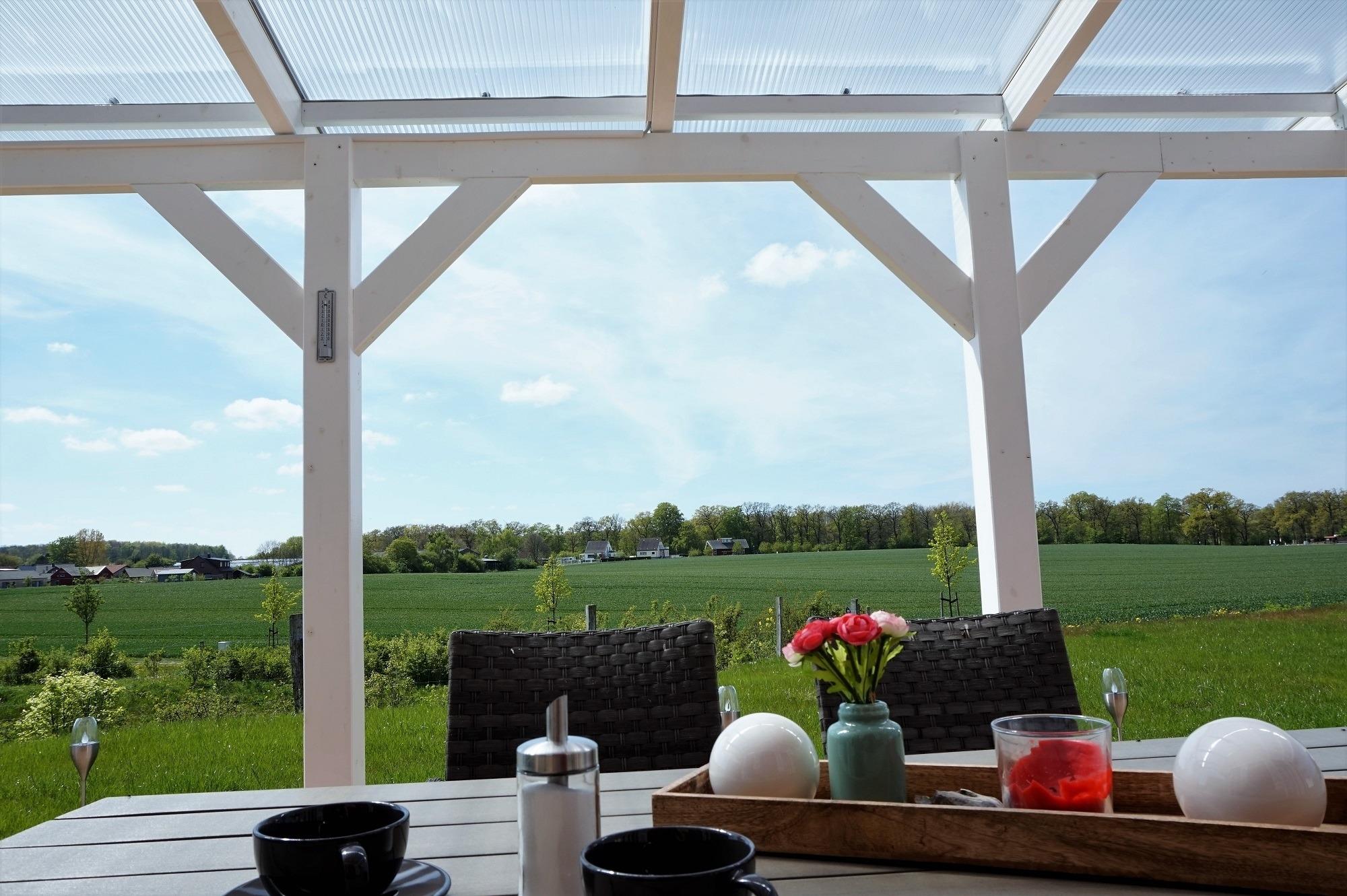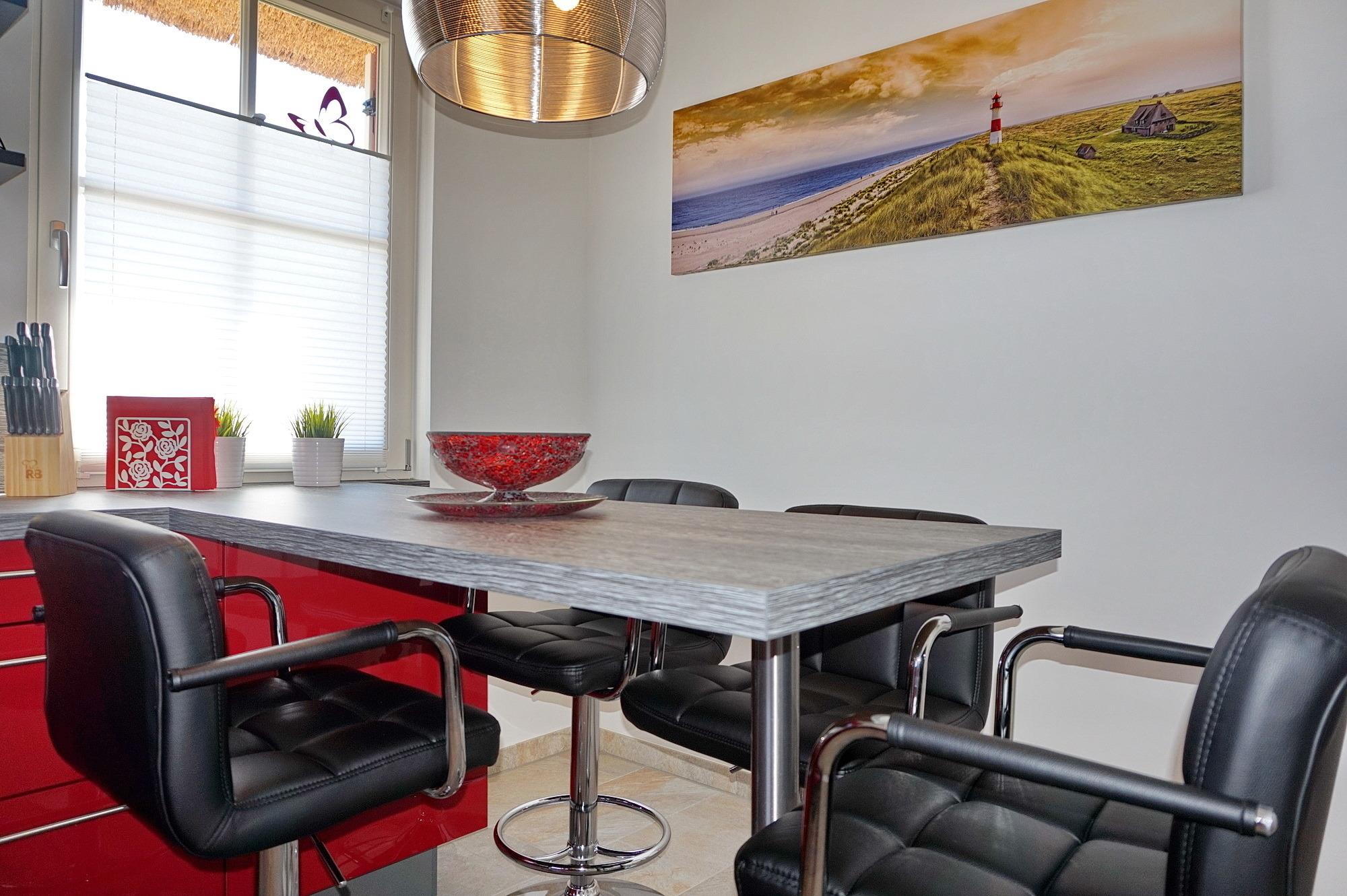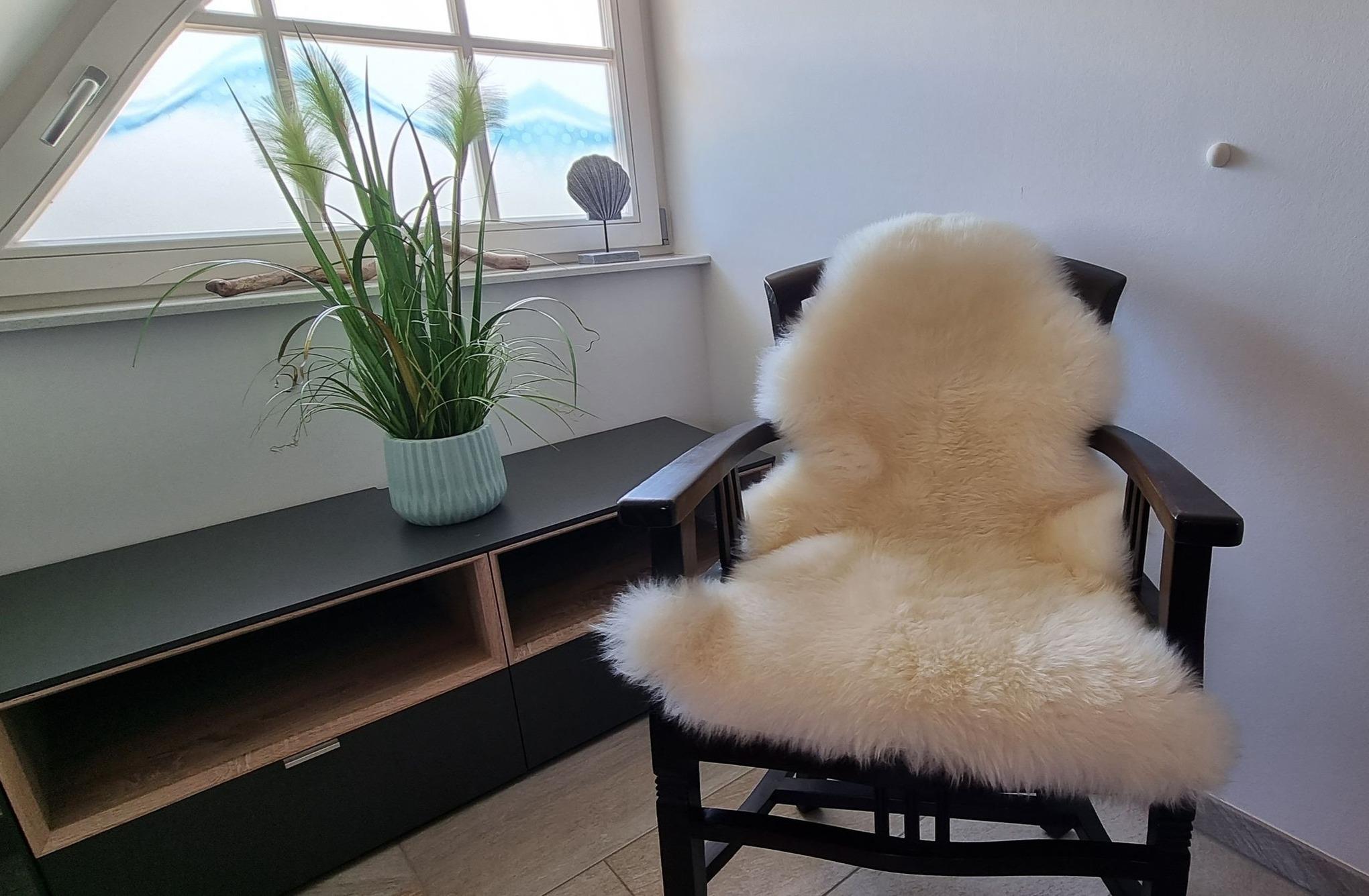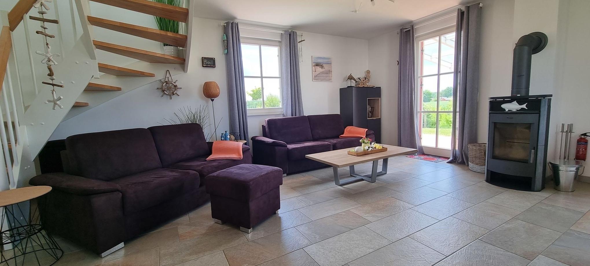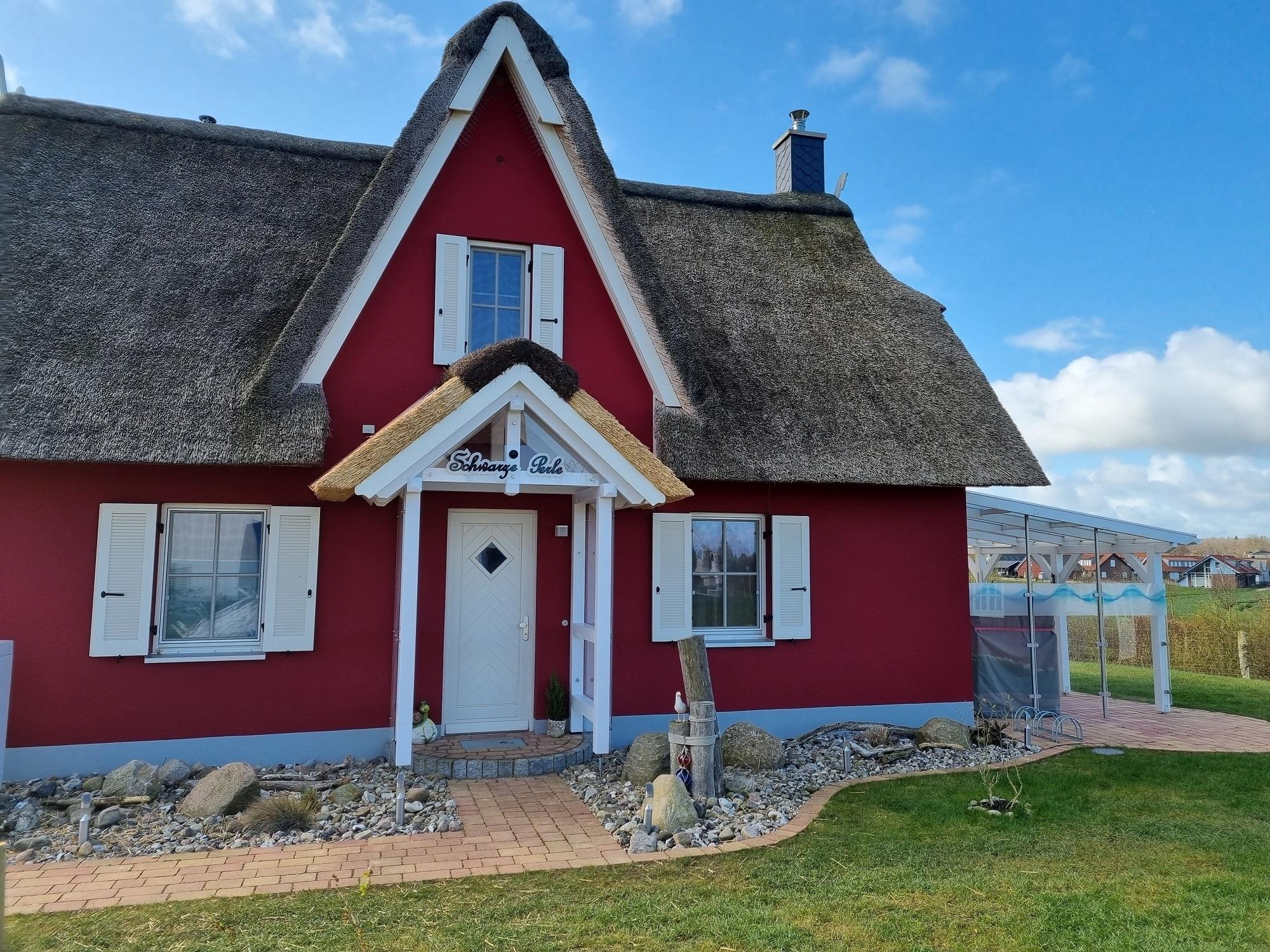 Das Ferienhaus "Schwarze Perle" befindet sich am Rand des Reethausgebietes "De Poeler Drift" im Erholungsort Zierow. Es ist modern und schick eingerichtet und bietet einen direkten Zugang zum Naturstrand über den Weg am Haus. Dies ermöglicht den Gästen, die Ruhe und Schönheit der Umgebung zu genießen. Die überdachte Terrasse bietet einen herrlichen Blick über die umliegenden Felder und Wiesen und lädt zum Entspannen in der Sonne ein. Die Einrichtung des Hauses ist gehoben und die separate Küche ist mit modernen Hochglanzmöbeln und Küchengeräten ausgestattet. Ein Essbereich mit Barhockern bietet eine gemütliche Möglichkeit, den Tag zu beginnen. Der großzügige Wohnbereich mit Zugang zur sonnigen Terrasse bietet viel Platz und ein Kamin sorgt für wohlige Wärme an kalten Tagen. Zwei große Sofas und ein Essbereich vervollständigen das farblich abgestimmte Ambiente des Raumes. Im gesamten Haus ist eine Fußbodenheizung verlegt. Im Erdgeschoss befindet sich auch ein zweites Bad mit Wellness-Dusche, WC und Sauna, ideal zum Entspannen nach einem langen Strandspaziergang. Im Obergeschoss gibt es zwei Schlafzimmer. Das sogenannte Kinderzimmer ist mit einem ausziehbaren IKEA-Kojenbett ausgestattet, das Platz für zwei Personen bietet. Das zweite Schlafzimmer verfügt über ein Boxspringbett, ausreichend Stauraum und einen Fernseher. Für Familien mit kleinen Kindern stehen ein Kinderreisebett und ein Kinderhochstuhl zur Verfügung. Auf Wunsch kann ein Wäschepaket dazu bestellt werden. Das helle und moderne Vollbad mit Badewanne und Echtglasdusche befindet sich zwischen den beiden Schlafzimmern. Alle Fenster sind mit Fliegengittern und Rollos/Vorhängen ausgestattet, um optimalen Schutz vor Insekten und Sonneneinstrahlung zu bieten. Für mitgebrachte Fahrräder steht ein Abstellschuppen zur Verfügung und zwei Parkplätze befinden sich direkt vor dem Haus.