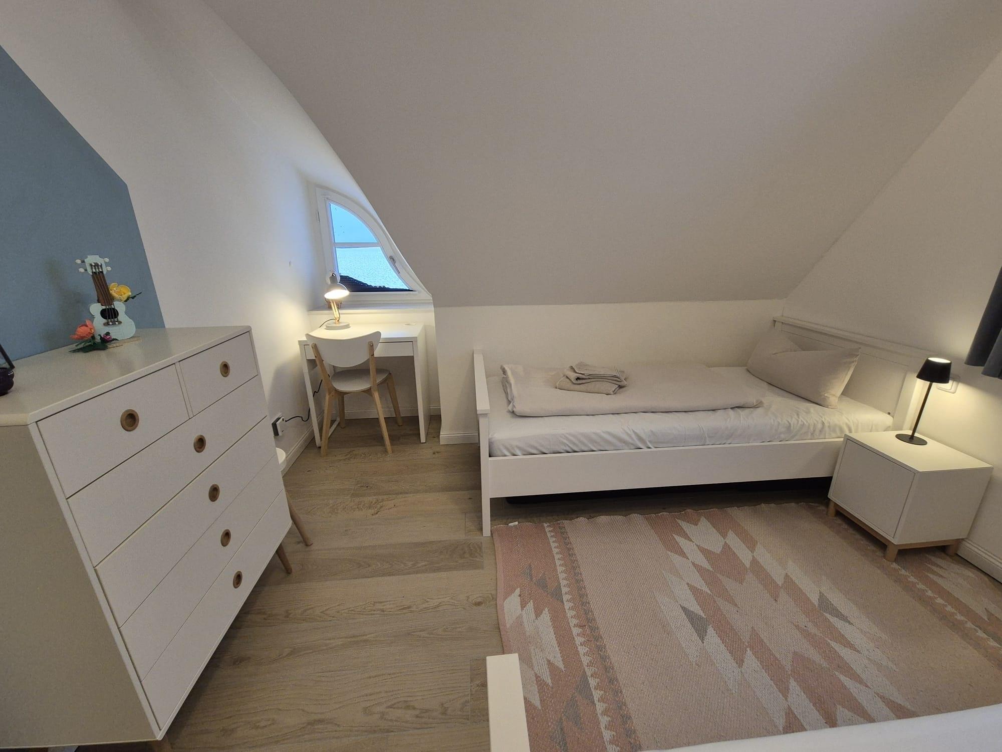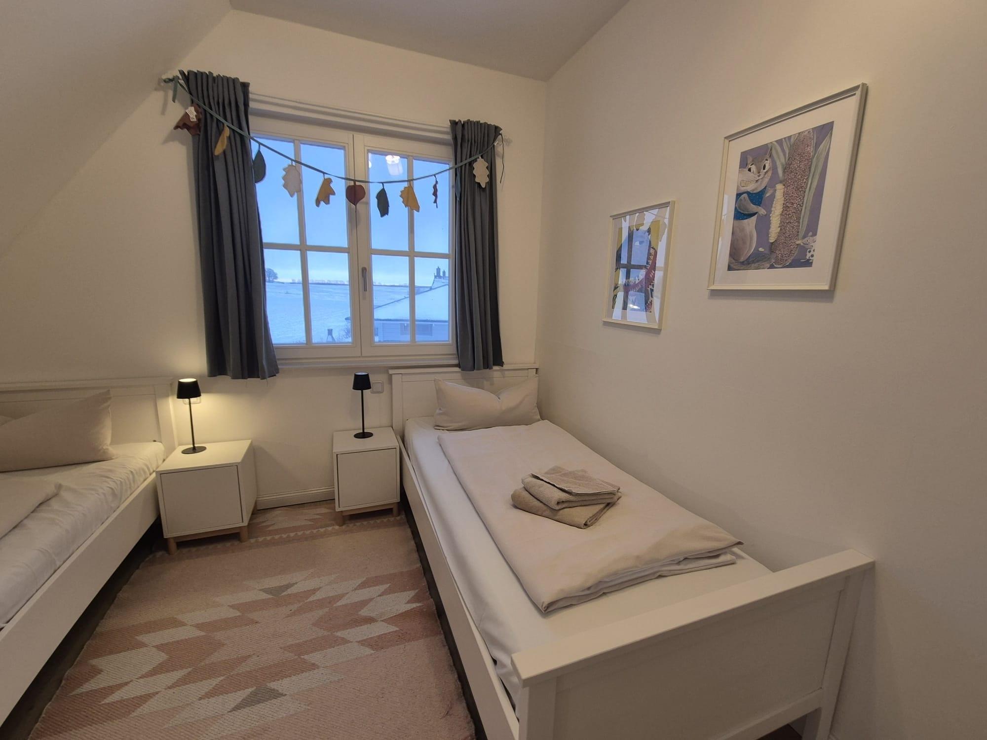 Das dritte Schlafzimmer mit zwei Einzelbetten, Schreibtisch und Seeblick ist perfekt auf kleine Gäste abgestimmt.