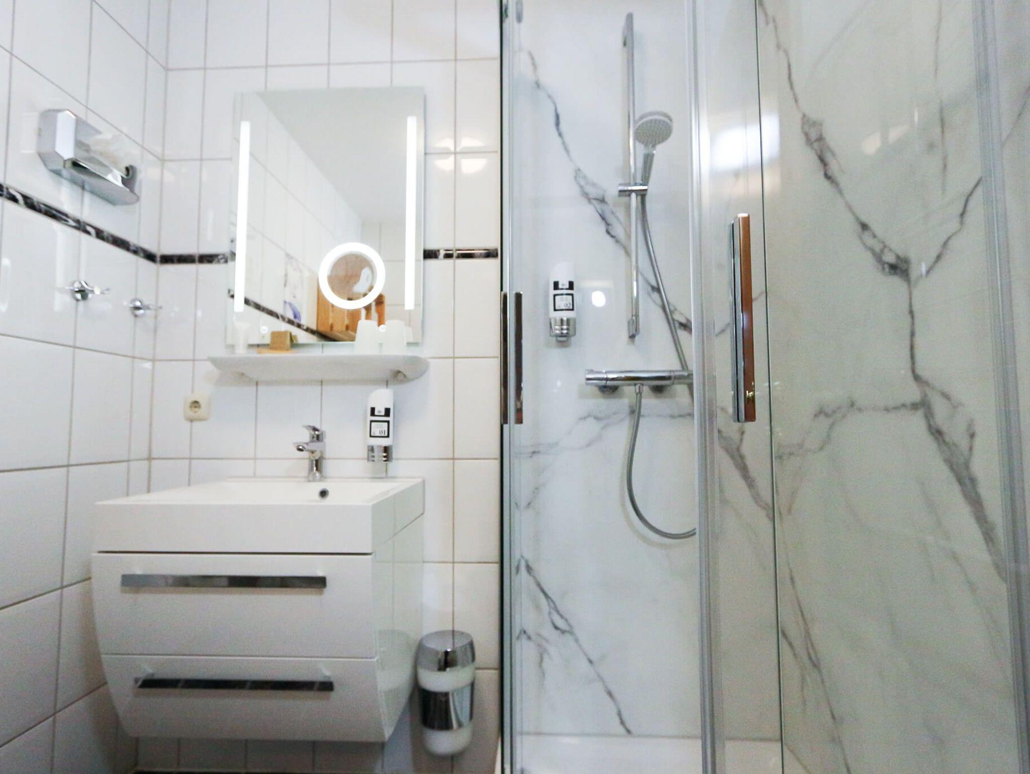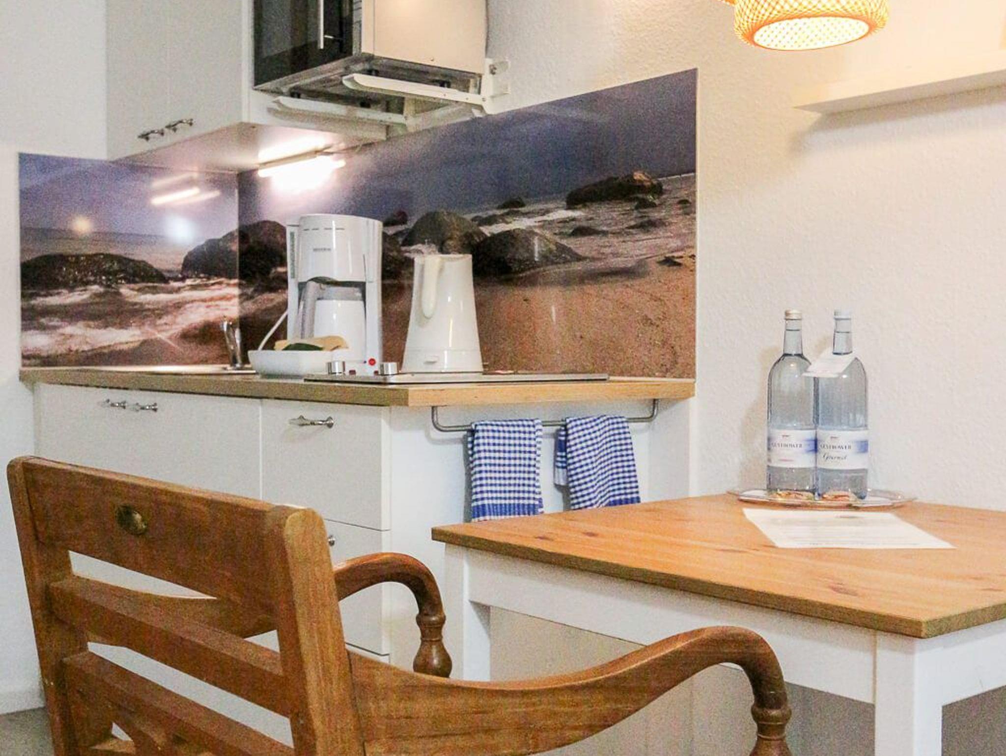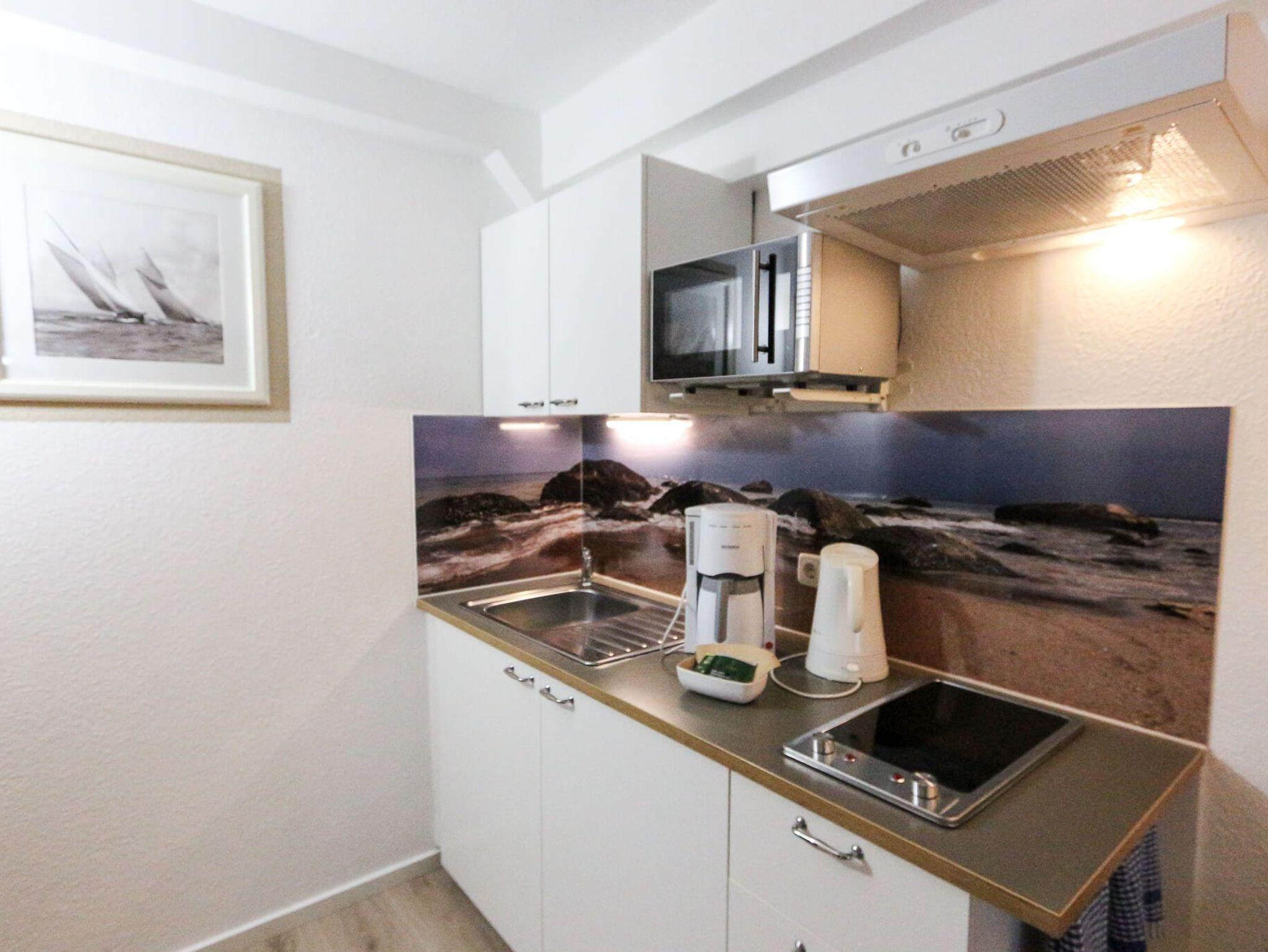 Das Apartment 3B Deck 9 bietet auf ca. 30 m² im Erdgeschoss von Haus 3 ein gemütliches Zuhause für bis zu zwei Personen und deren vierbeinige Begleiter. Durch die zentrale Lage im Haus, in dem sich auch die Rezeption befindet, sind Sie hier direkt am Puls der Anlage. Die Wohneinheit verfügt über ein separates Schlafzimmer und einen hellen Wohn-Essbereich mit Smart-TV und kostenfreiem WLAN. Die integrierte Küchenzeile ist mit Ceranfeld und einer Mikrowelle inklusive Ofenfunktion ausgestattet. Das Badezimmer wird durch kostenfreie Pflegeprodukte aufgewertet. Ein großer Pluspunkt ist die private West-Terrasse, auf der Sie die Abendsonne genießen können. Bettwäsche und Handtücher sind im Preis bereits enthalten.