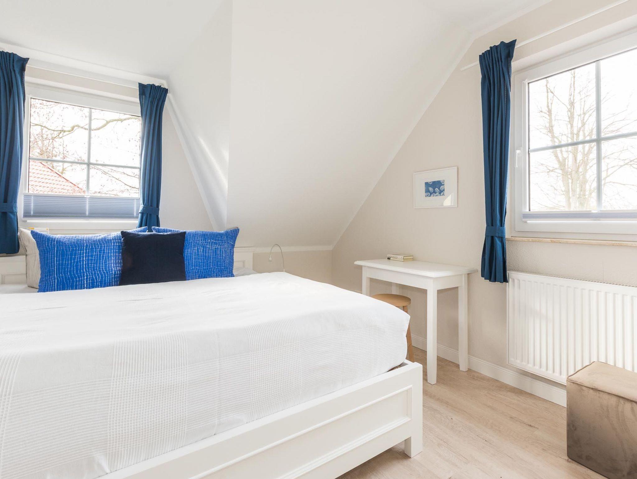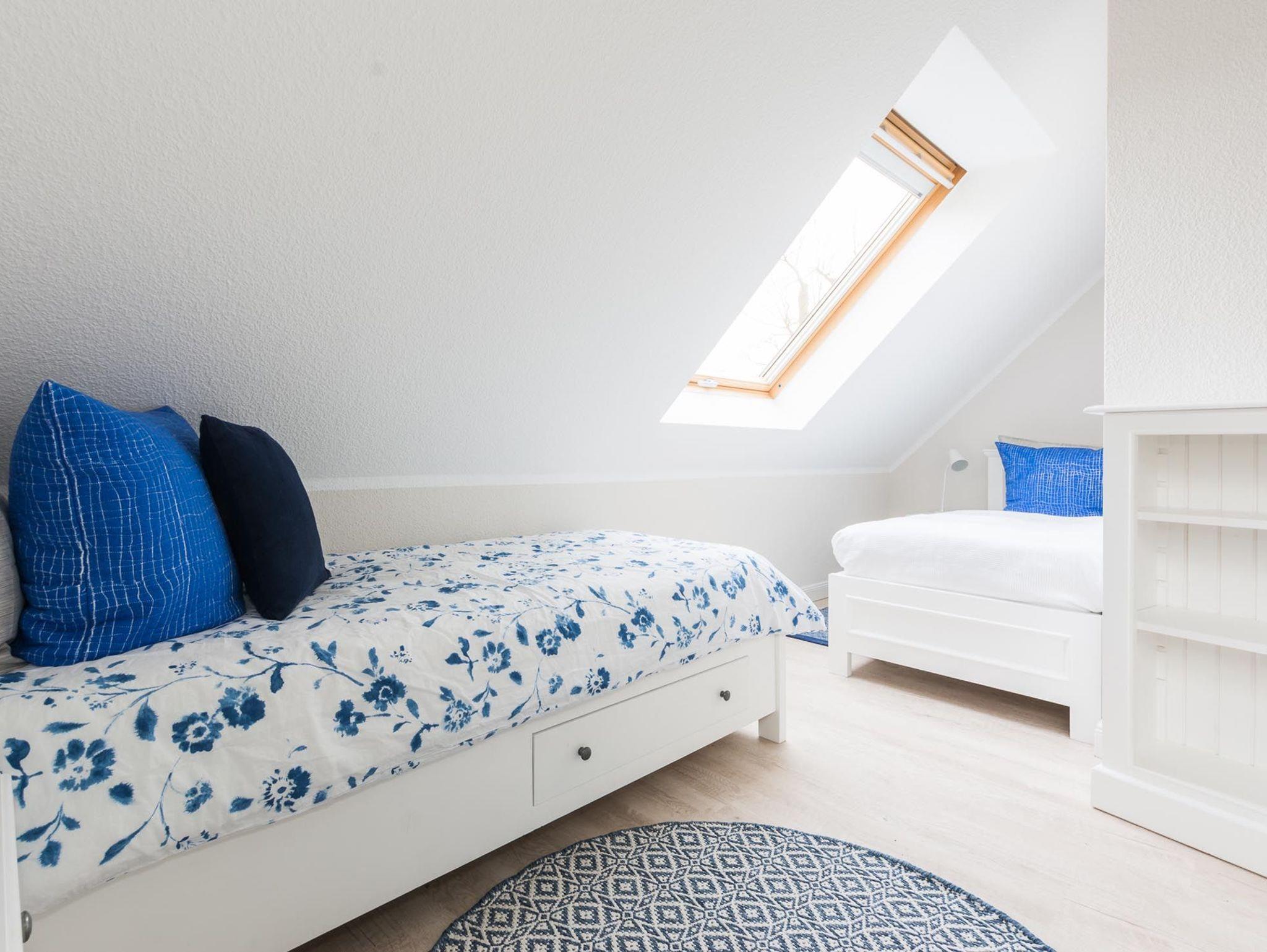 Die beiden Schlafzimmer befinden sich im Obergeschoss welches Sie durch eine Wendeltreppe erreichen. Eines der Schlafzimmer verfügt über ein großes bequemes Doppelbett.Das andere Schlafzimmer ist mit zwei komfortablen Einzelbetten ausgestattet, welche traumhaften erholsamen Schlaf garantieren.