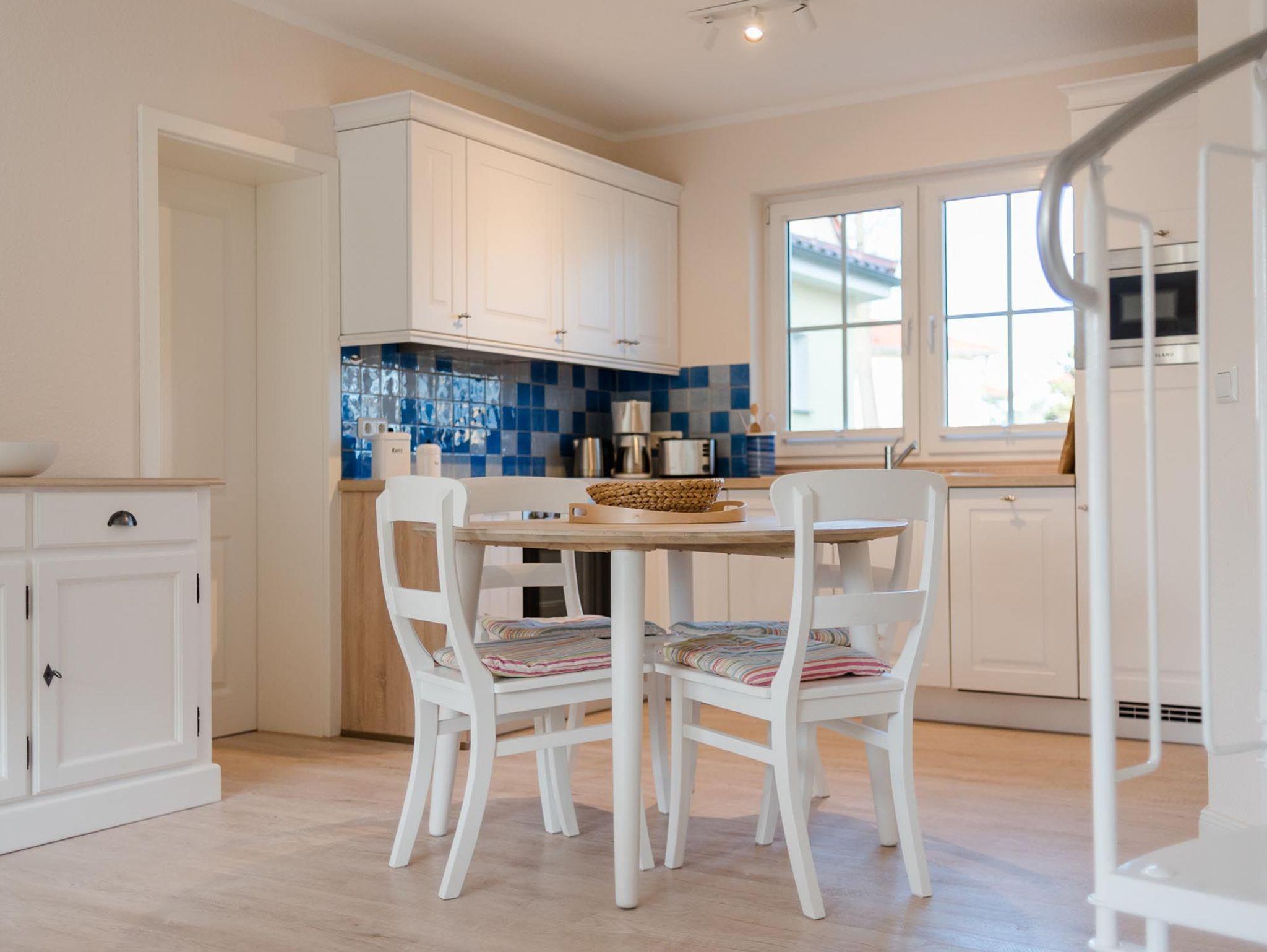 Im Erdgeschoss befindet sich ein komfortabler Wohnbereich mit offener Küche und gemütlichem Essbereich. Die Küche ist voll ausgestattet.