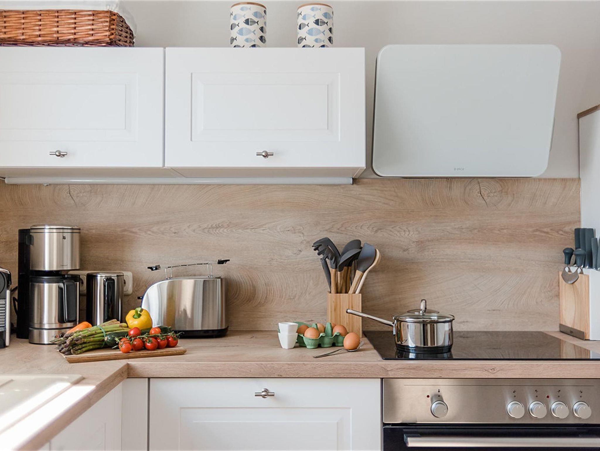 • Voll ausgestattete Küche: Kochen Sie nach Herzenslust und genießen Sie gemeinsame Mahlzeiten am großen Esstisch.