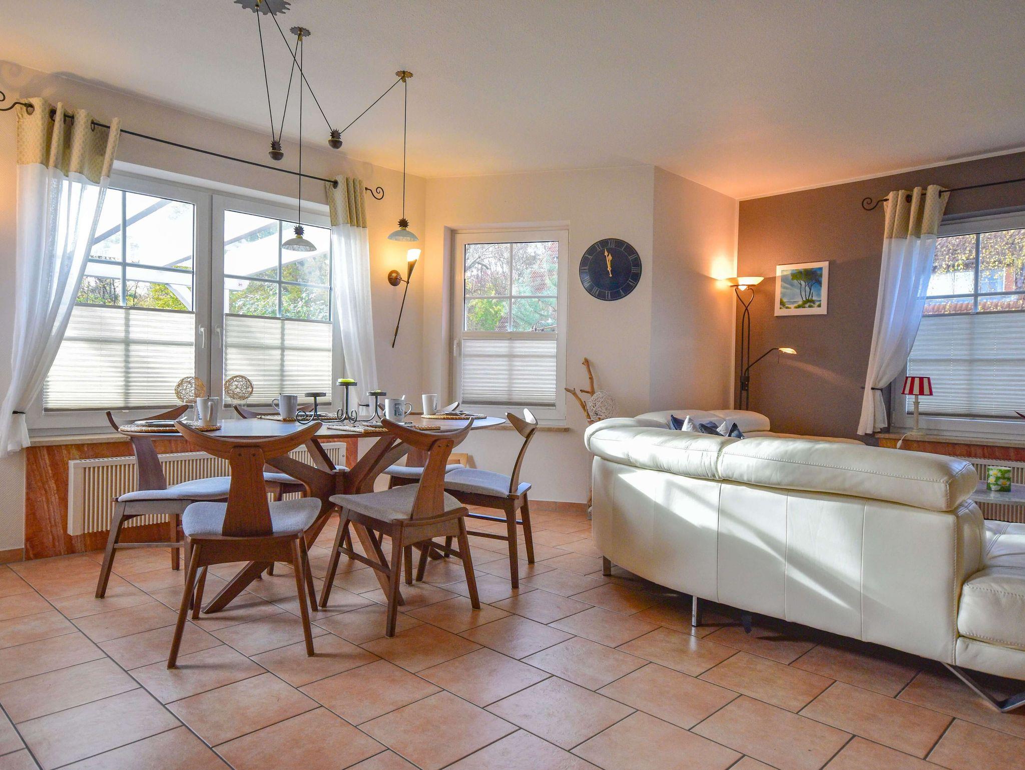 Willkommen im stilvoll renovierten Ferienhaus Kranich in Zingst ? ideal für Familien und Freunde! Das Haus bietet auf ca. 92?m² Platz für bis zu 6 Personen mit drei Schlafzimmern, zwei modernen Bädern, einer voll ausgestatteten Küche sowie einem gemütlichen Wohnbereich mit Kamin. WLAN, Smart-TV und Fußbodenheizung sind ebenso vorhanden wie eine überdachte Terrasse mit Gartenmöbeln. Zwei PKW-Stellplätze direkt am Haus stehen kostenfrei zur Verfügung.