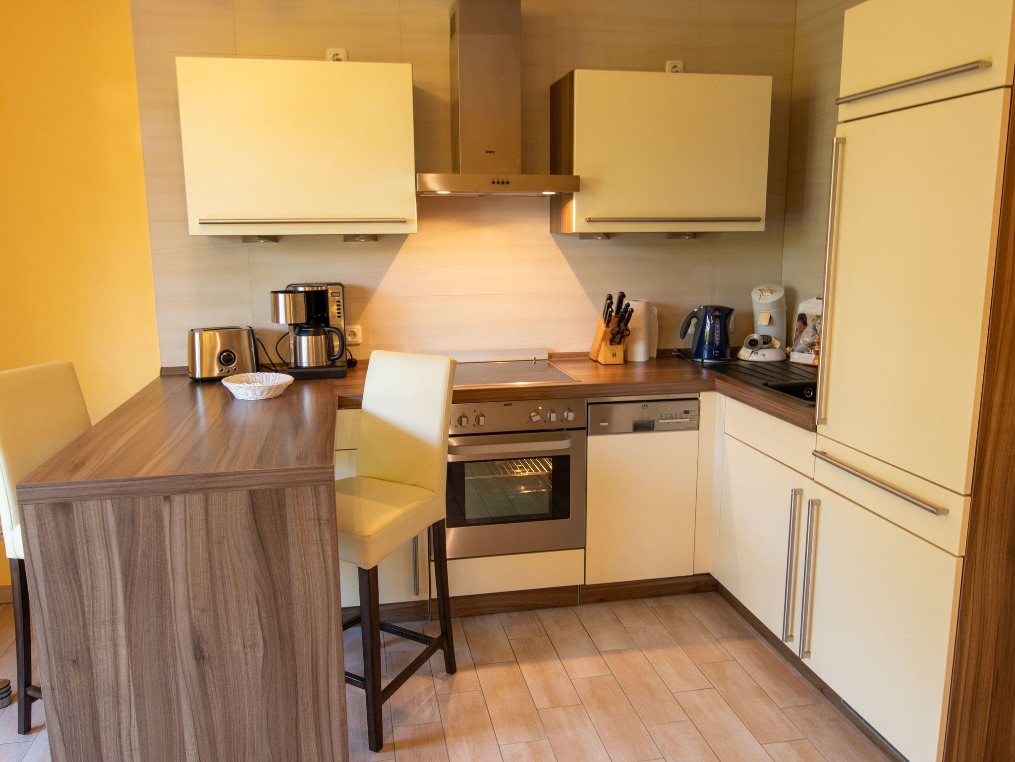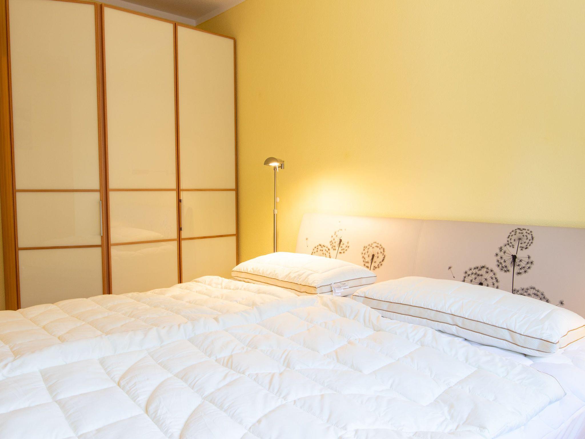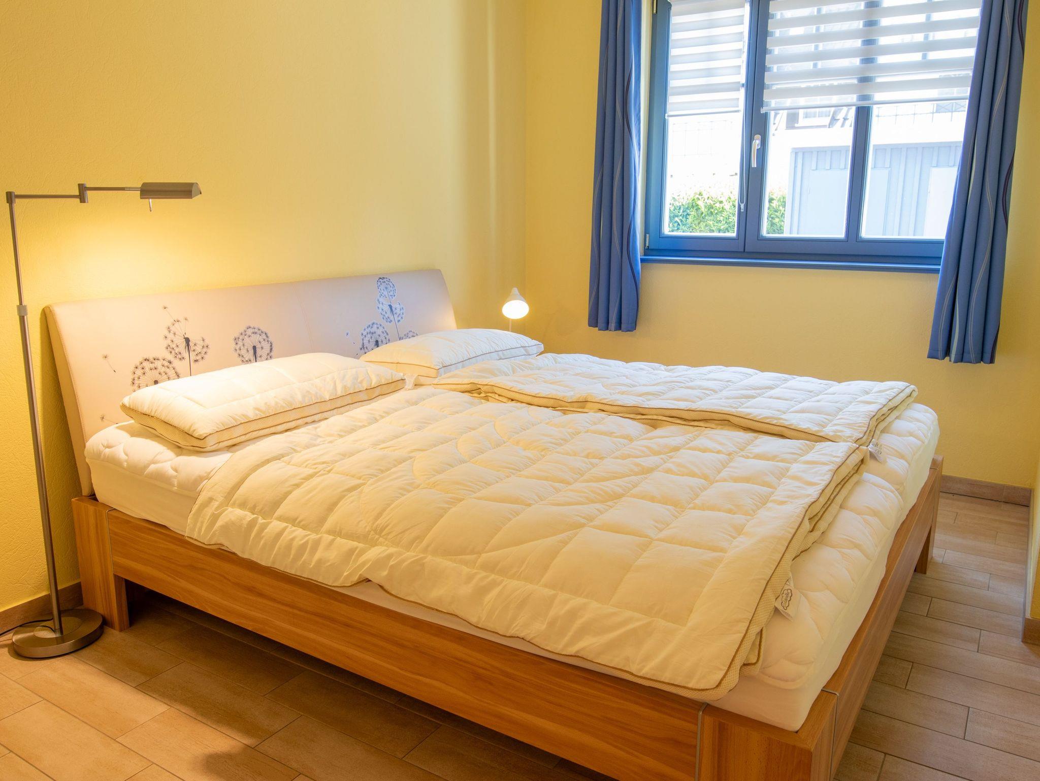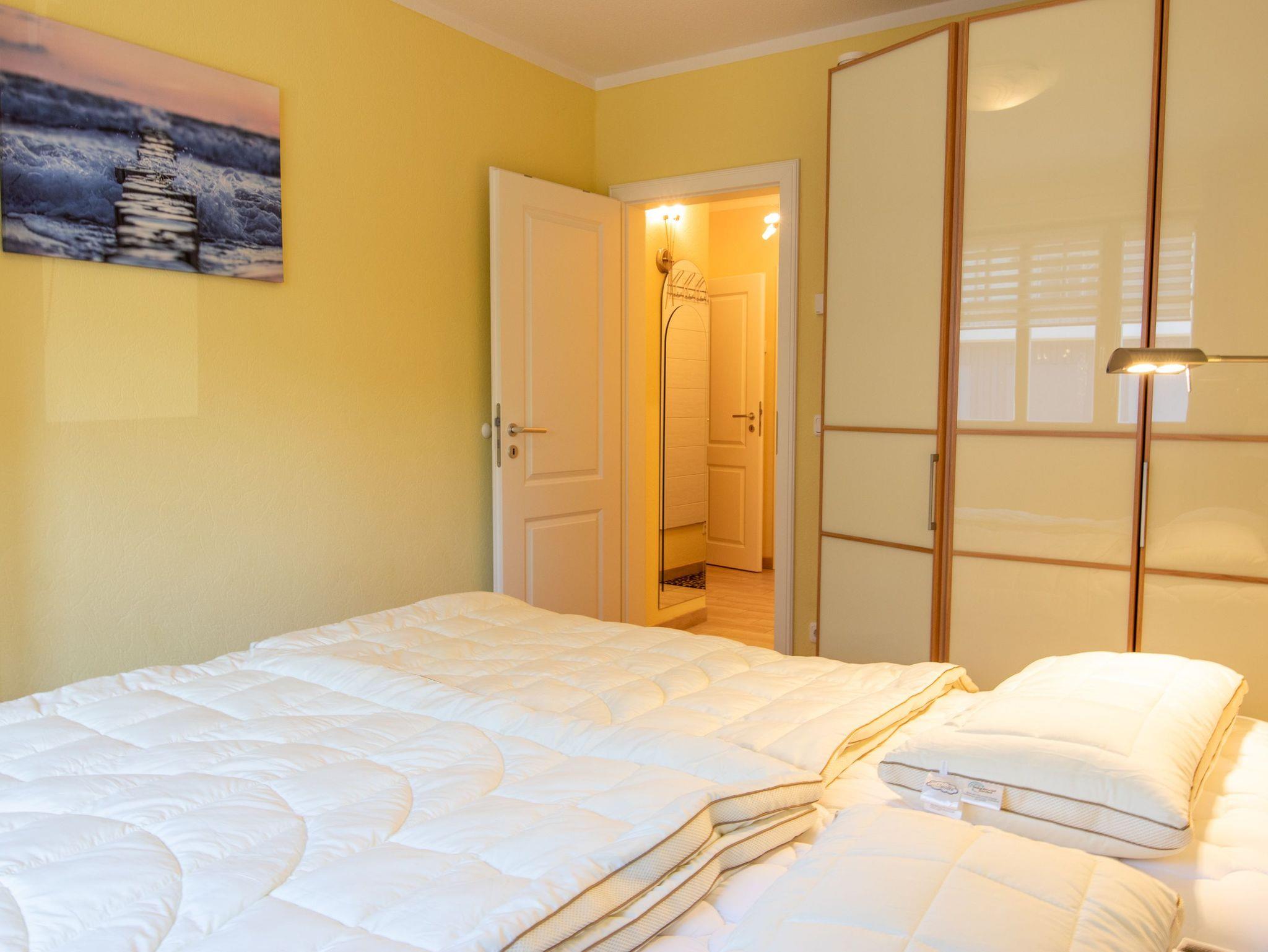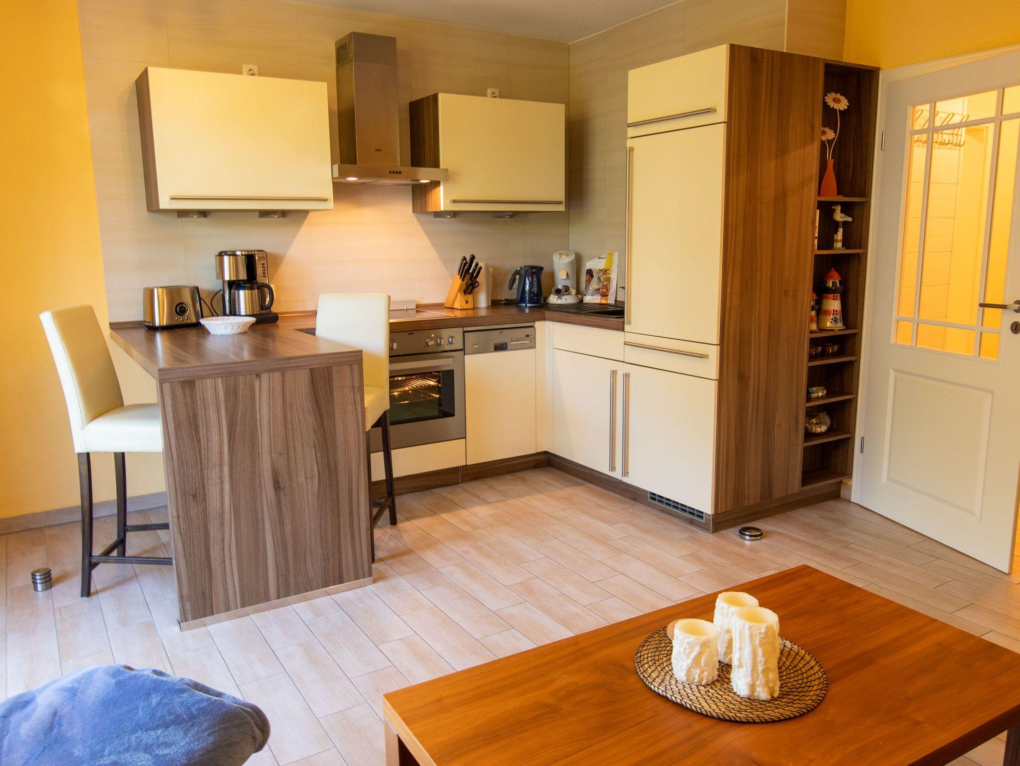 Die 50 m² große Ferienwohnung besteht aus einem modern eingerichteten Wohnzimmer mit Kamin, Sat-TV und integrierter, voll ausgestatteter Küche mit Sitzplätzen, einem separaten Schlafzimmer mit Doppelbett und einem hochwertigen Bad mit Dusche und WC. Die Fußbodenheizung und Insektenschutzgitter an den Fenstern runden das Angebot ab. Zur Ferienwohnung gehört ein PKW-Stellplatz direkt am Haus. Fahrräder und Strandutensilien können Sie separat in einem Abstellraum unterstellen.