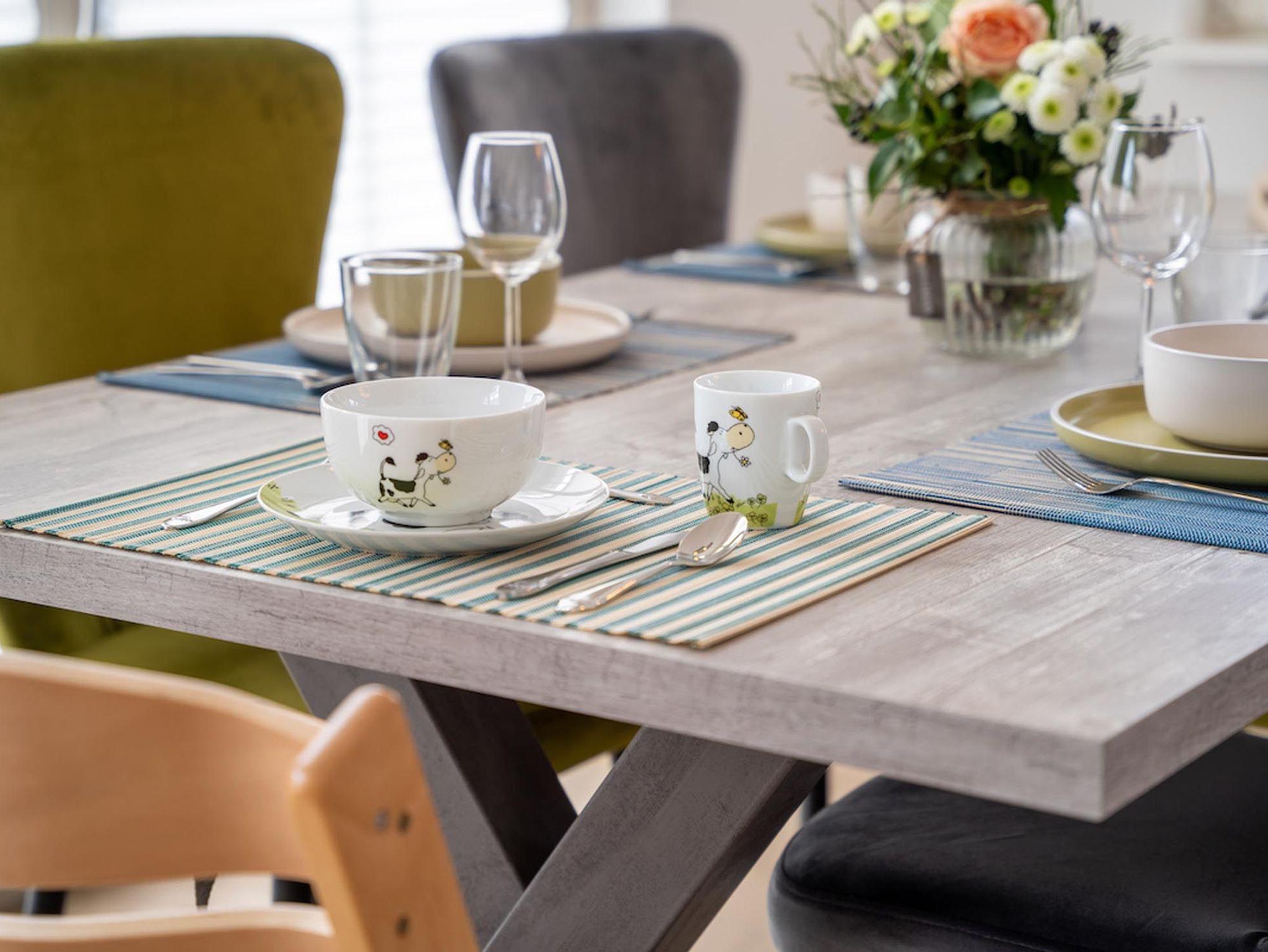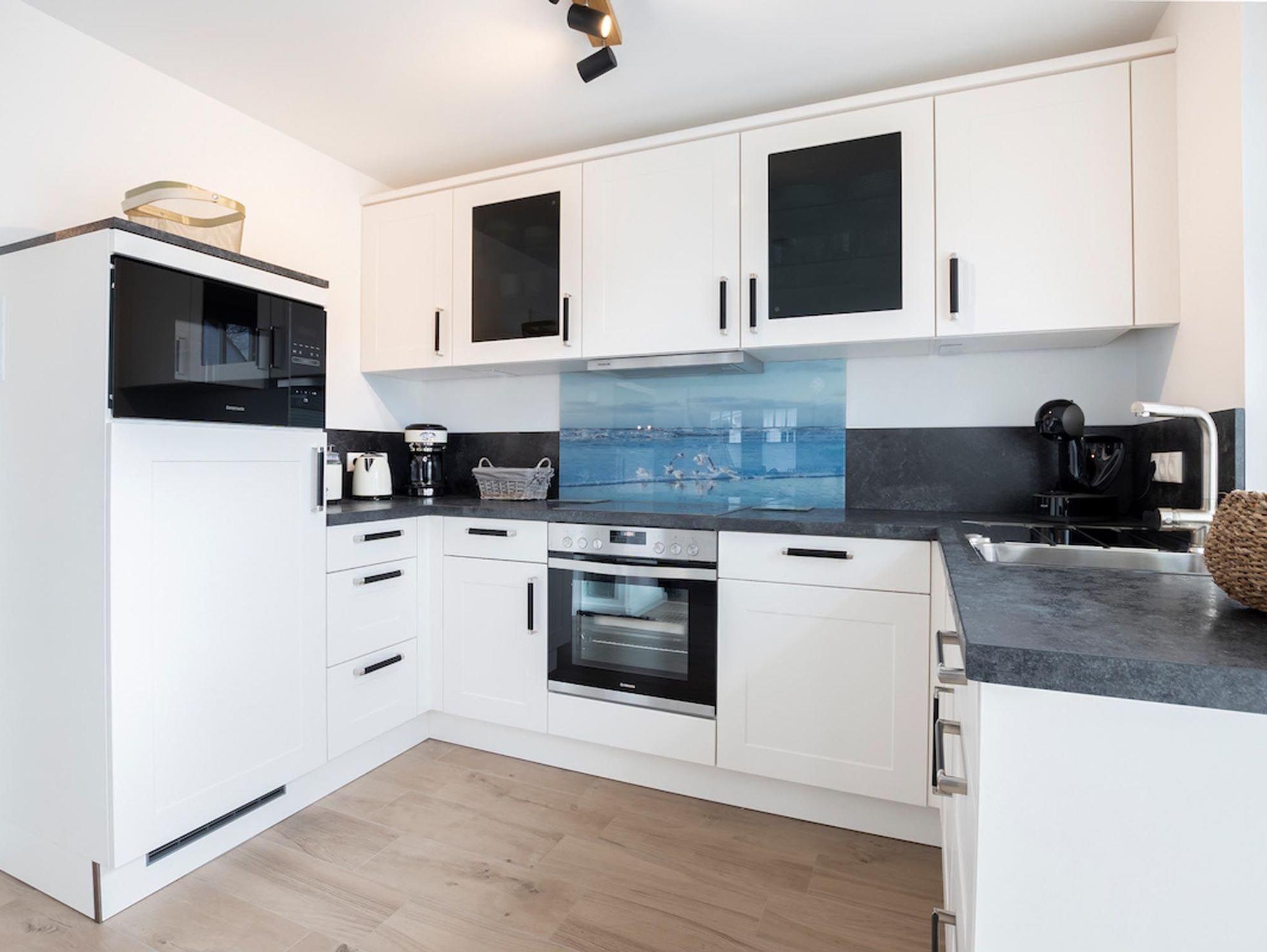 Betreten Sie den Flur des Hauses, von dem aus Sie zunächst das Gäste-WC mit bodengleicher Dusche und dann den großzügigen Küchen-, Ess- und Wohnbereich erreichen. Die Küche ist voll ausgestattet und lässt das Herz eines jeden Hobbykochs höherschlagen. Für die Familie bietet der große Esstisch oder die Sofalandschaft vor Flatscreen-TV und Kamin viel Platz zum Wohlfühlen. Auch von der südwestlich ausgerichteten Terrasse genießen Sie gemütliche Abende.