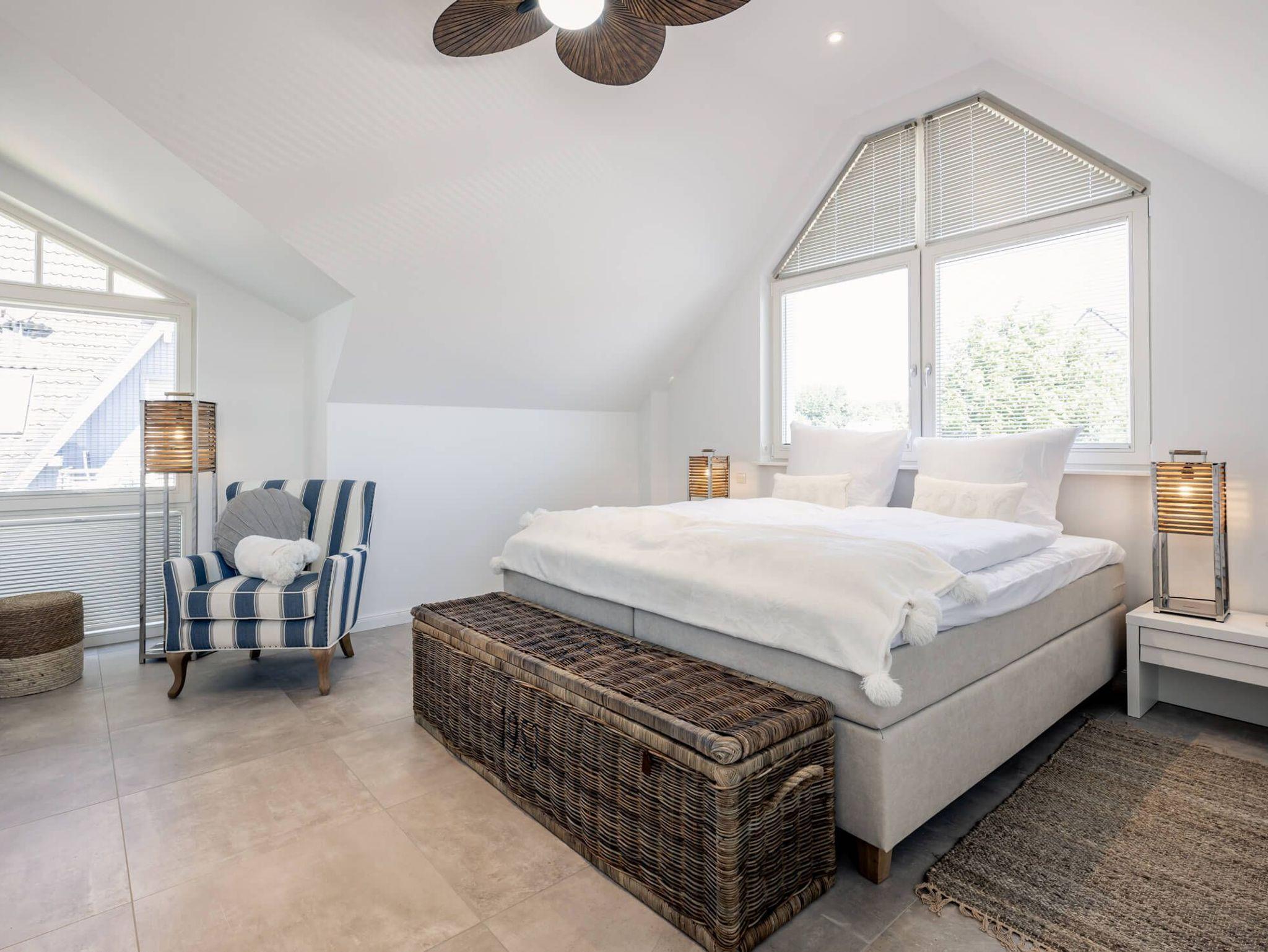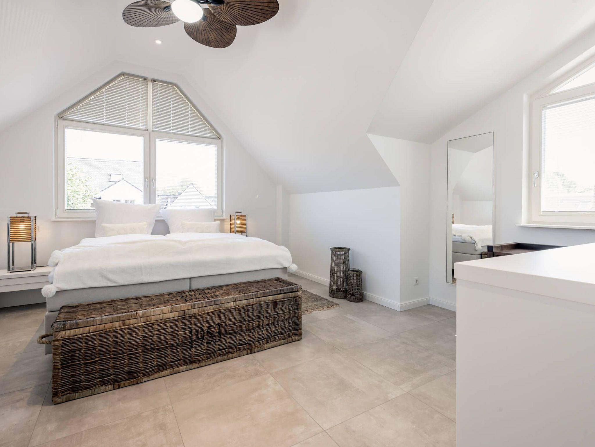 Im Obergeschoss finden Sie ein großzügiges Schlafzimmer zum Relaxen mit Doppel-Kingsize-Bett.