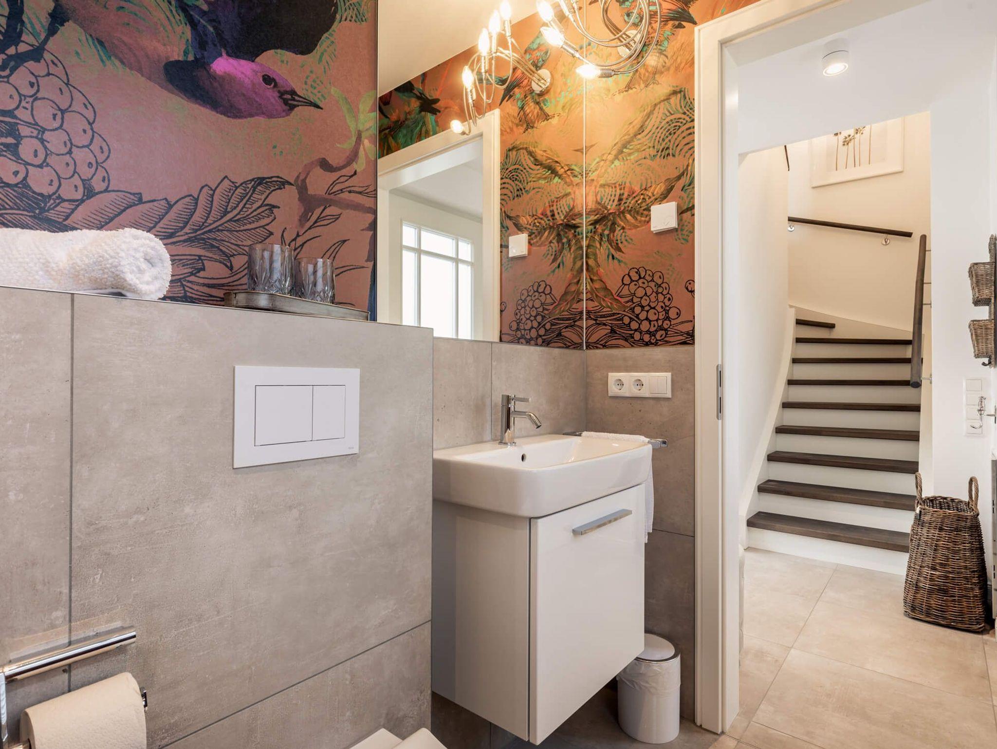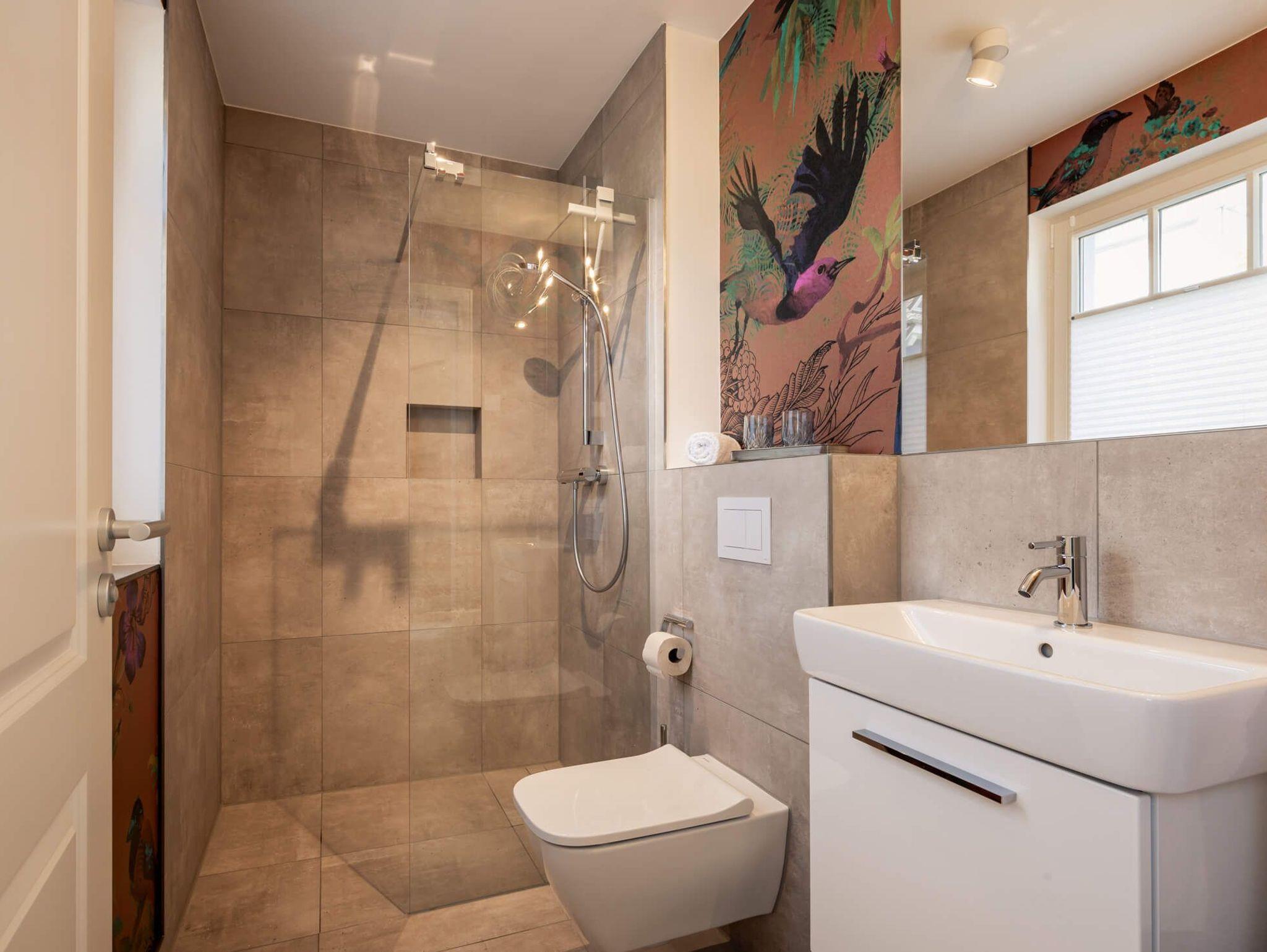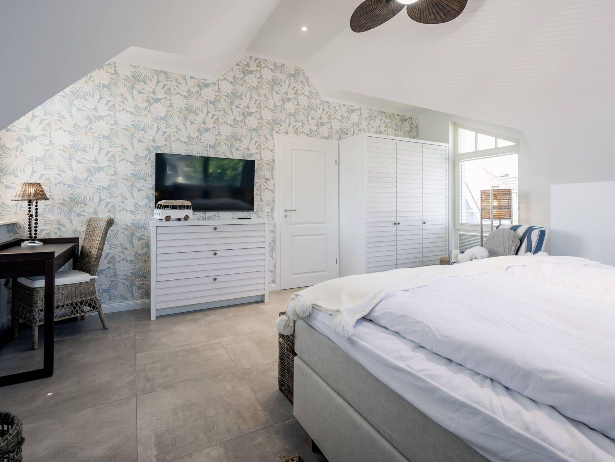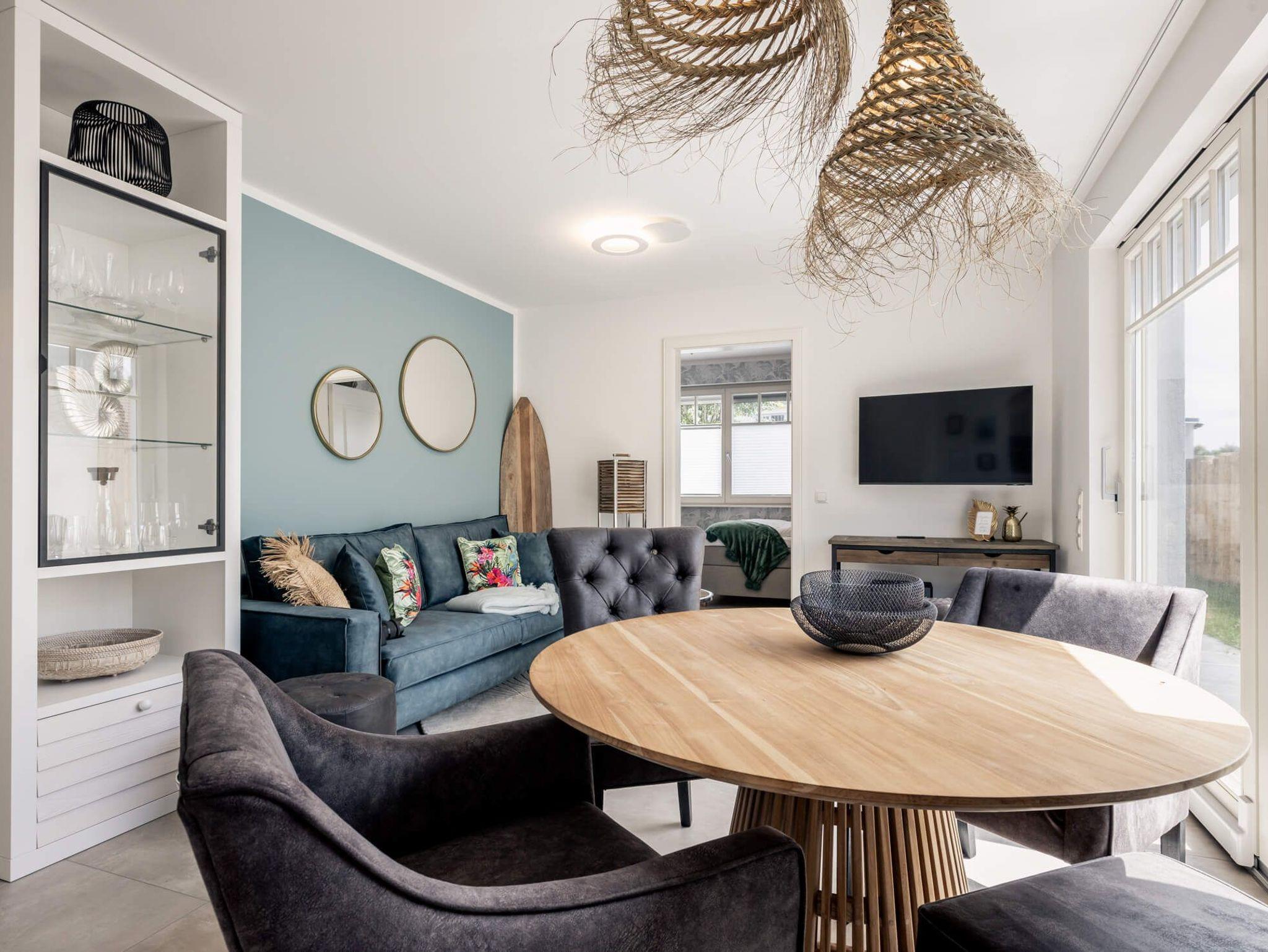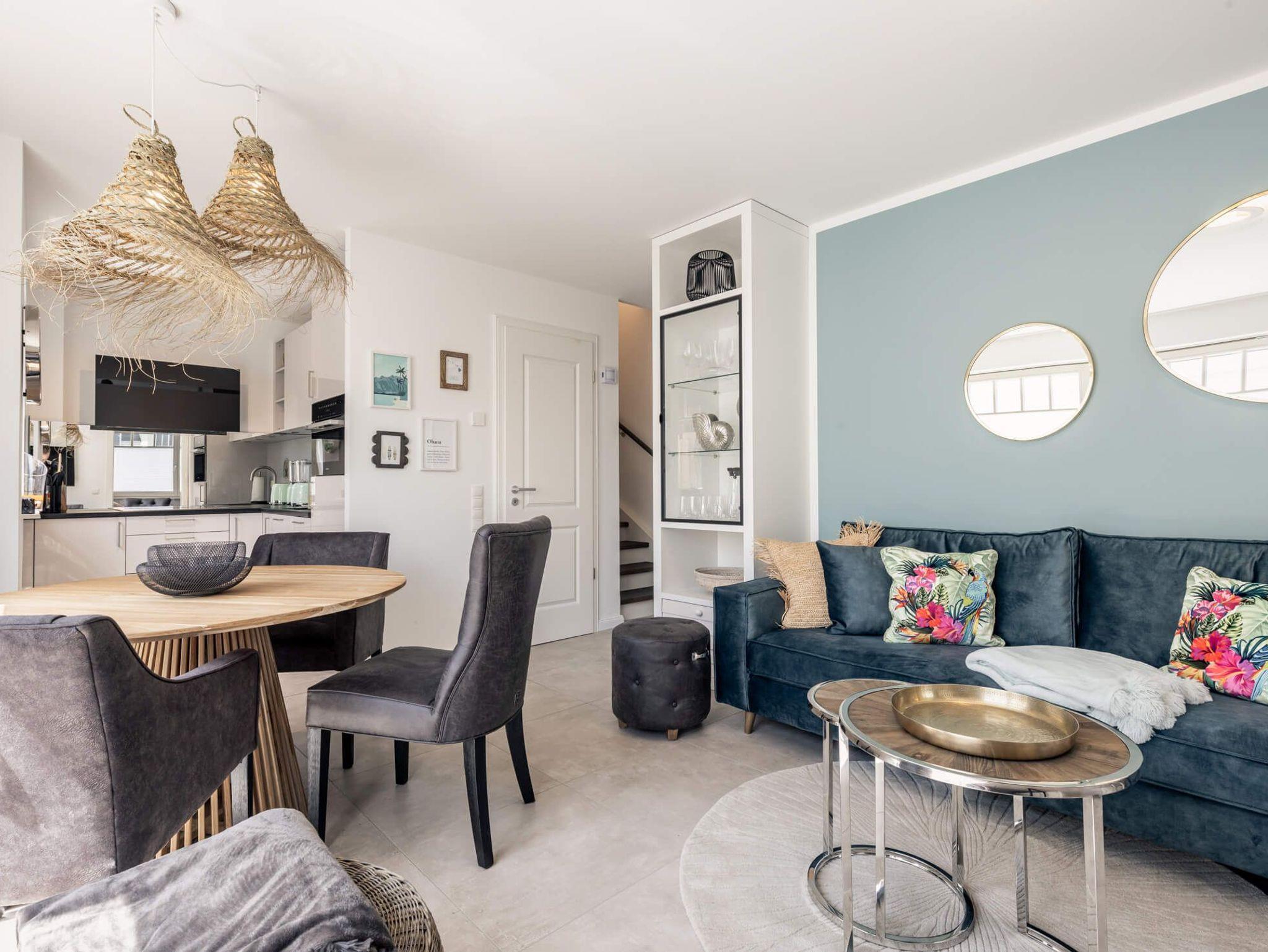Das Erdgeschoss erfreut mit offener, hochwertig ausgestatteter Küche und lichtdurchflutetem Essbereich. Der Wohnbereich ist gemütlich mit stilvollem Interieur ausgestattet. Ein Schlafzimmer mit zwei Einzelbetten und einem Bad mit ebenerdiger , offener Dusche bietet Ihnen zusätzlichen Komfort. Alle Schlafzimmer sind mit Boxspringbetten ausgestattet und verfügen über Schreibecke und Smart-TV´s.