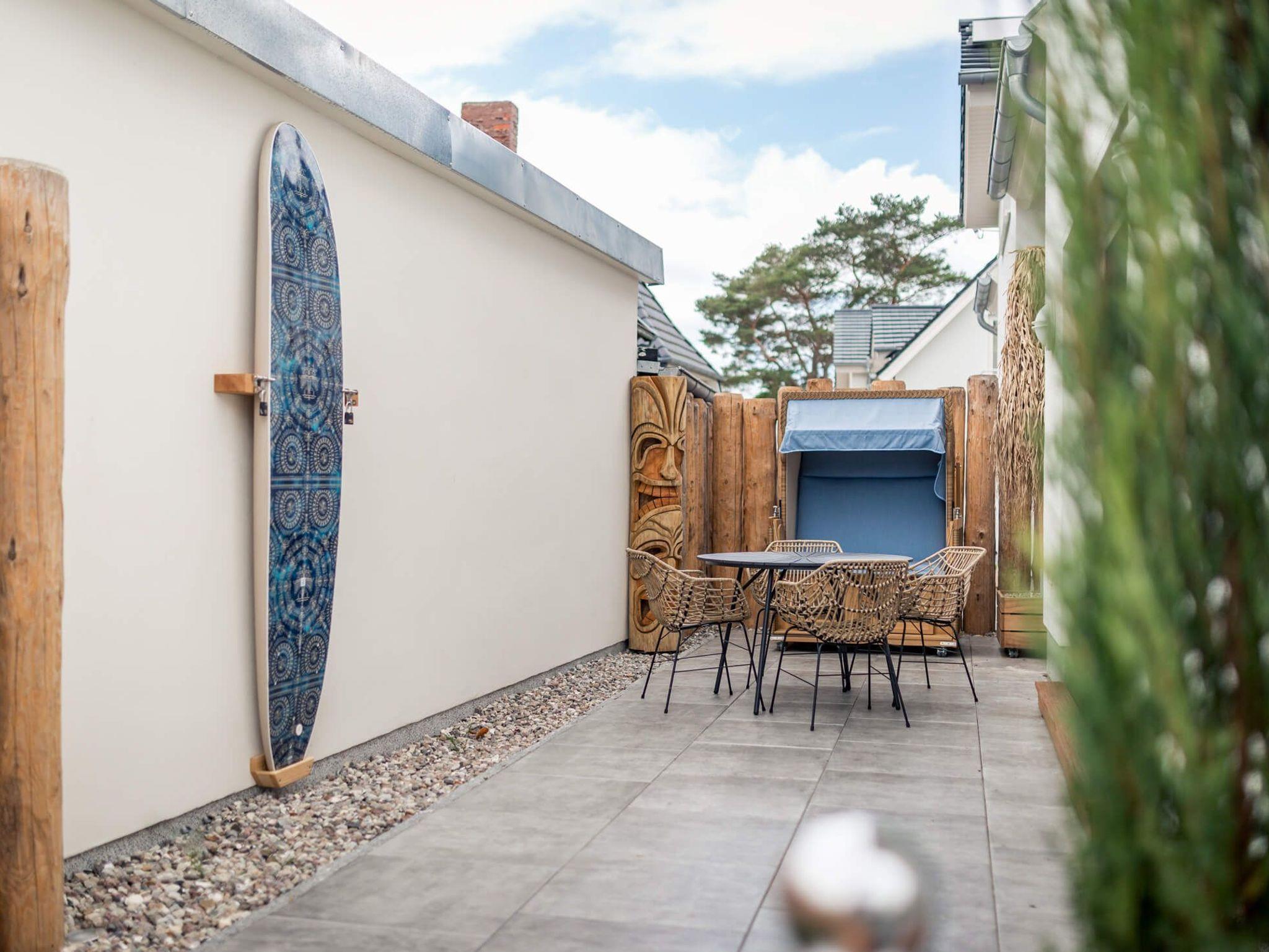 Im Außenbereich lädt die gemütliche Terrasse zum Verweilen ein.