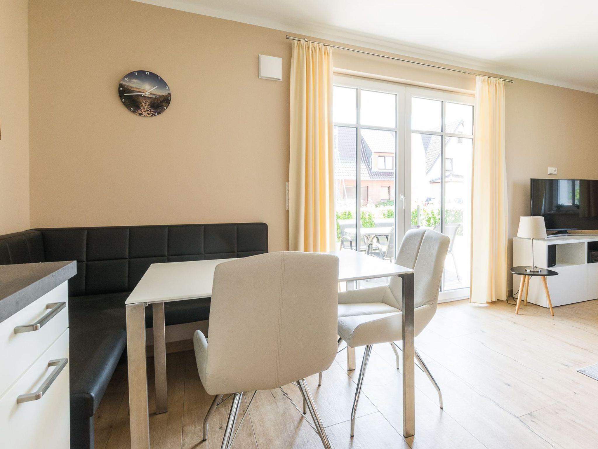 Das Appartement verfügt über einen lichtdurchfluteten Wohnbereich mit einer offenen Küche und gemütlichem Essbereich. Die Küche ist voll ausgestattet.