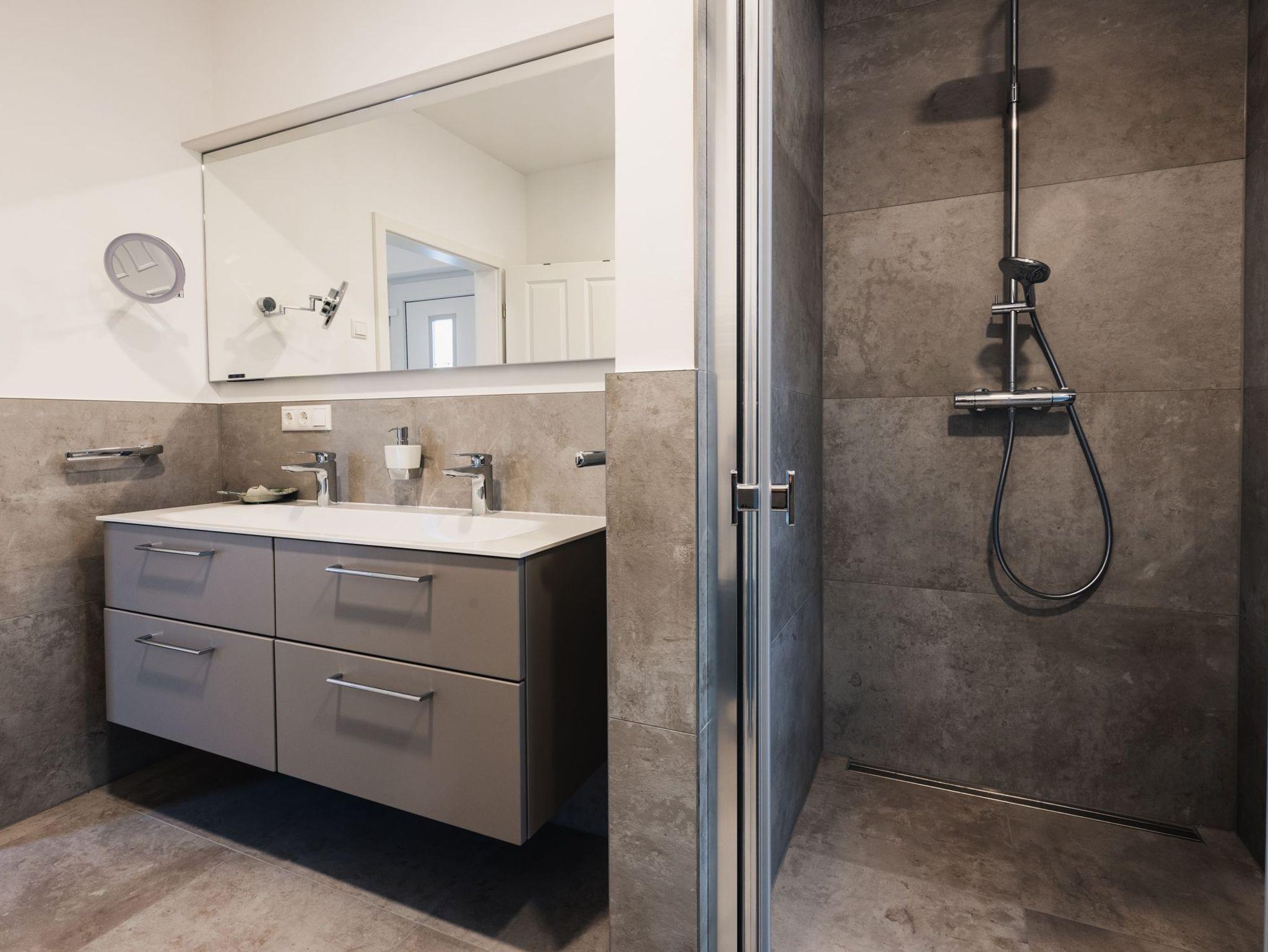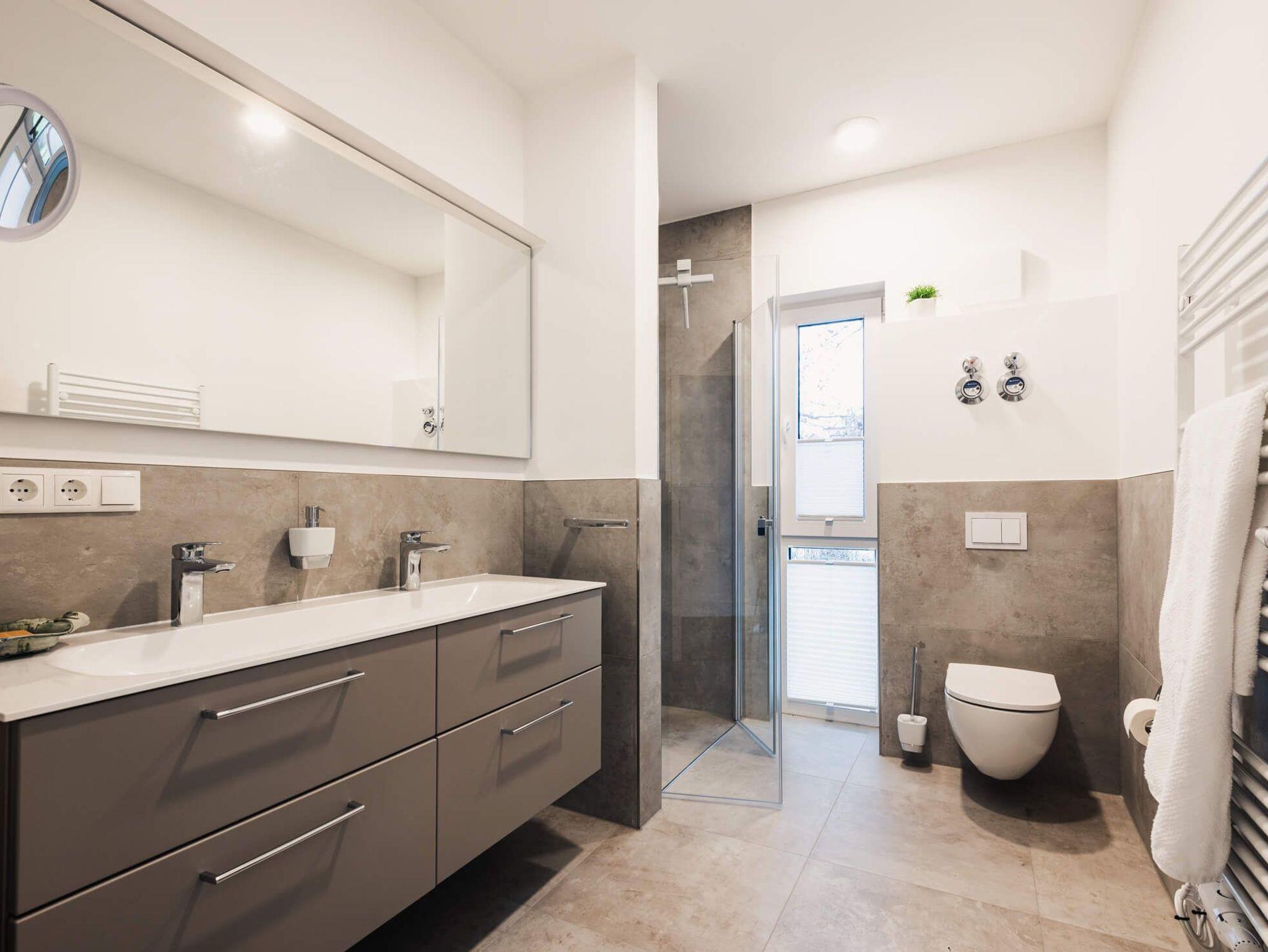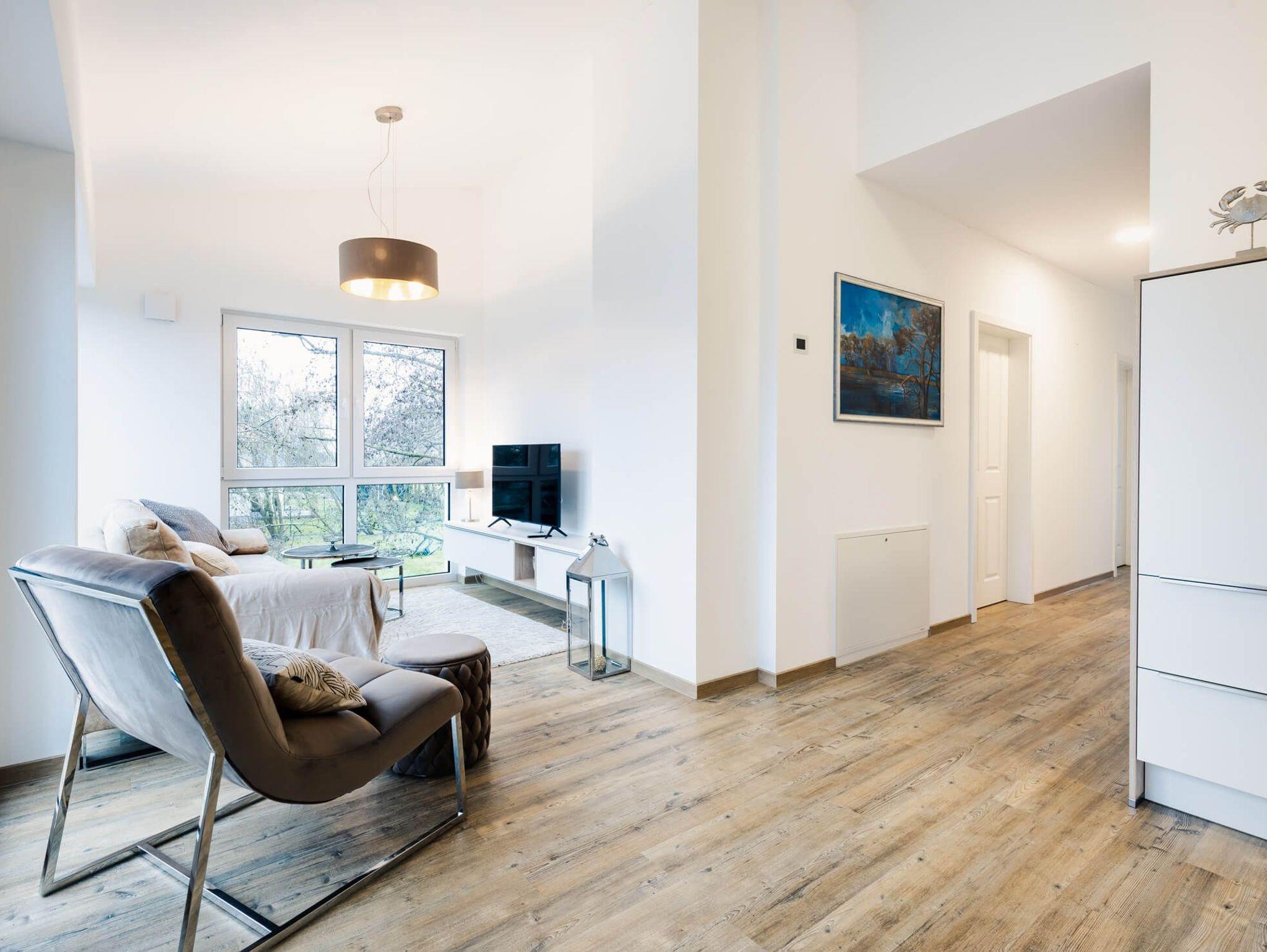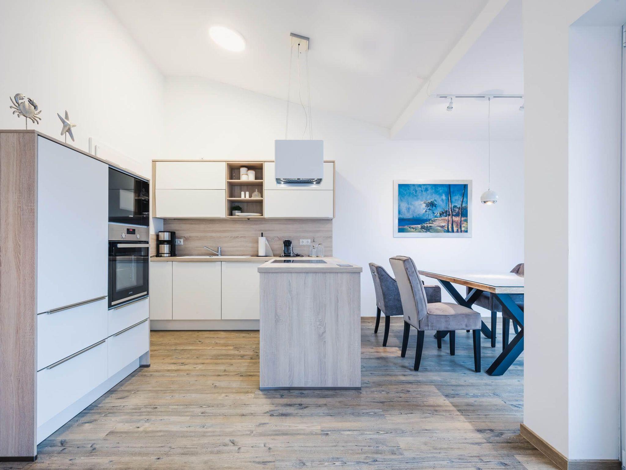 Die Ferienwohnung bietet zwei Schlafzimmer mit jeweils einem Boxspring-Doppelbett. Der geräumige Wohn- und Essbereich mit moderner und komplett ausgestatteter Küche ist offen gestaltet und lädt zu geselligen Stunden mit der Familie ein.