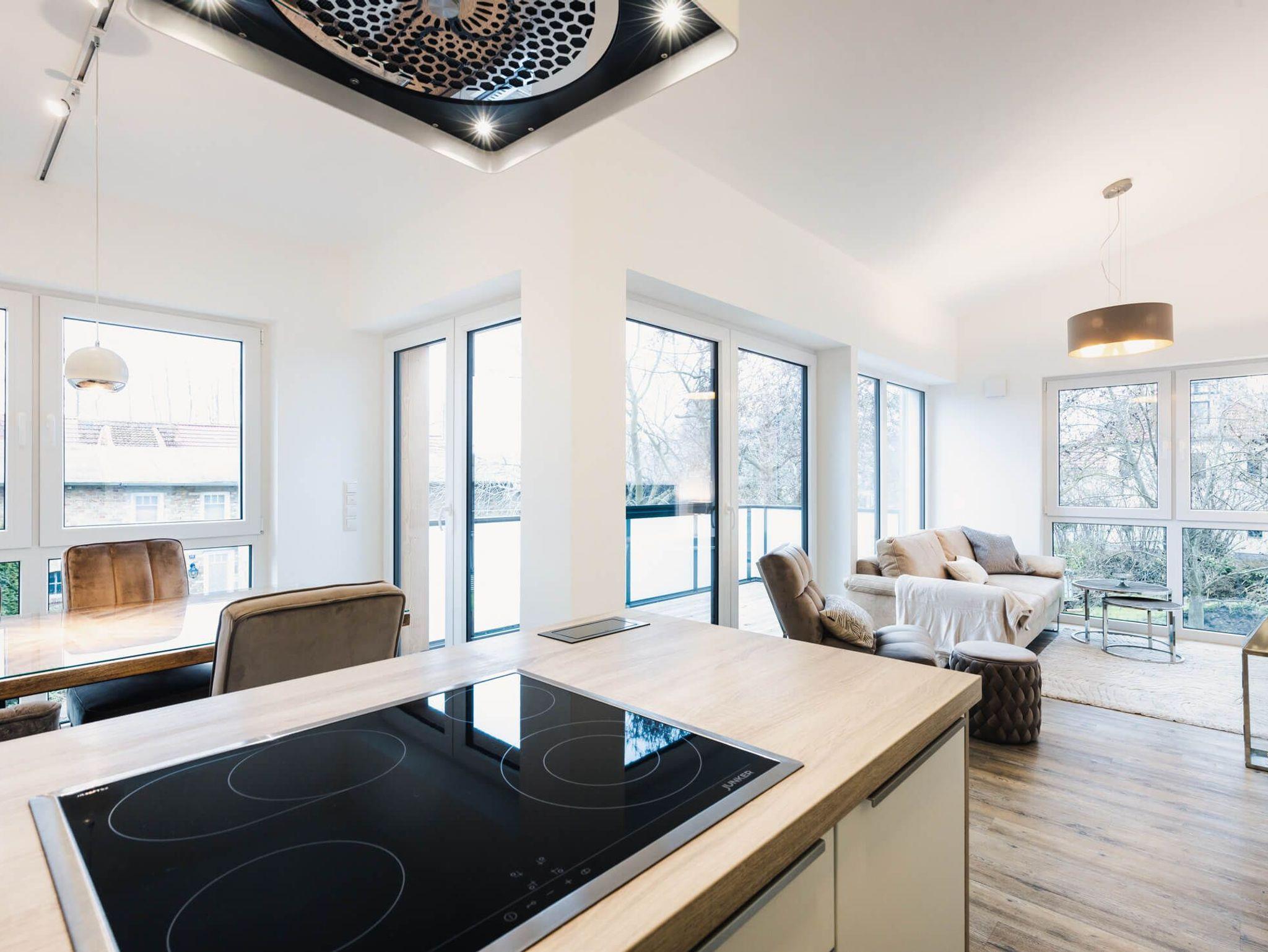 In der neuen und mit hochwertigen Geräten ausgestatteten Küche können Sie Ihre Lieblingsgerichte kochen und bei schönem Wetter direkt auf Ihrem großzügigen Balkon genießen.