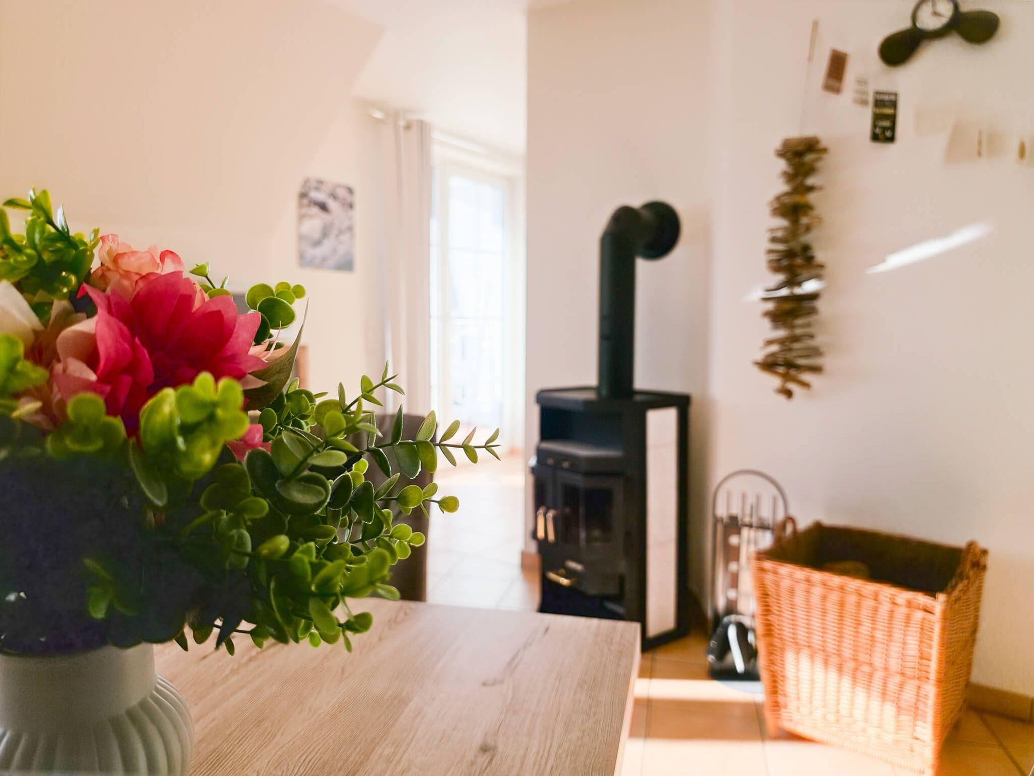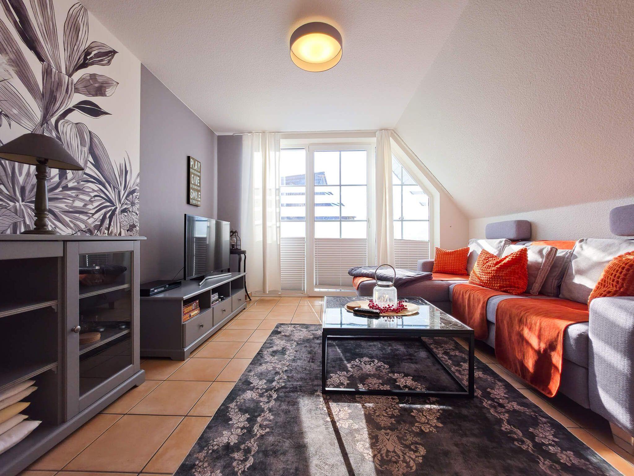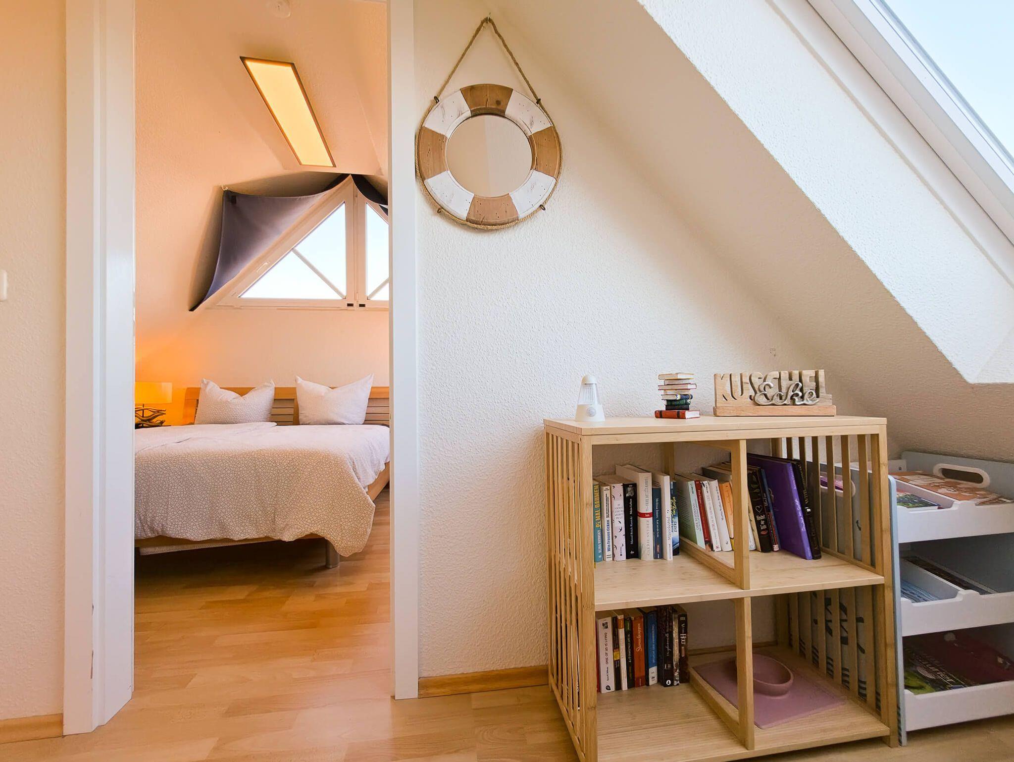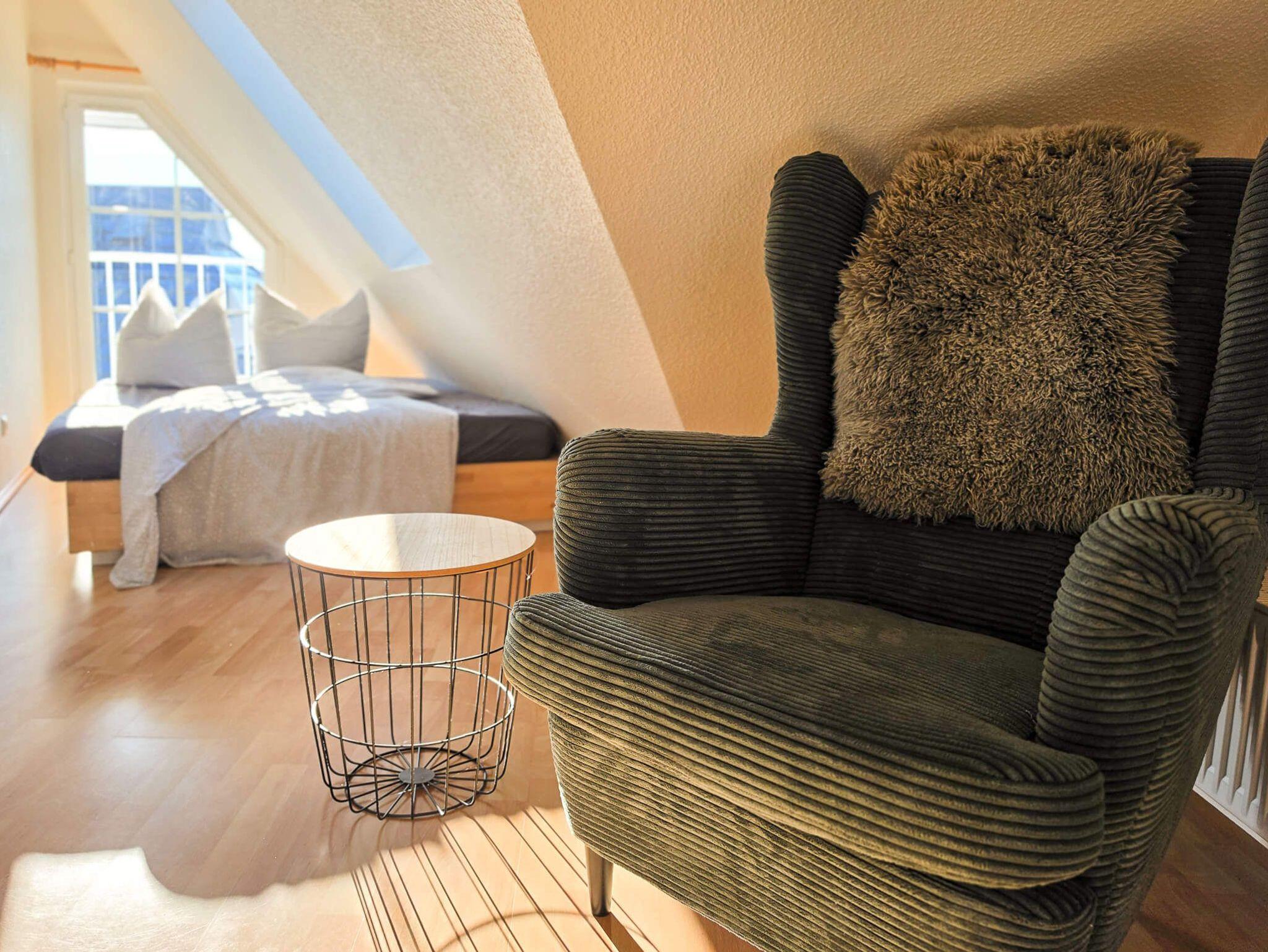 Die Ferienwohnung Sehnsuchtsort ist eine helle und großzügige Maisonette-Wohnung im Ober- und Dachgeschoss eines gepflegten Hauses im Gartenweg. Auf ca. 75 m² Wohnfläche bietet sie mit drei separaten Schlafzimmern (zwei im OG, eines im DG) ausreichend Platz für bis zu 6 Personen. Das Herzstück ist der lichtdurchflutete Wohn-Essbereich mit einem behaglichen Kamin und Zugang zum großen Südbalkon. Die moderne Küchenzeile ist voll ausgestattet (Backofen, Geschirrspüler, Mikrowelle). Ein helles Duschbad sowie ein zusätzliches Gäste-WC sorgen für Komfort bei voller Belegung. Die Wohnung ist im 1. OG mit Fußbodenheizung ausgestattet und hundefreundlich gestaltet. WLAN und Smart-TV sind vorhanden.