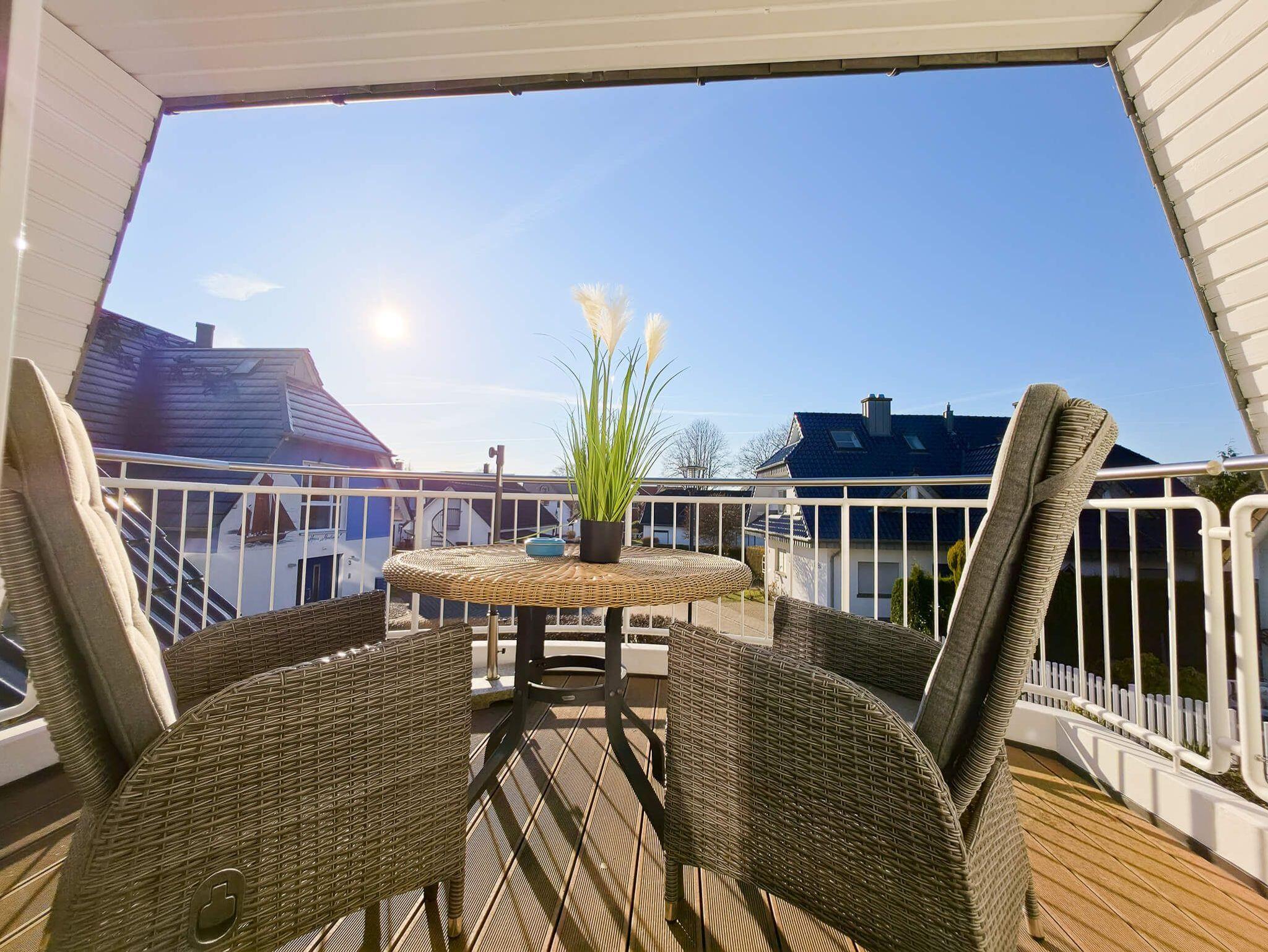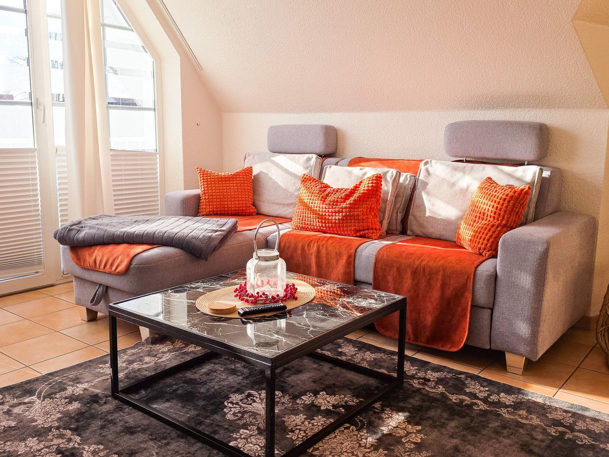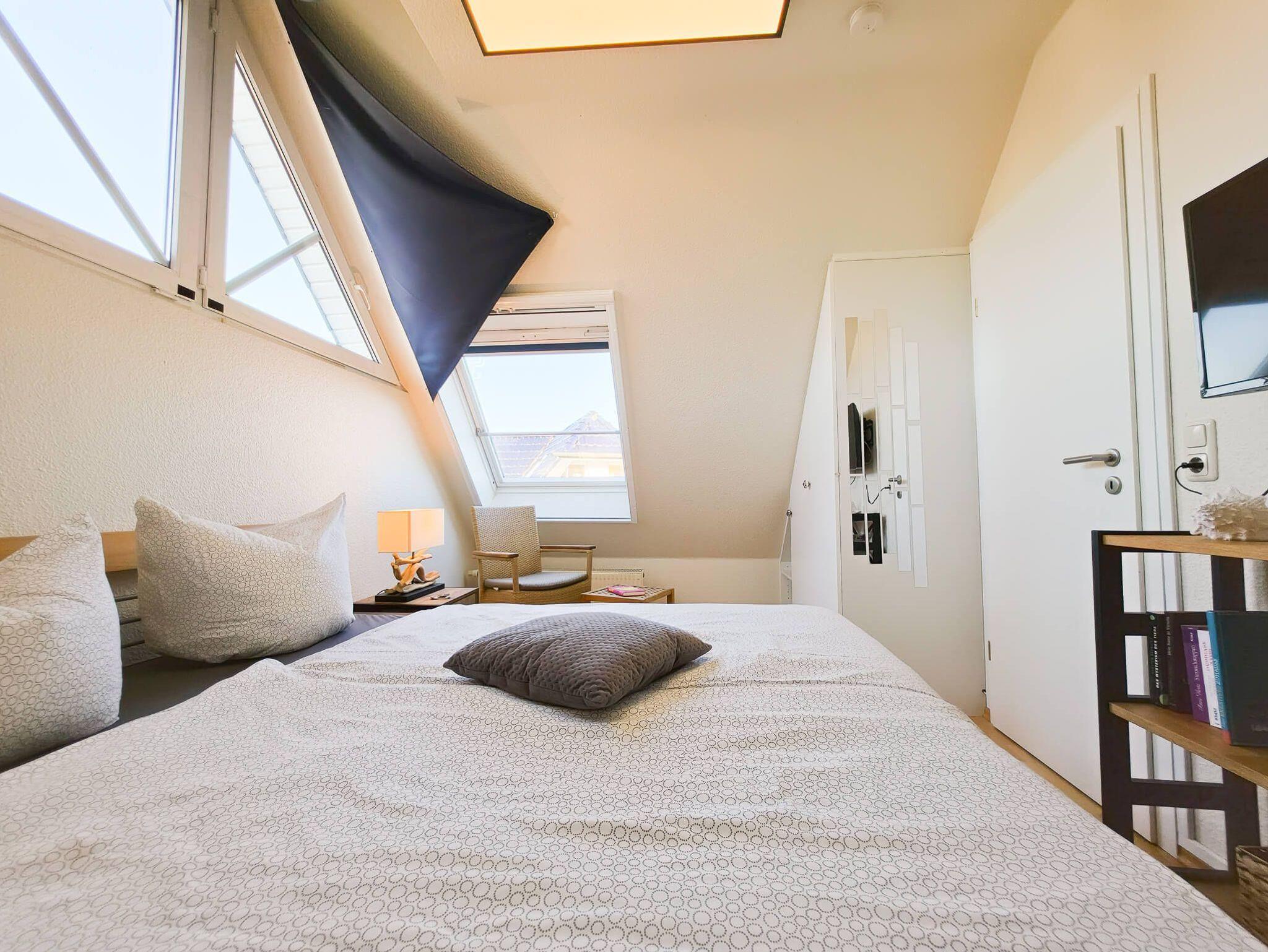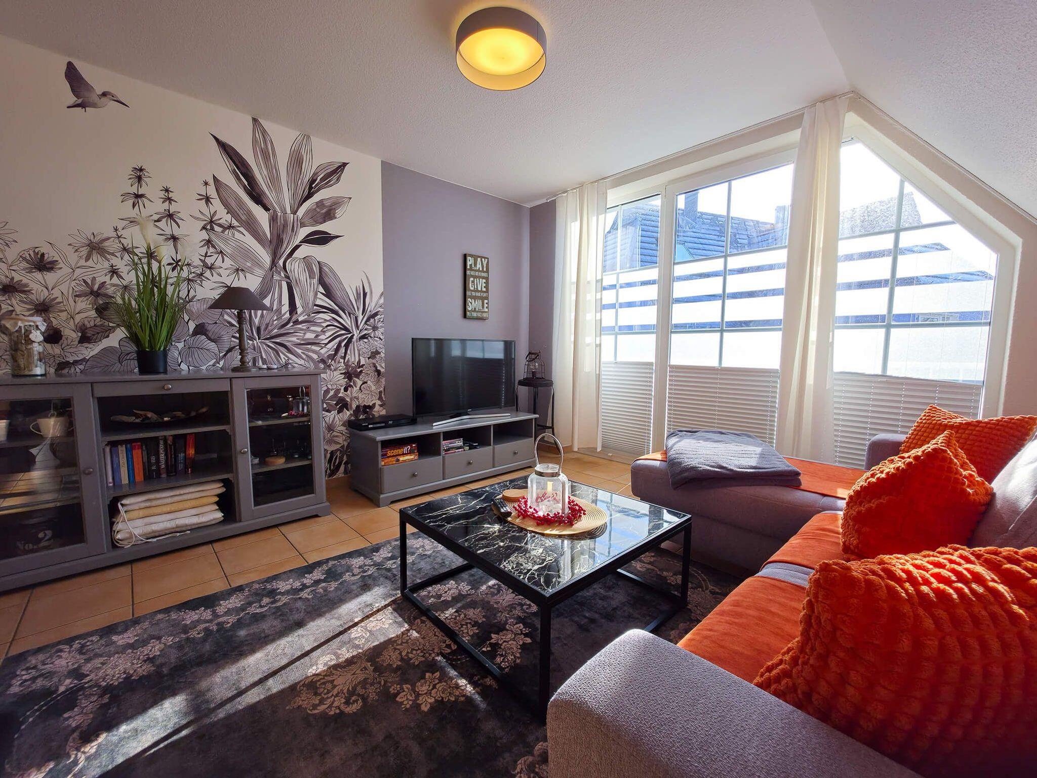 Die Ferienwohnung Sehnsuchtsort ist eine helle und großzügige Maisonette-Wohnung im Ober- und Dachgeschoss eines gepflegten Hauses im Gartenweg. Auf ca. 75 m² Wohnfläche bietet sie mit drei separaten Schlafzimmern (zwei im OG, eines im DG) ausreichend Platz für bis zu 6 Personen. Das Herzstück ist der lichtdurchflutete Wohn-Essbereich mit einem behaglichen Kamin und Zugang zum großen Südbalkon. Die moderne Küchenzeile ist voll ausgestattet (Backofen, Geschirrspüler, Mikrowelle). Ein helles Duschbad sowie ein zusätzliches Gäste-WC sorgen für Komfort bei voller Belegung. Die Wohnung ist im 1. OG mit Fußbodenheizung ausgestattet und hundefreundlich gestaltet. WLAN und Smart-TV sind vorhanden.