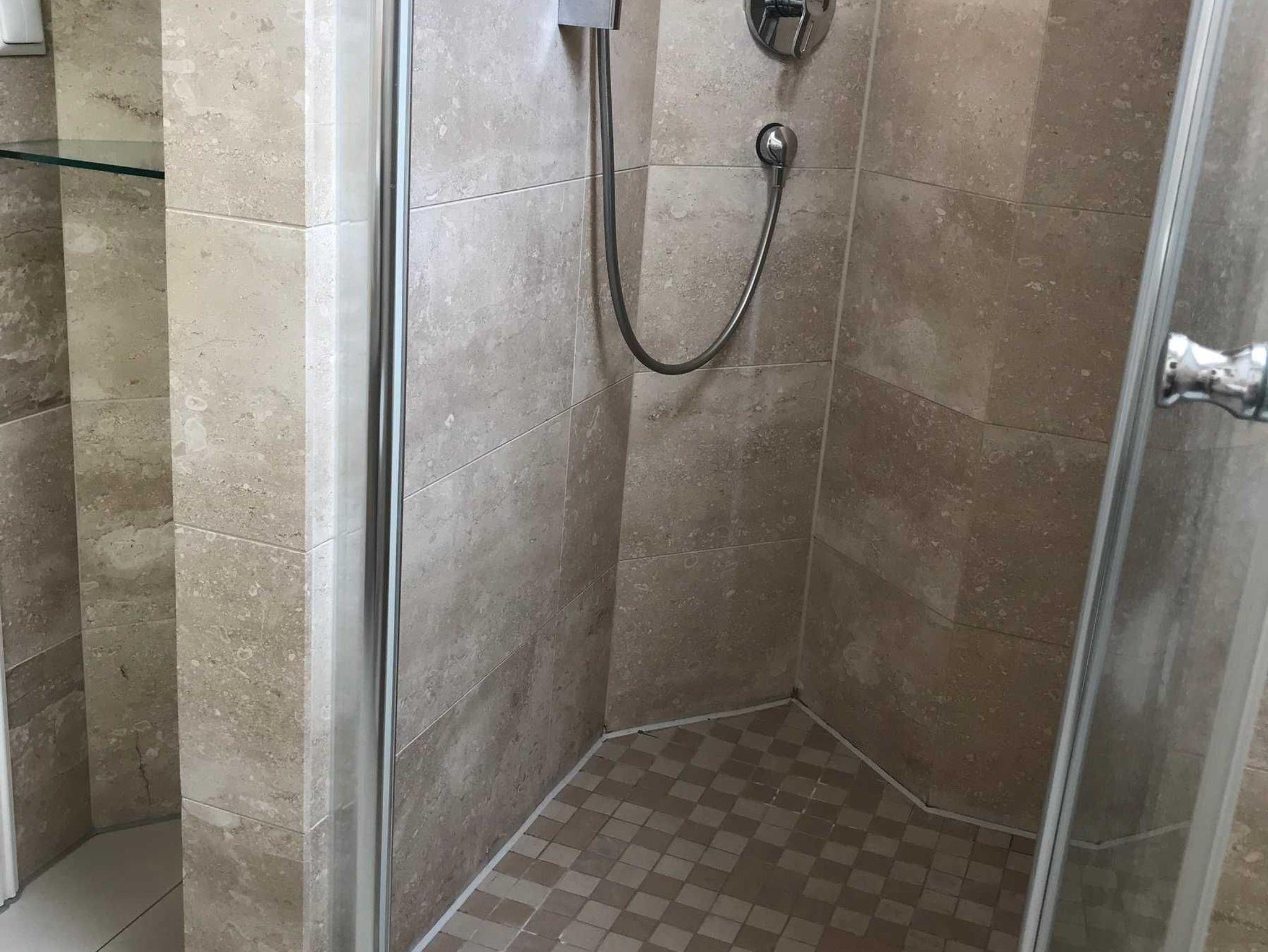 Starten Sie in Ihren Urlaubstag im modernen Bad mit Fenster und bodentiefer Dusche gut erfrischt.