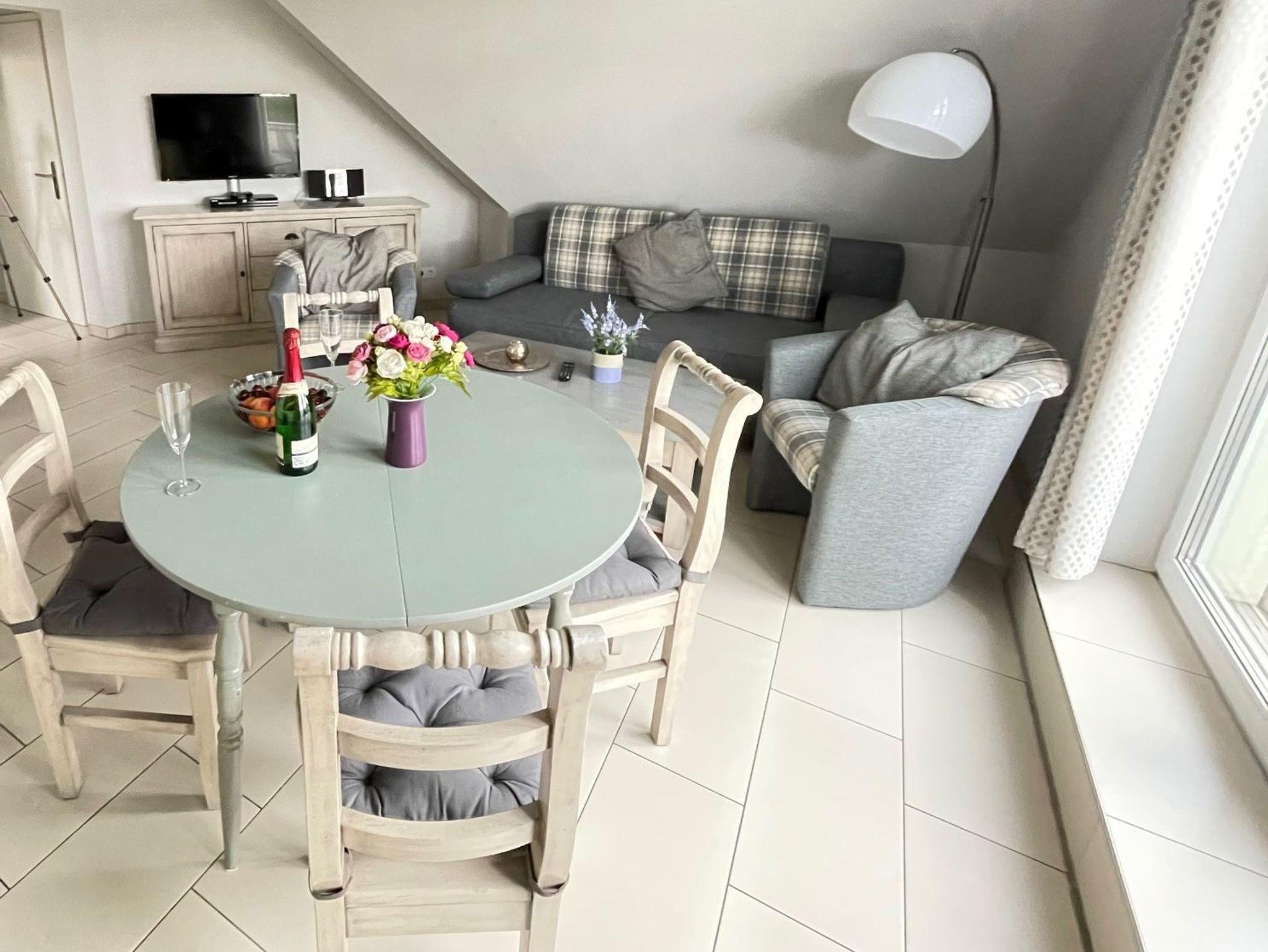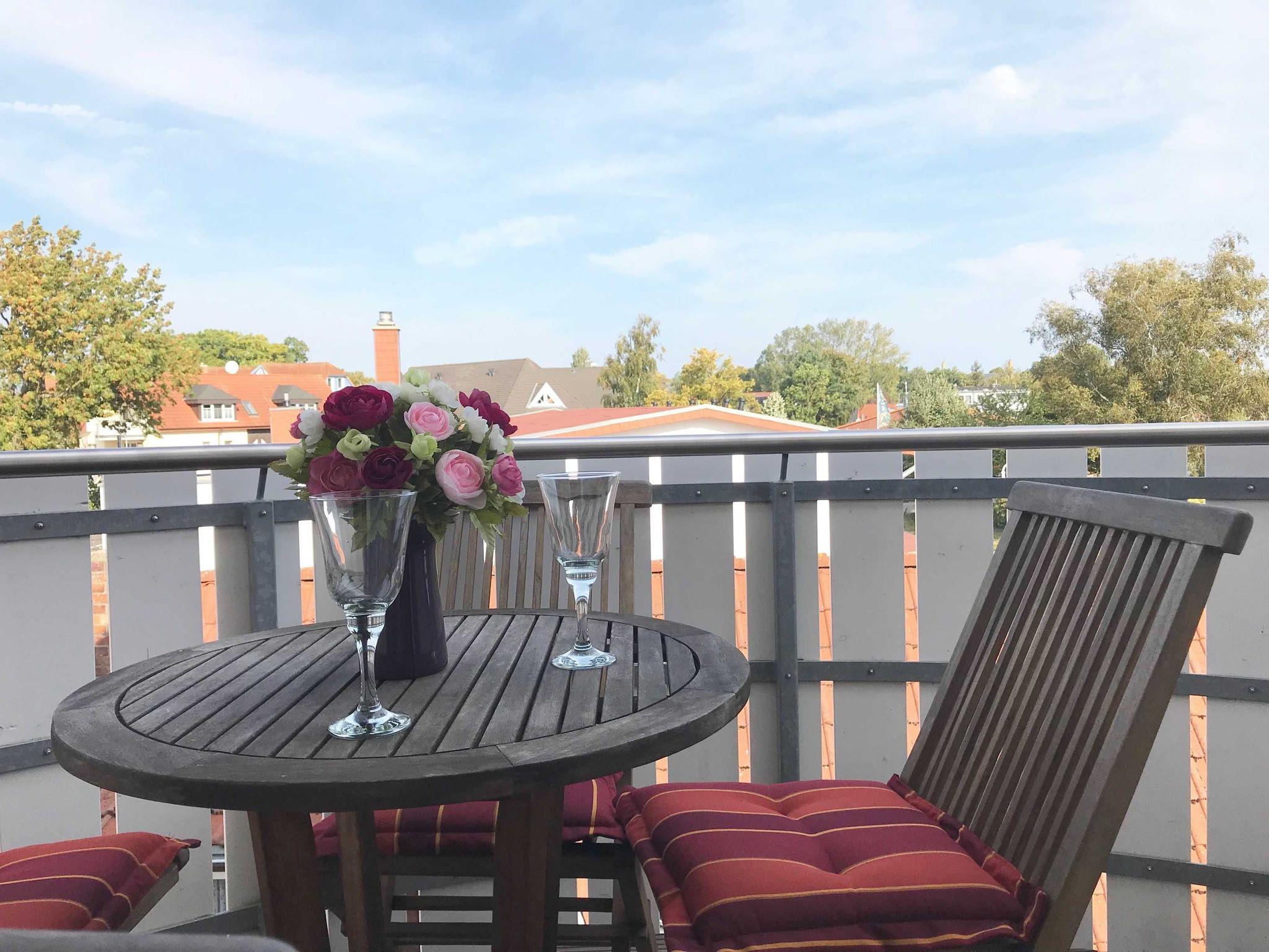Ein leckeres Frühstück in der voll ausgestatteten Küchenzeile zubereitet und auf dem sonnigen Balkon oder der Essecke genossen. Nach einem erfüllten Tag am Strand und der schönen Natur des Darß, entspannen Sie in der kostenfreien Sauna auf Ihrer Etage.