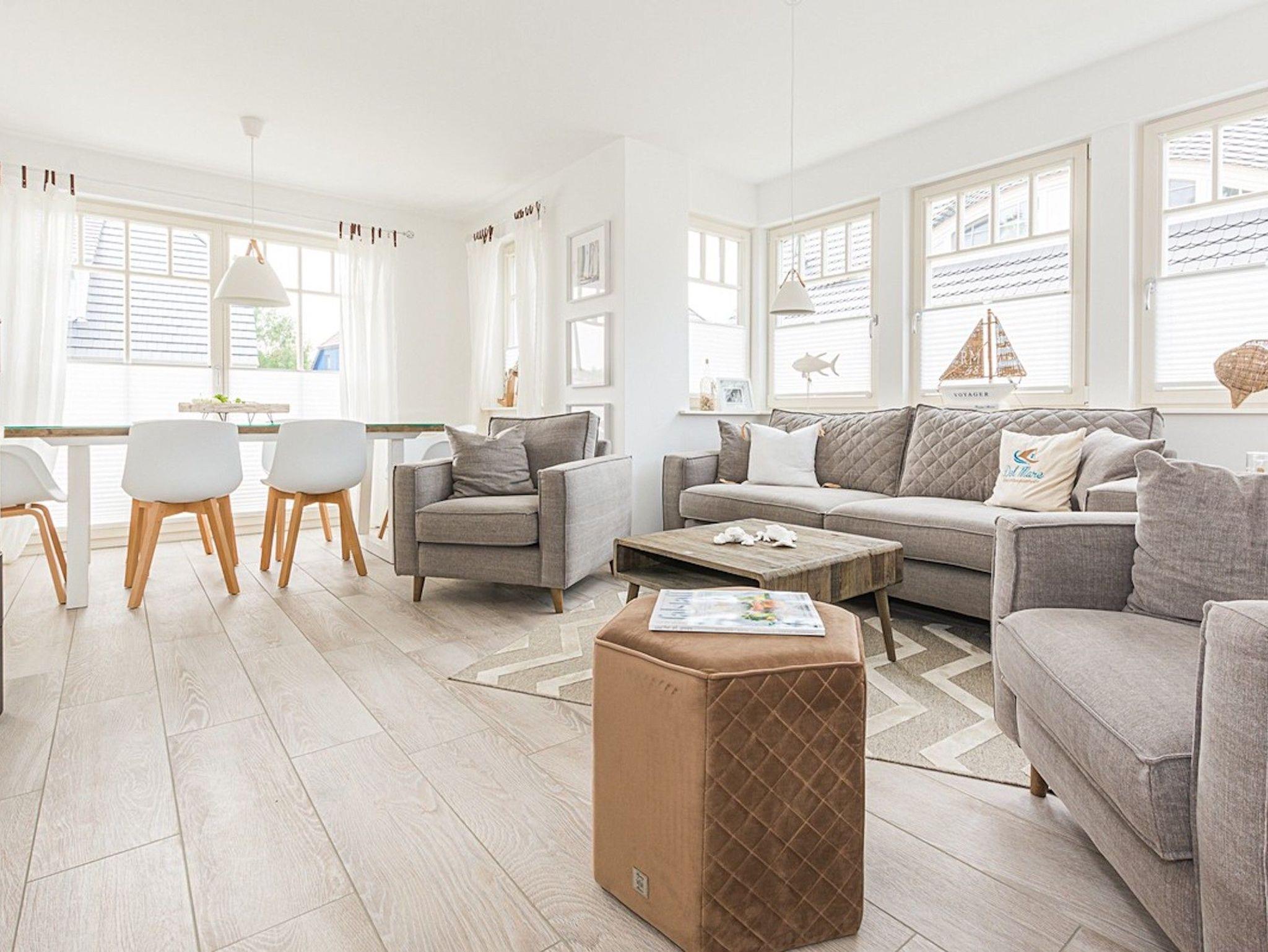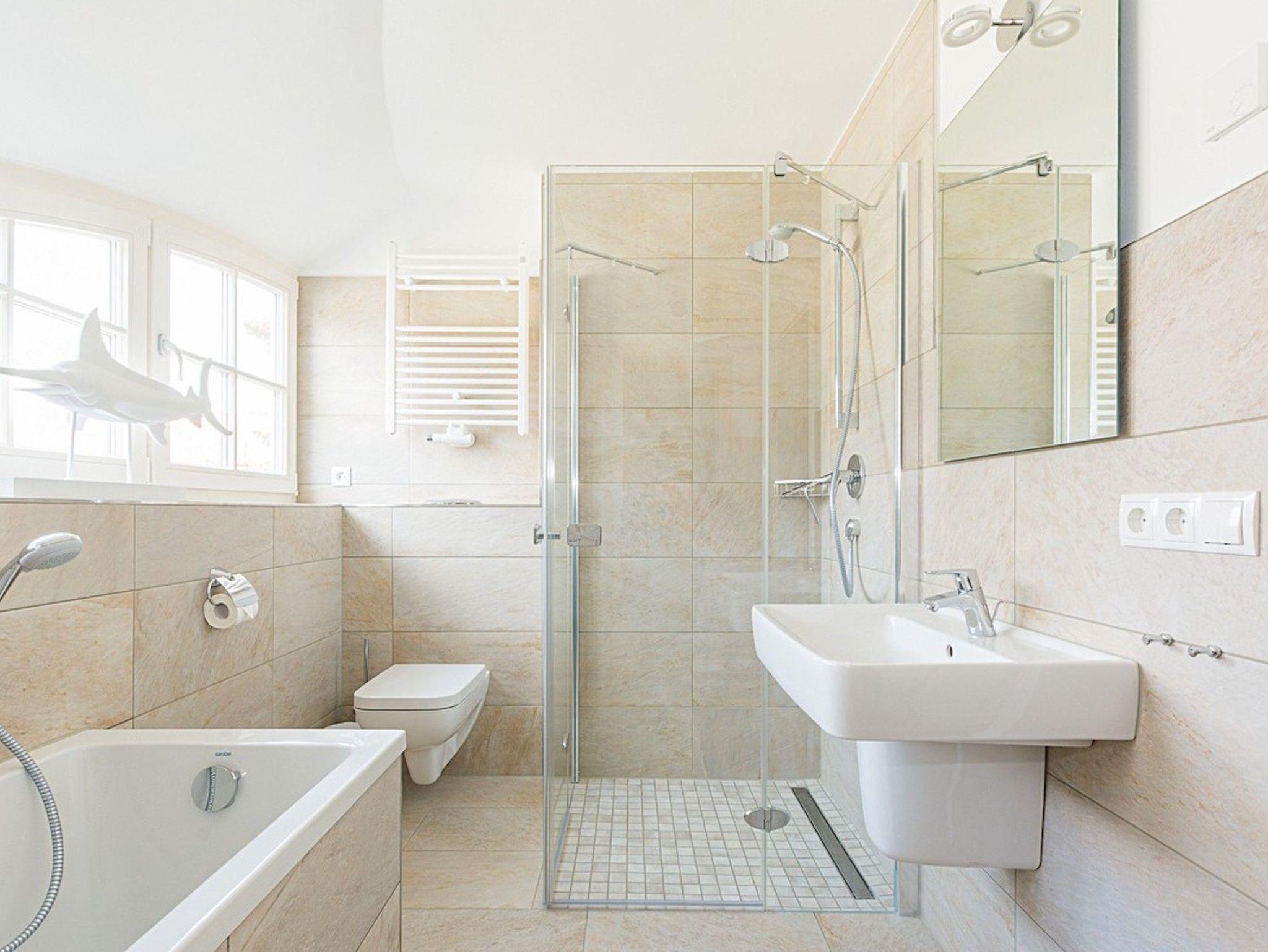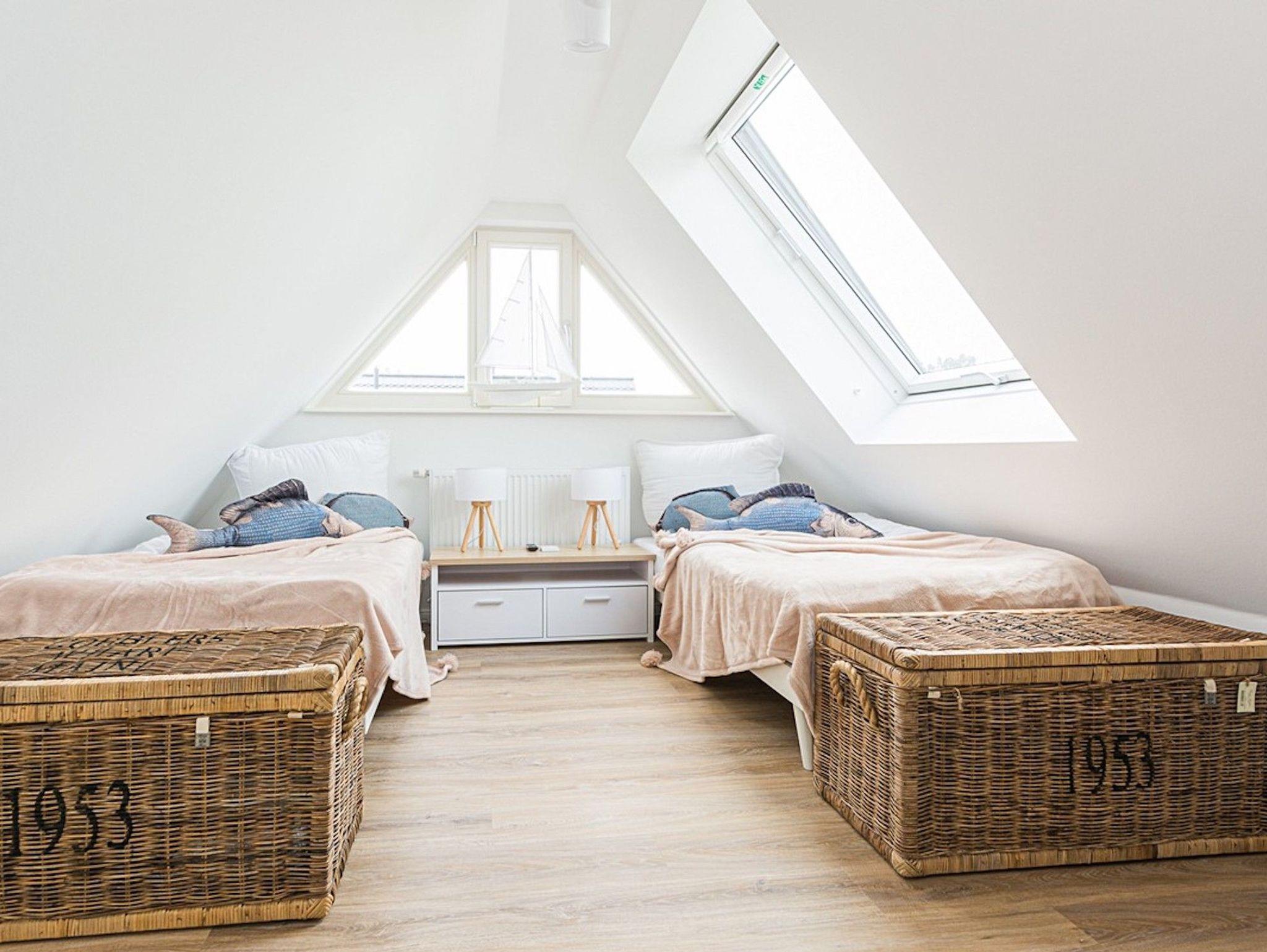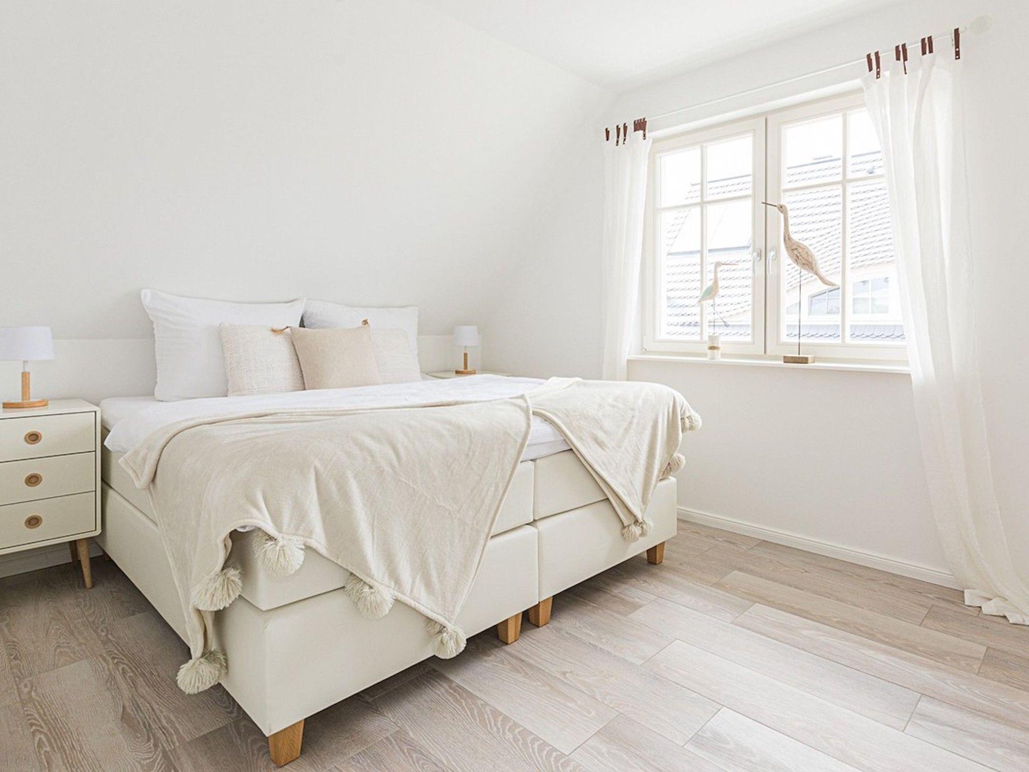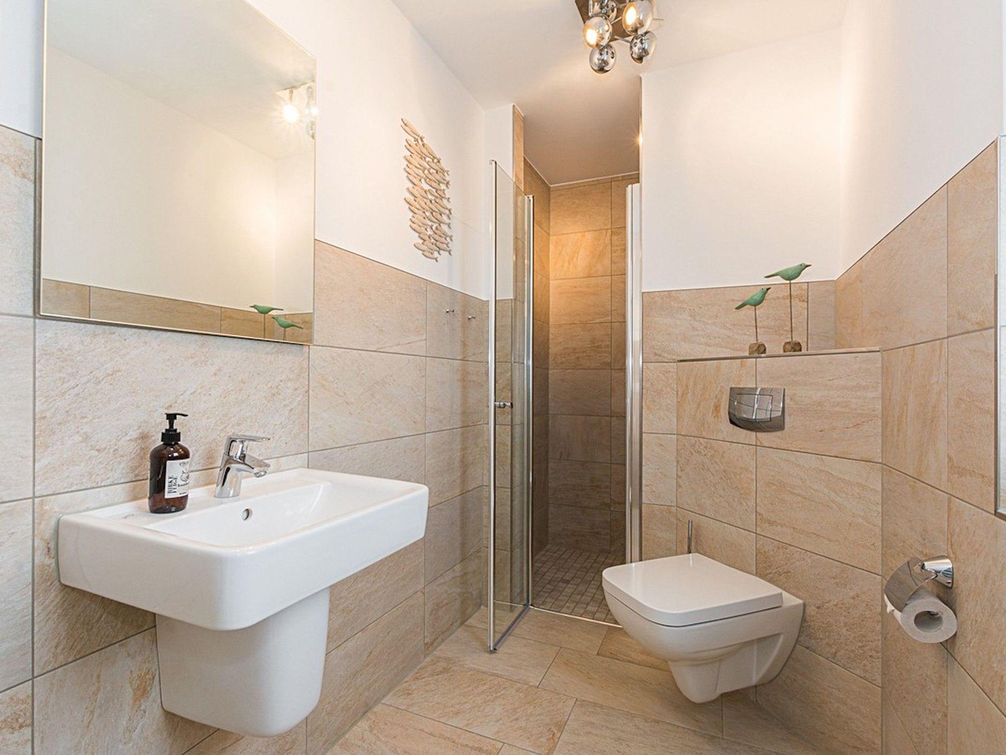 In Zingst wohnen Sie in einer Doppelhaushälfte über drei Etagen. 3,5 Schlafzimmer, 2 Zimmer sind mit einem Doppel-Boxspringbett und 2 mit Einzelbetten ausgestattet. Insgesamt finden hier 7 Personen ihren Platz. Das Ferienhaus Hus Zeeskahn hat 2 hochwertige Bäder, eines davon hat neben der bodengleichen Dusche, eine Badewanne und auch eine eigene Sauna.