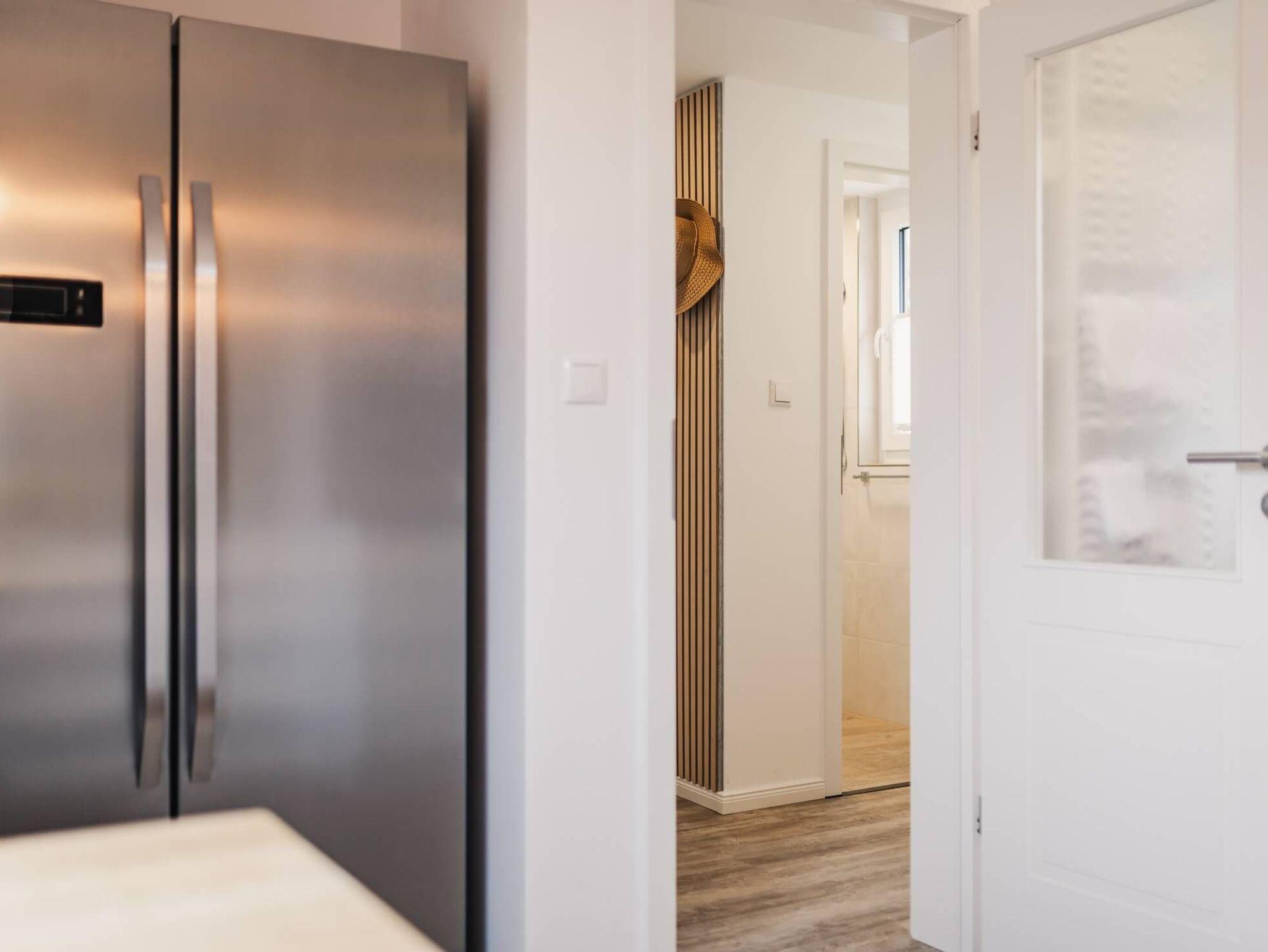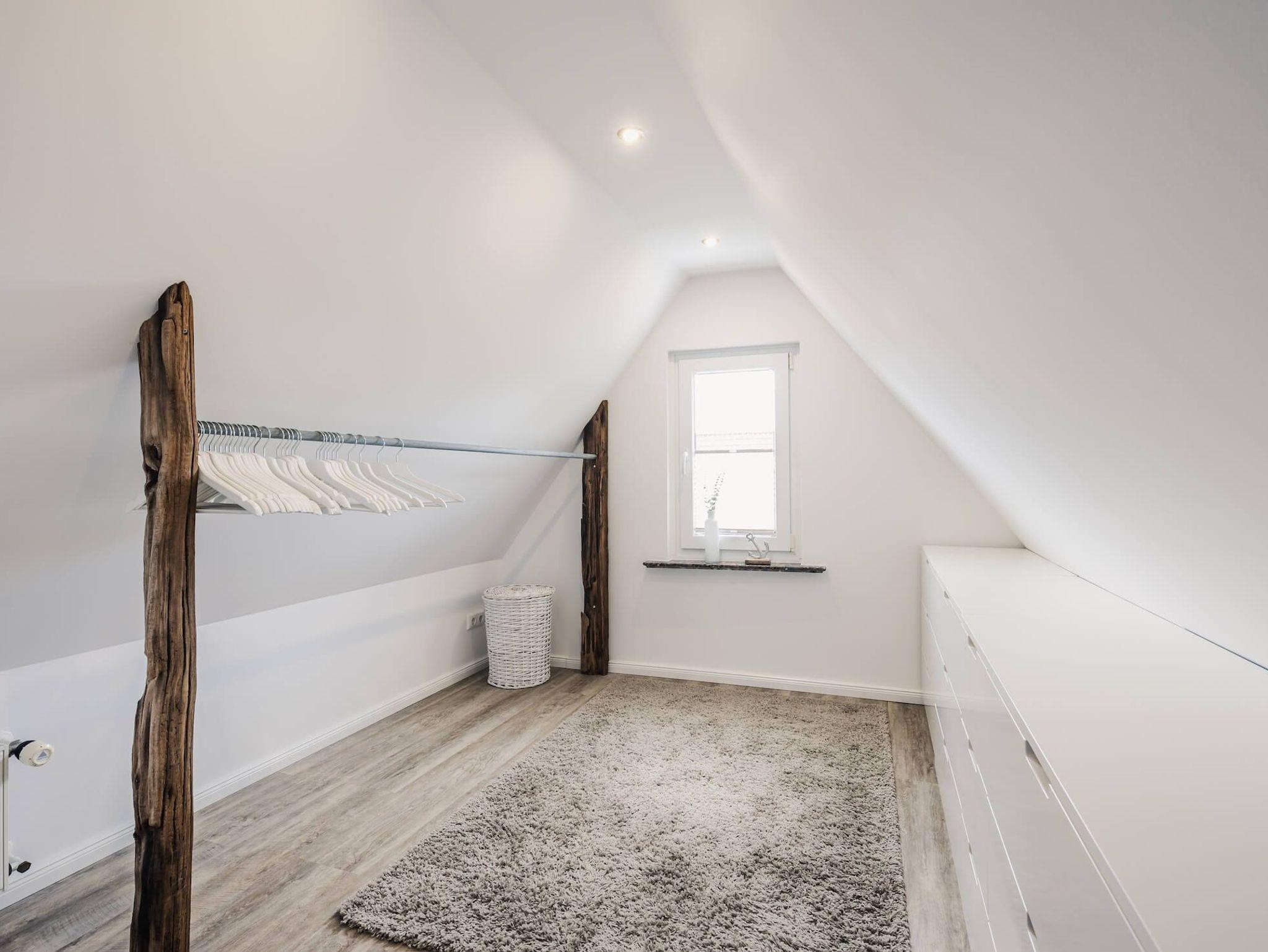 Im ersten Stock unserer Maisonette-Ferienwohnung Schwalbennest erwartet Sie ein durchdacht gestalteter Bereich, der Ihnen alles für einen entspannten Start in den Tag bietet. Hier finden Sie ein gemütliches Schlafzimmer mit einem komfortablen Doppelbett, das Ihnen erholsame Nächte garantiert. Direkt angrenzend befindet sich ein modernes Badezimmer mit einer geräumigen Dusche, in dem Sie sich nach einem ereignisreichen Tag erfrischen können. Die voll ausgestattete Küche lässt keine Wünsche offen und bietet Ihnen die Möglichkeit, sich selbst zu versorgen und kulinarische Köstlichkeiten zuzubereiten.