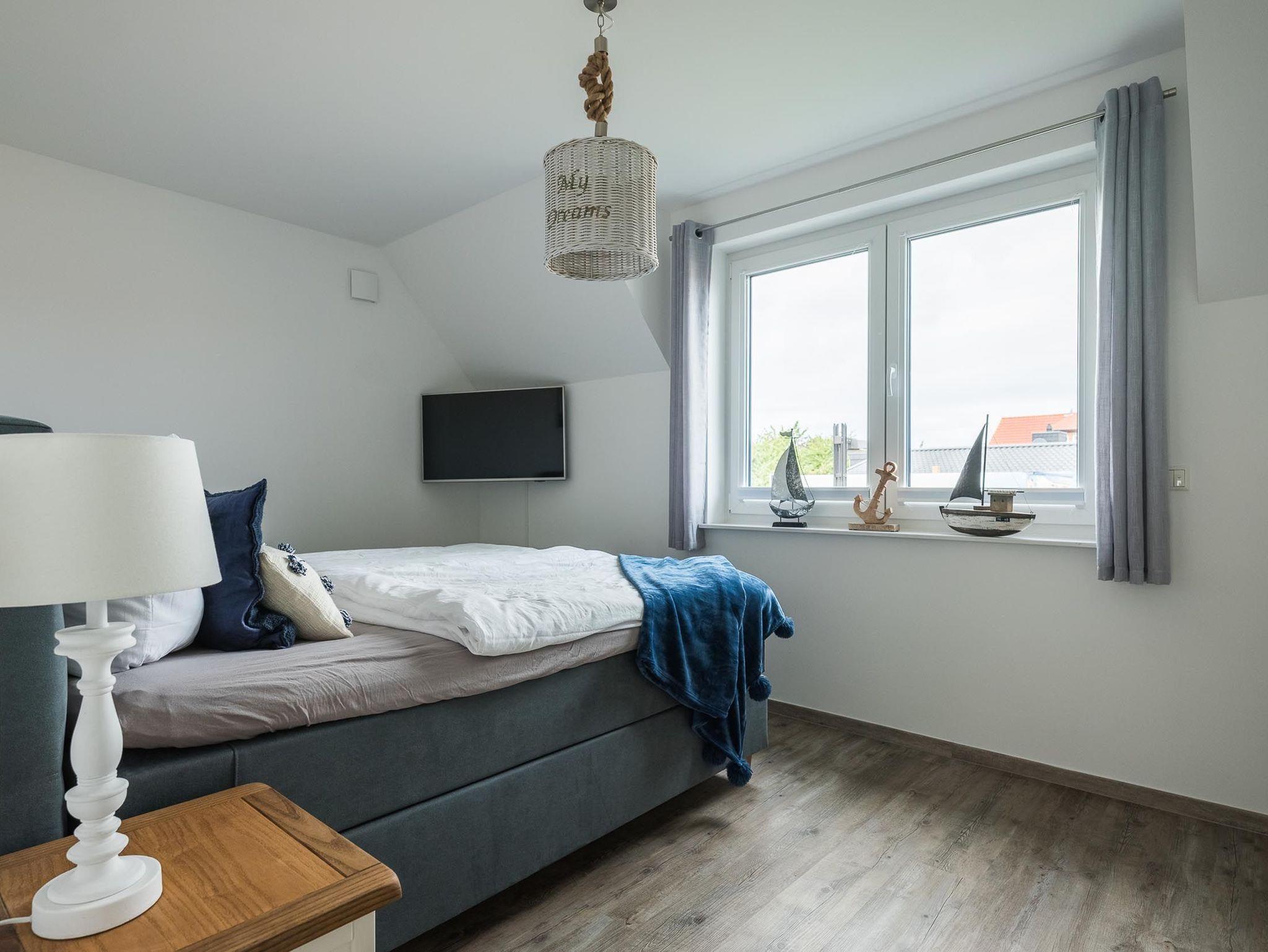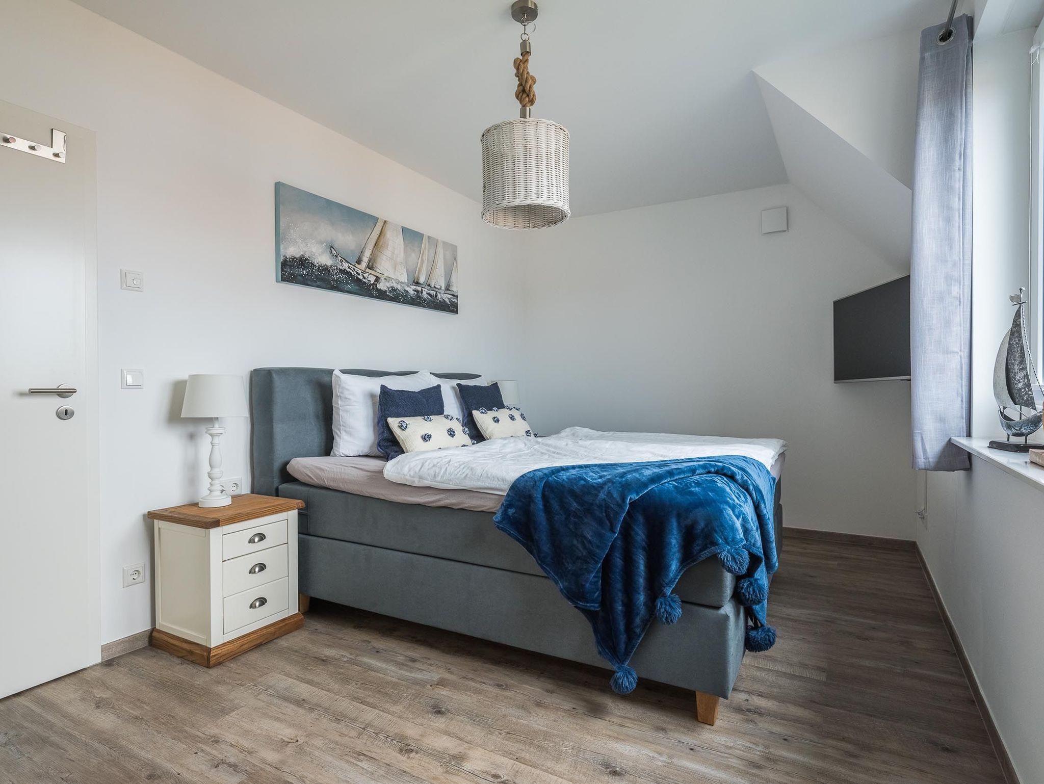 Im großen Schlafzimmer garantiert ein sehr komfortables Boxspringbett erholsamen Schlaf. Das zweite Schlafzimmer ist mit einem gemütlichen Einzelbett ausgestattet.