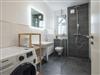 Das modern eingerichtete Badezimmer ist mit einer hochwertigen bodengleichen Dusche sowie einer Waschmaschine ausgestattet.