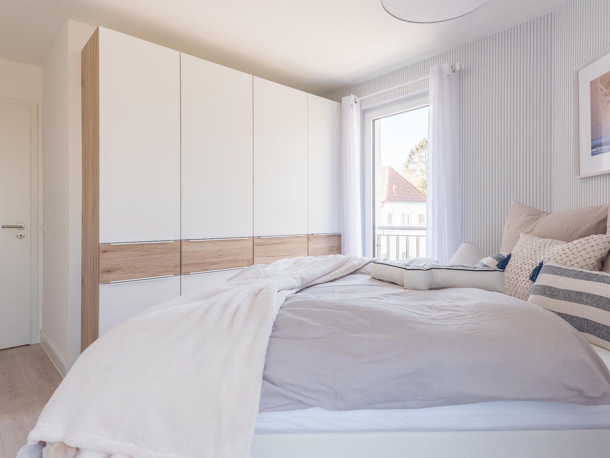 Bodentiefe Fenster lassen den maritimen und zugleich eleganten Charme des lichtdurchfluteten Apartments besonders zur Geltung kommen.