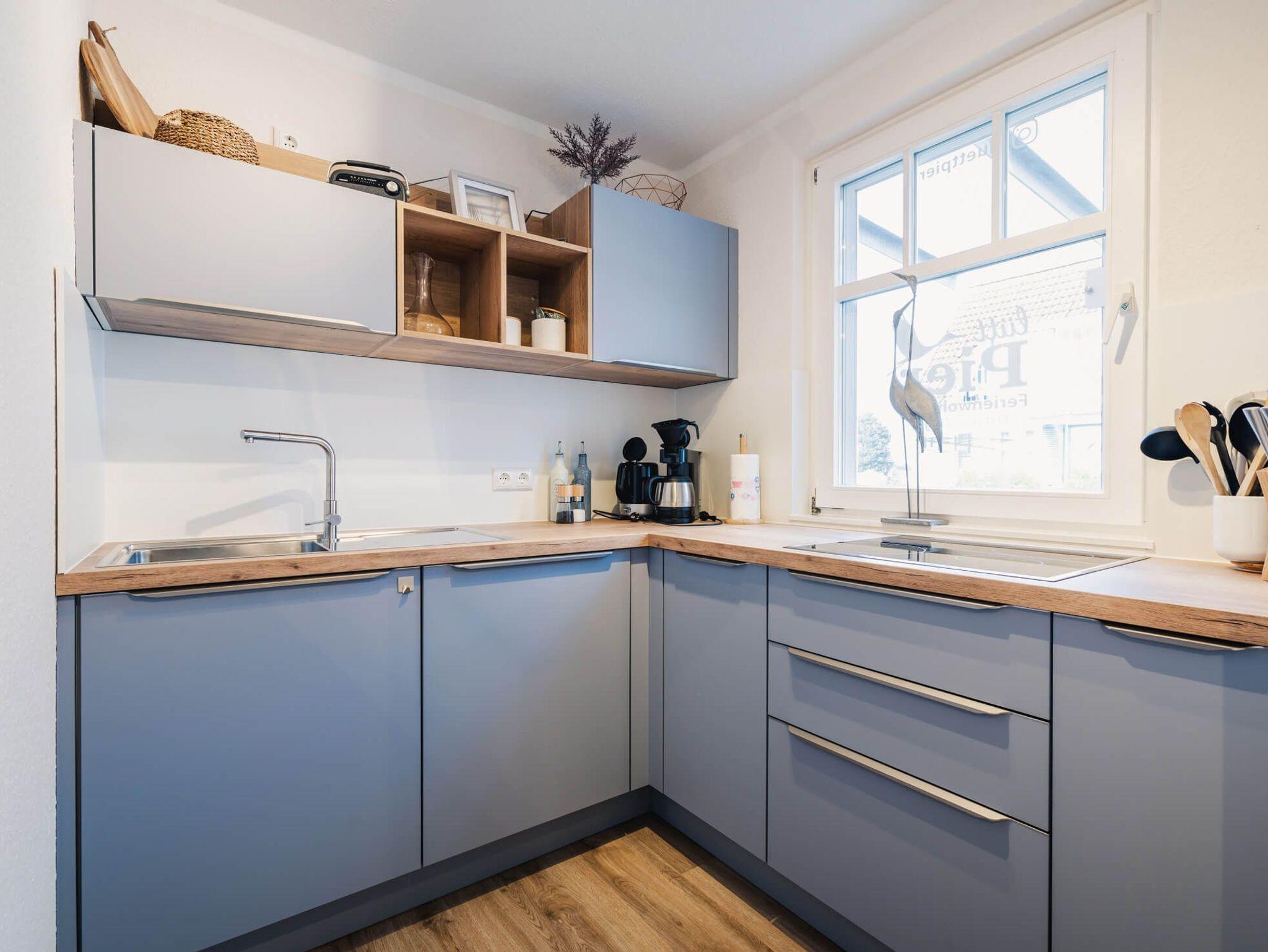 Die Ferienwohnung Lütt Pier bietet Platz für bis zu 6 Personen. Im unteren Bereich der Maisonette finden Sie zwei separate Schlafzimmer, die jeweils mit gemütlichen Doppelbetten ausgestattet sind und Ihnen erholsame Nächte garantieren. Das moderne Badezimmer mit Dusche lässt keine Wünsche offen. Die voll ausgestattete Küche bietet alles, was Sie für die Zubereitung Ihrer Lieblingsmahlzeiten benötigen ? von Kaffeemaschine bis Kochutensilien ist alles vorhanden.