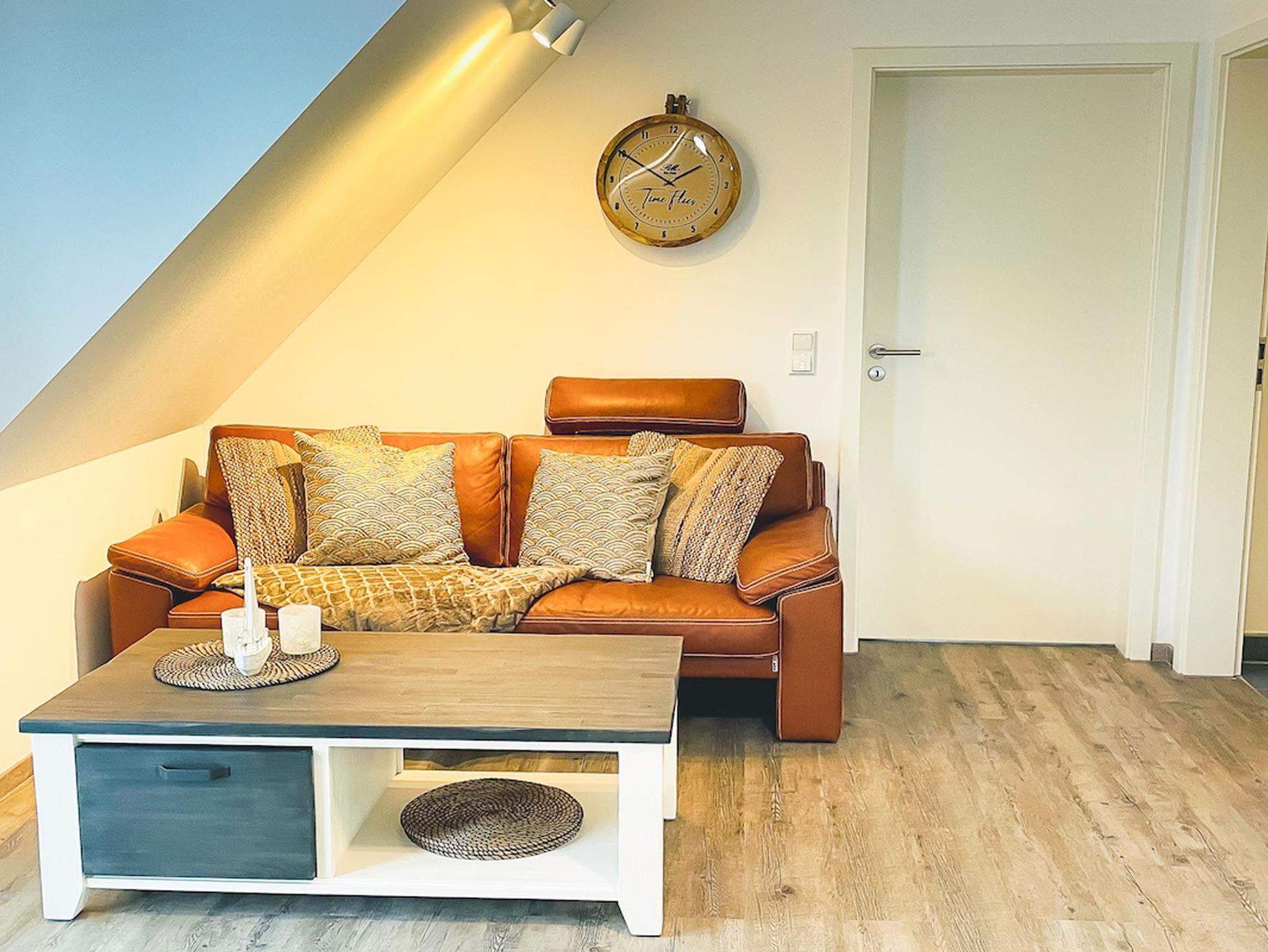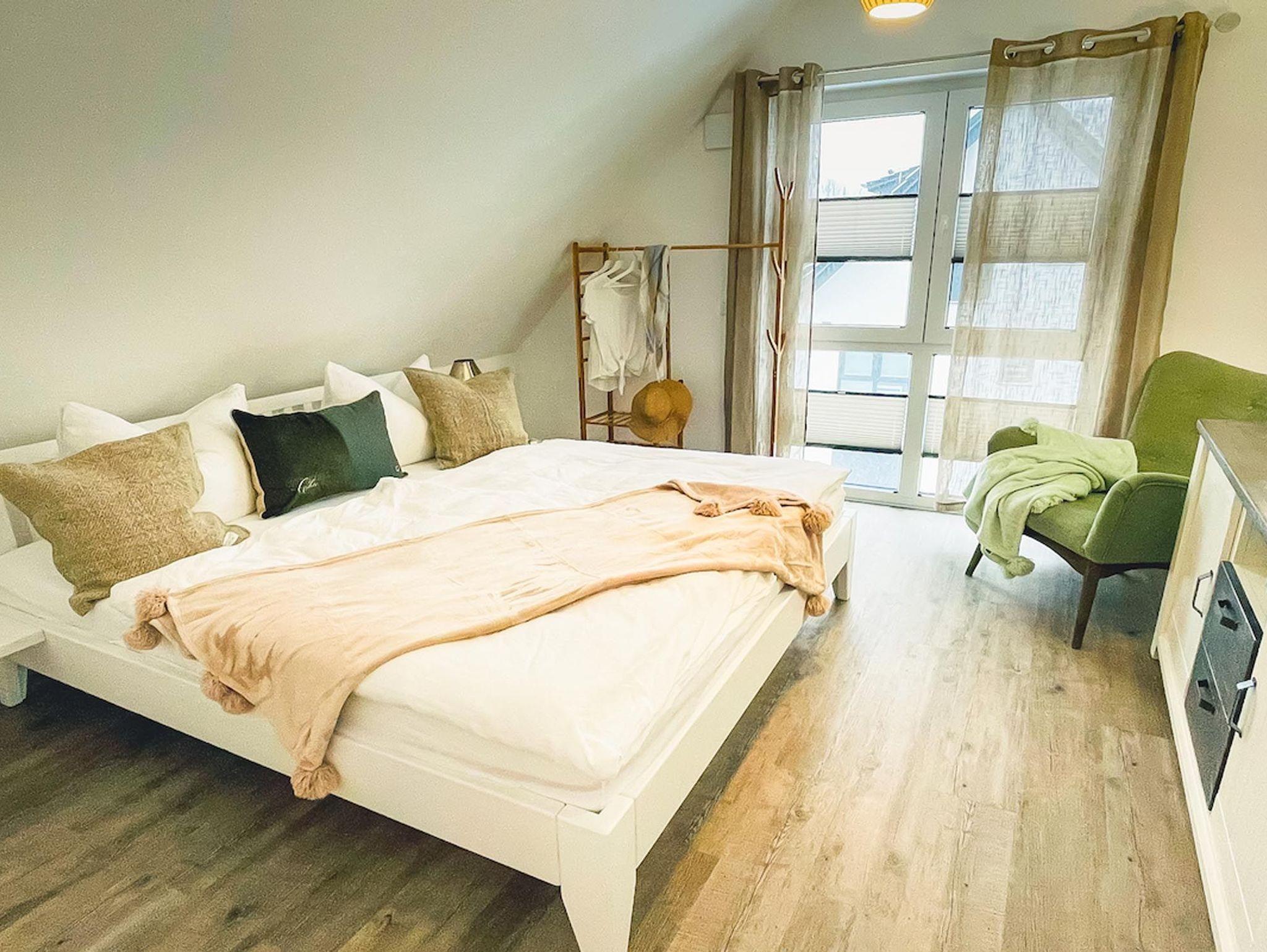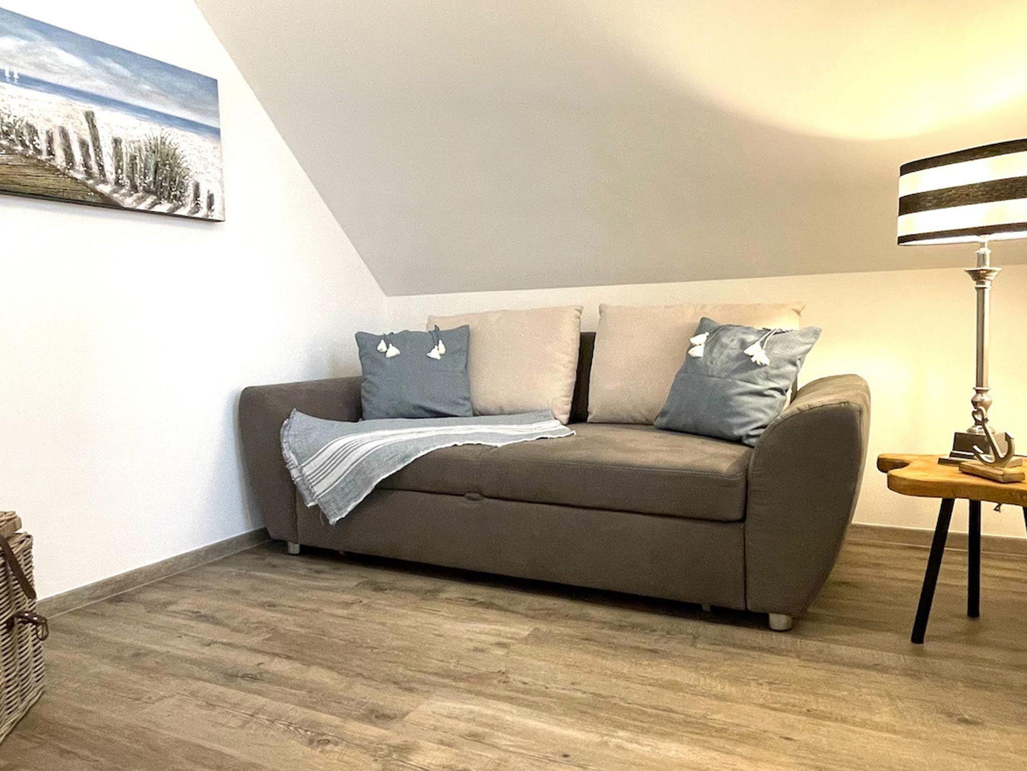 Vom Wohnzimmer aus hat man direkten Zugang zum möblierten Balkon und kann hier wunderbar das Frühstück genießen und über die Dächer von Zingst schauen.