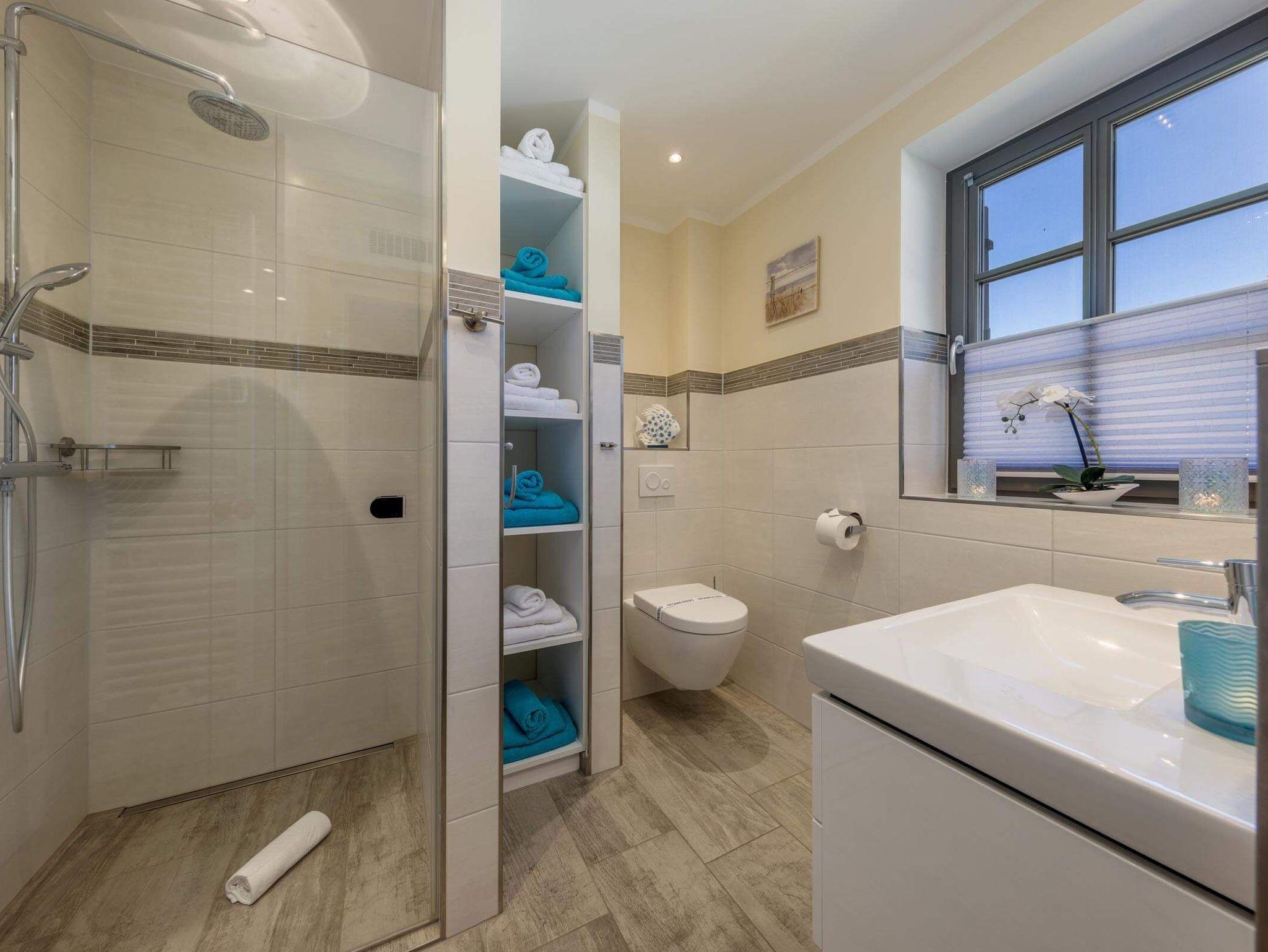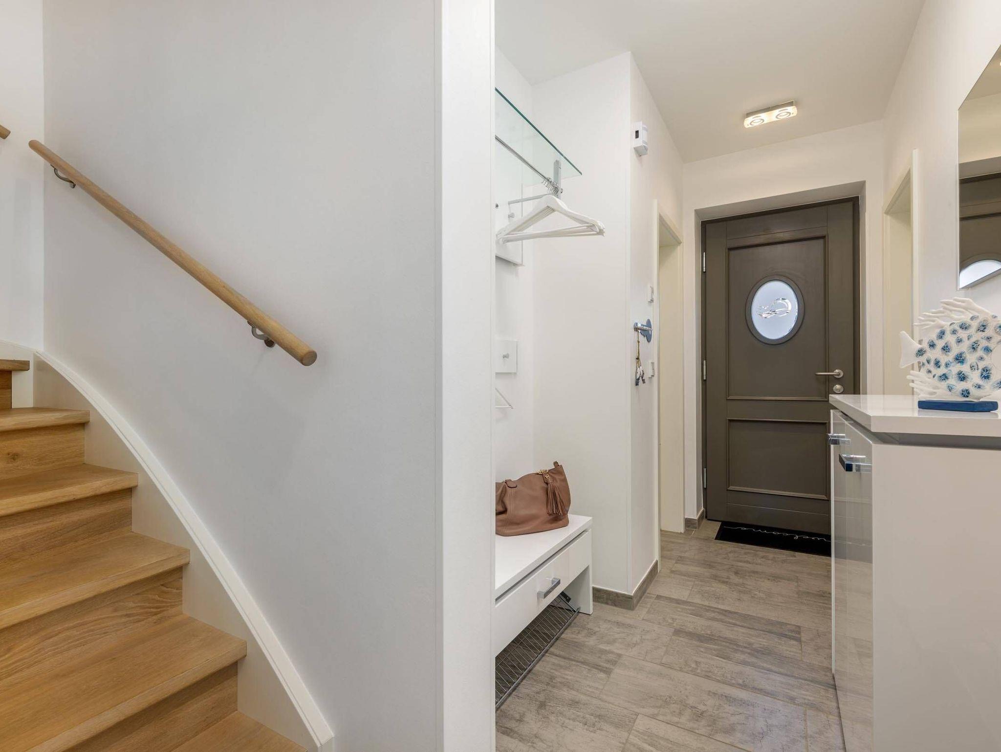 Das Ferienhaus Küstenglück bietet auf ca. 94 m² und drei Wohnebenen ein Urlaubserlebnis der Extraklasse. Im Erdgeschoss erwartet Sie eine großzügige Wohnküche mit Vollausstattung (Kaffeevollautomat, Geschirrspüler), ein gemütlicher Essbereich und der Wohnbereich mit Gaskamin. Von hier gelangen Sie direkt in den privaten, eingezäunten Garten. Ein vollwertiges Duschbad und ein Hauswirtschaftsraum (HWR) mit Waschmaschine und Trockner vervollständigen diese Ebene. Das 1. Obergeschoss beherbergt zwei Schlafzimmer mit hochwertigen Echtholzbetten und Schlaraffia-Matratzen sowie das Hauptbadezimmer mit integrierter finnischer Sauna. Alle Fenster verfügen über Außenrollos zur vollständigen Verdunkelung. Im Dachgeschoss (Spitzboden) befindet sich das dritte Schlafzimmer ? ein charmanter Rückzugsort mit zwei weiteren Schlafplätzen. Das gesamte Haus ist mit Fußbodenheizung, Fliegengittern, WLAN und Smart-TVs ausgestattet. (Tierfrei & Nichtraucher).