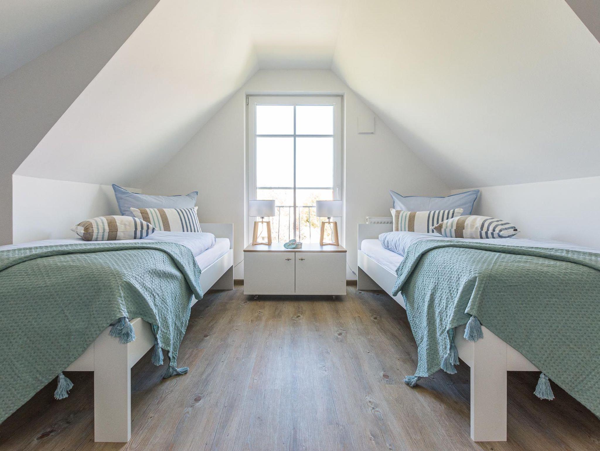 Im Dachgeschoss bietet das Apartment vier weitere Schlafgelegenheiten. Zwei komfortable Einzelbetten sowie ein Schlafsofa.