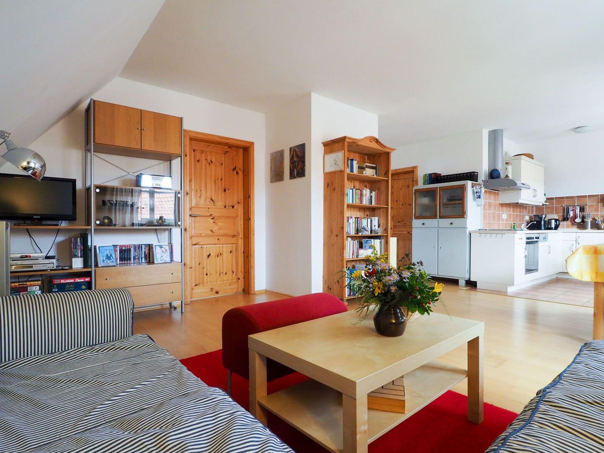 Im Dachgeschoss des Hauses Meuder erwartet Sie der Heuboden ? eine helle und behagliche Ferienwohnung, die ideal auf die Bedürfnisse von Paaren zugeschnitten ist. Unter urigen Dachschrägen erstreckt sich ein offener, lichtdurchfluteter Wohnbereich mit großen Dachfenstern, die einen weiten Blick in den Himmel ermöglichen. Ein bequemes Sofa mit Schlaffunktion, ein einladender Esstisch und eine integrierte, voll ausgestattete Pantry-Küche bieten alles für einen entspannten Aufenthalt. Das separate Schlafzimmer verfügt über ein komfortables Doppelbett für ruhige Nächte. Ein funktionales Badezimmer mit Dusche rundet das Angebot dieser charmanten Rückzugsmöglichkeit ab.