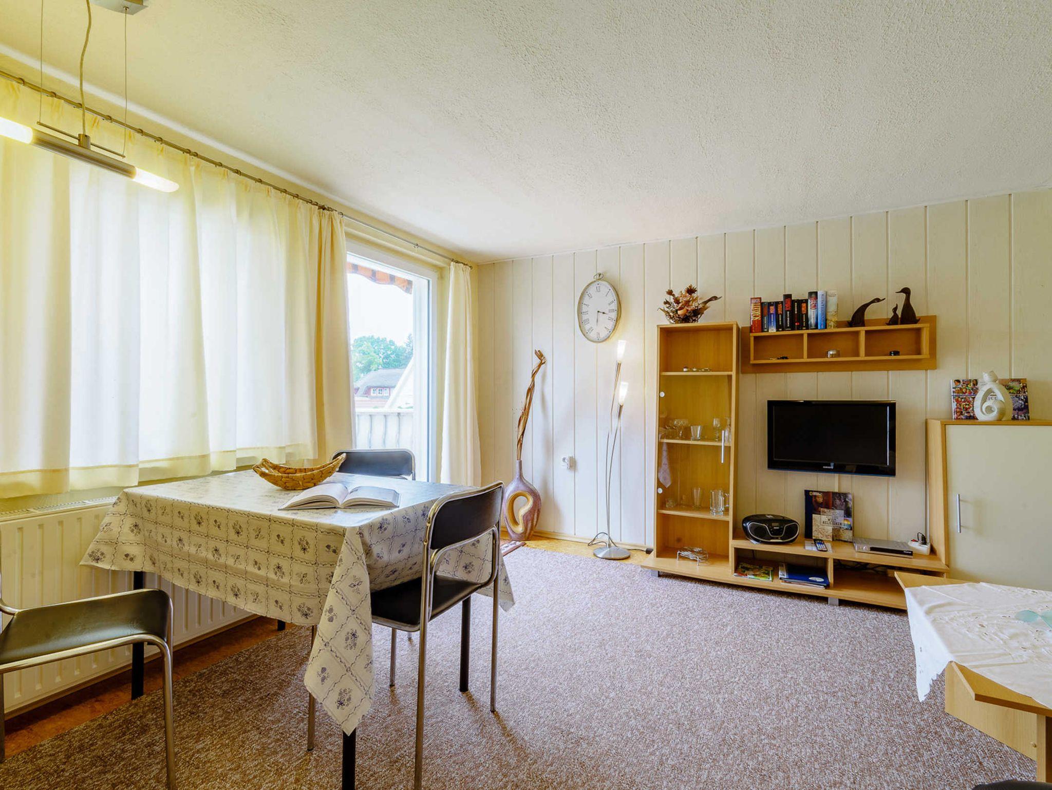 Mach es dir gemütlich in der 50 m² großen Ferienwohnung 1 im Obergeschoss des Hauses ? ein idealer Rückzugsort für zwei Personen, die Ruhe und Erholung suchen. Im hellen Wohnzimmer erwartet dich eine gemütliche Sitzecke mit TV, perfekt für entspannte Filmabende oder gemütliche Lesestunden. Am Esstisch kannst du gemeinsame Mahlzeiten genießen oder den Tag mit einem leckeren Frühstück starten. Das separate Schlafzimmer lädt mit einem komfortablen Doppelbett (180x190) mit zwei getrennten Matratzen zu erholsamen Nächten ein ? hier schläfst du tief und entspannt. In der voll ausgestatteten Küche findest du alles, was du für dein kulinarisches Vergnügen brauchst: Backofen, Kaffeemaschine, Kühlschrank, Mikrowelle, Toaster, Wasserkocher und Spülmaschine ? so wird das Kochen zum Kinderspiel. Das Badezimmer verfügt über ein WC, ein Waschbecken sowie eine separate Dusche, sodass du den Tag frisch und erholt beginnen kannst. Ein besonderes Highlight ist der großzügige Balkon mit Blick auf die grünen Nachbargärten ? perfekt, um die Morgensonne bei einer Tasse Kaffee zu genießen oder den Abend entspannt ausklingen zu lassen. Denke daran Bettwäsche und Handtücher selbst mitzubringen!