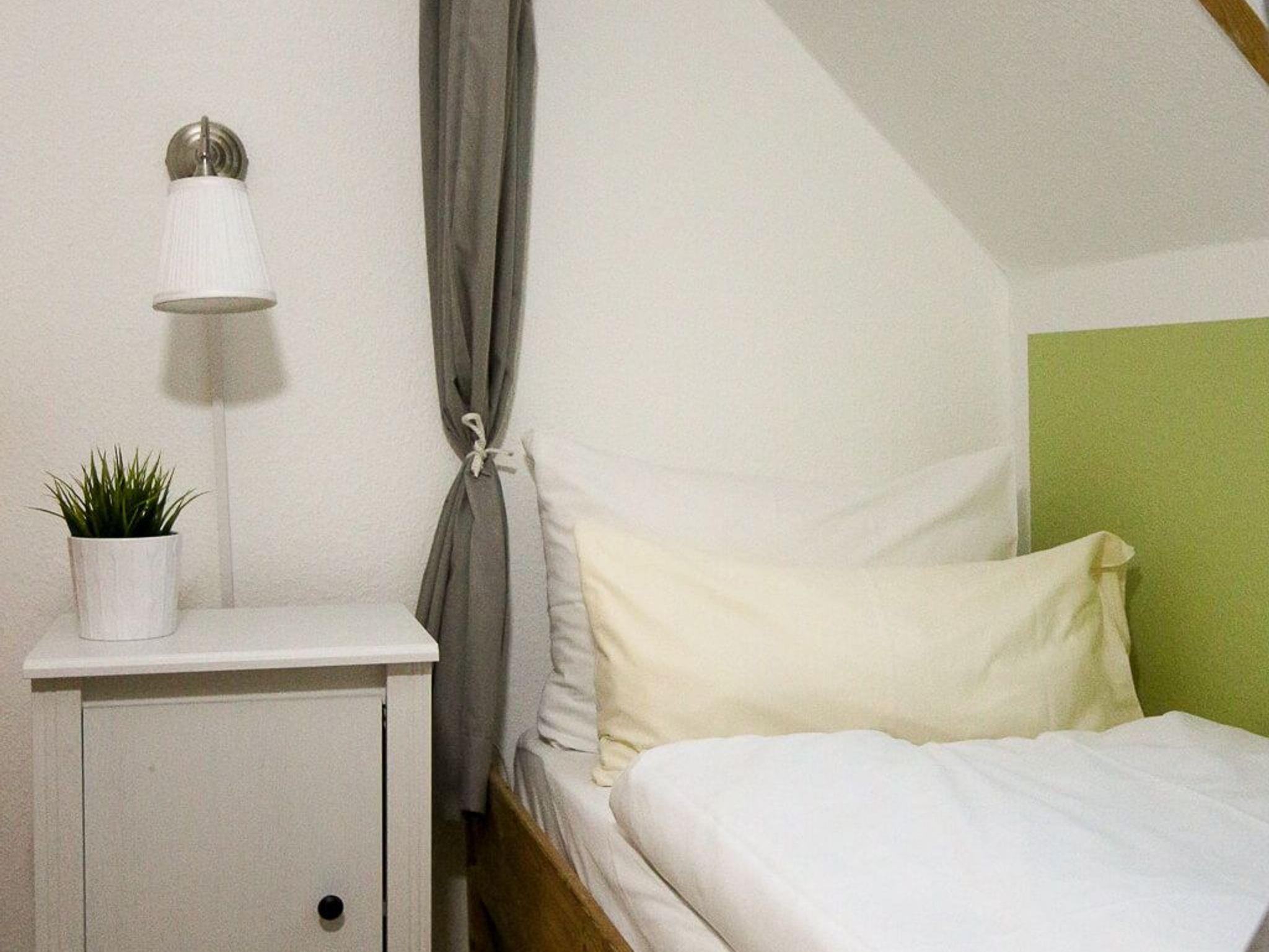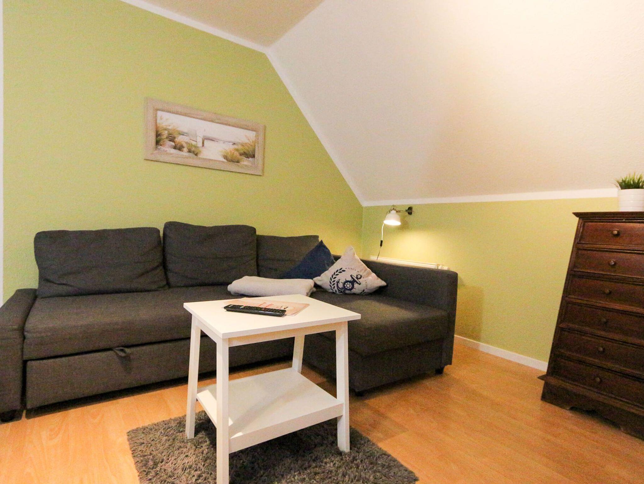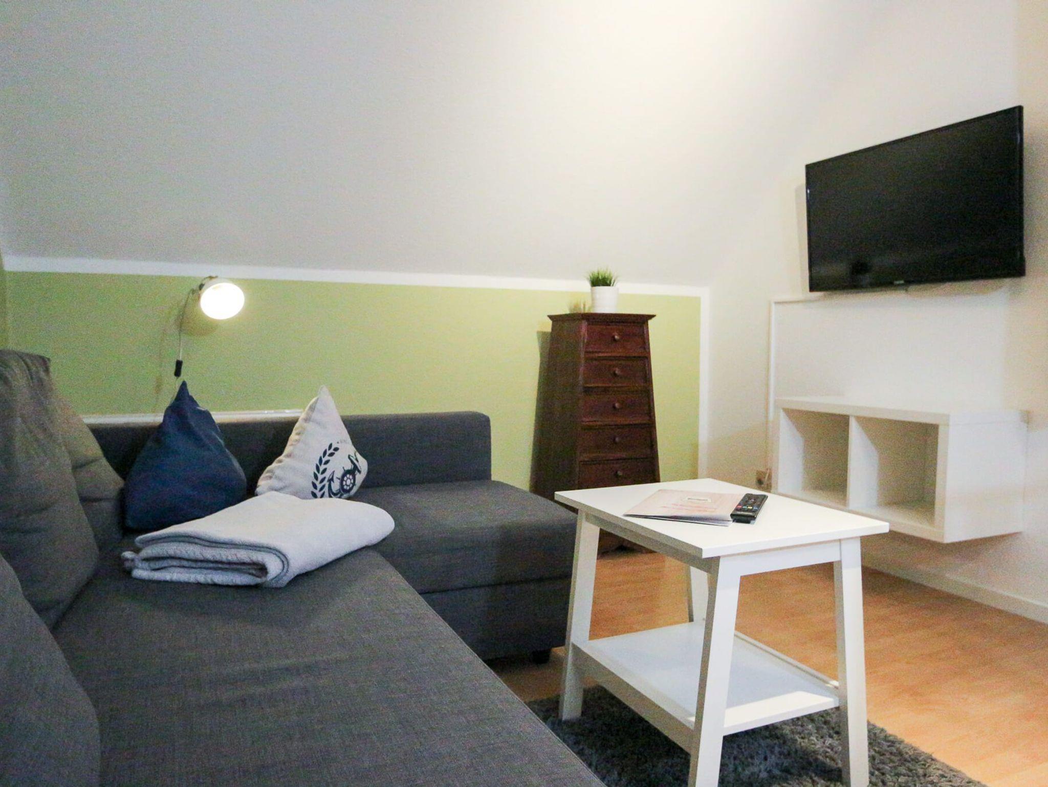 Das Maisonette-Apartment Ankerpunkt (3G) erstreckt sich über ca. 45 m² im Ober- und Dachgeschoss von Haus 3. Die Wohneinheit bietet Platz für bis zu 5 Personen und besticht durch ein helles, nordisches Design. Da in diesem Apartment keine Haustiere gestattet sind, genießen Gäste hier eine besonders gepflegte und tierfreie Atmosphäre. Die untere Ebene beherbergt den Wohn-Essbereich mit voll ausgestatteter Küchenzeile (Ceranfeld, Mikrowelle mit Grillfunktion) und Smart-TV. Im Dachgeschoss befinden sich das Hauptschlafzimmer sowie eine zusätzliche, gemütliche Schlafkoje. Das moderne Tageslichtbad verfügt über eine Dusche und stellt kostenfreie Pflegeprodukte bereit. WLAN sowie ein komplettes Wäschepaket sind inkludiert.