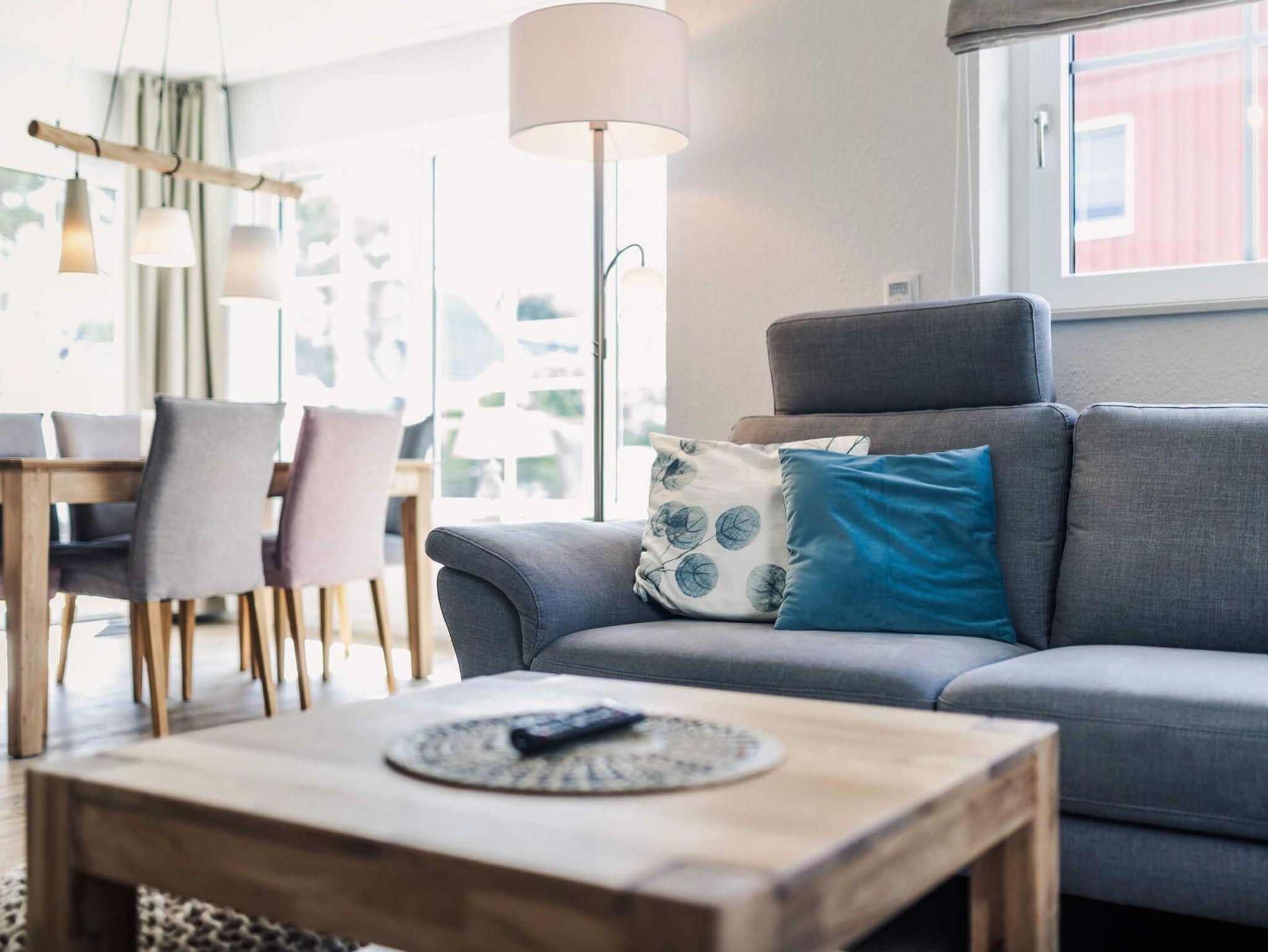 Das Wohnzimmer lädt zum Entspannen ein. Es ist mit einem bequemen Sofa und einem Fernseher ausgestattet. Hier können Sie sich zurücklehnen und einen Film schauen oder einfach nur die Ruhe und Gemütlichkeit des Hauses genießen. Bei kälterem Wetter können Sie den Kamin anfeuern und eine wohlige Atmosphäre schaffen.