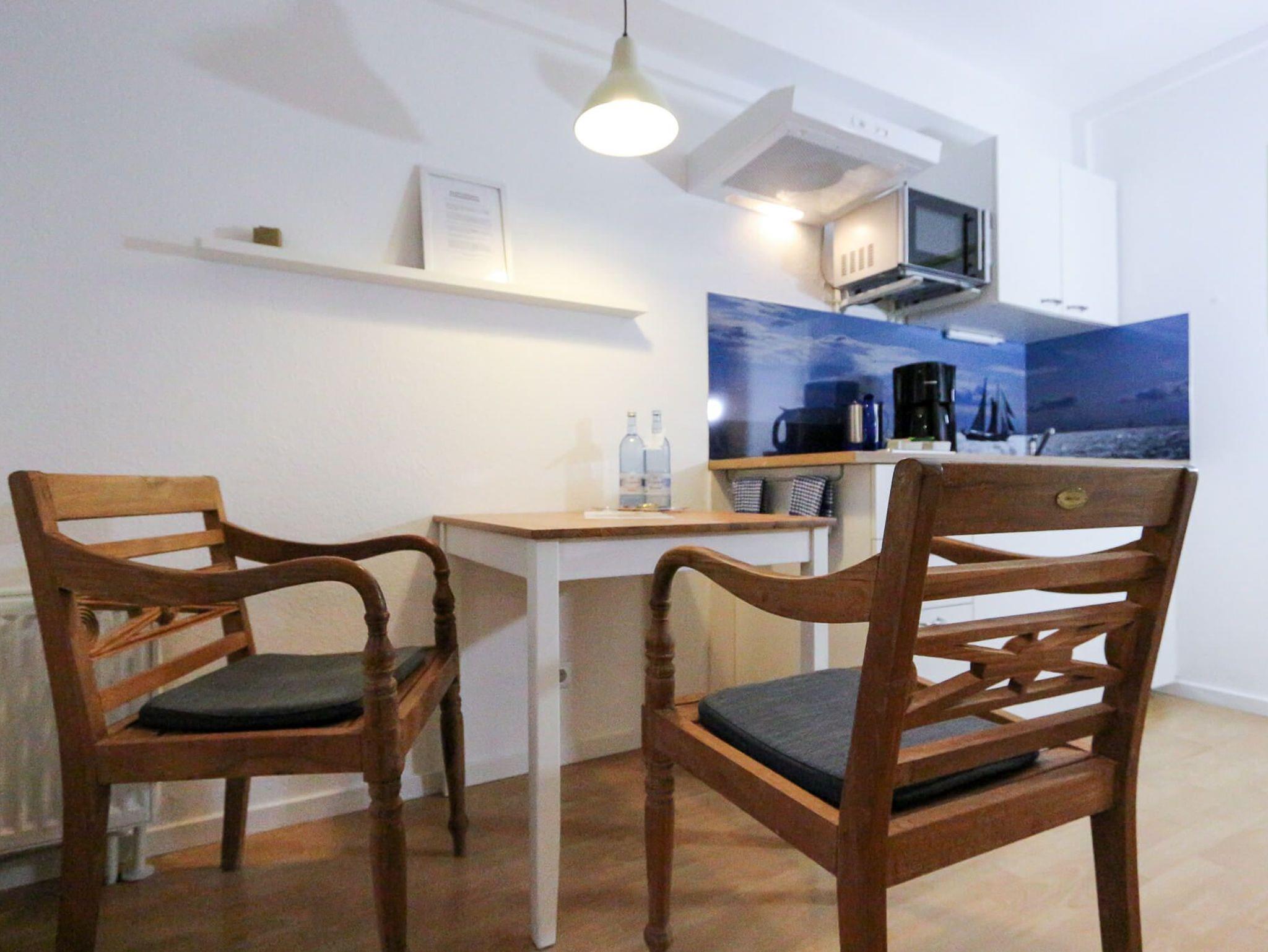 Das Apartment Kompass Nord empfängt Sie auf ca. 30 m² im Erdgeschoss von Haus 3. Diese Wohneinheit ist perfekt auf die Bedürfnisse von zwei Personen zugeschnitten und heißt auch Ihren Hund herzlich willkommen. Das Apartment verfügt über ein separates Schlafzimmer mit Doppelbett und einen kombinierten Wohn-Essbereich, der durch eine West-Terrasse erweitert wird. Hier lassen sich entspannte Stunden in der Abendsonne genießen. Zur technischen Ausstattung gehören ein Smart-TV und kostenfreies WLAN. In der Küchenzeile finden Sie ein Ceranfeld sowie eine Mikrowelle mit praktischer Grillfunktion vor. Ein hochwertiges Wäschepaket (Bettwäsche/Handtücher) sowie kostenfreie Pflegeprodukte im Badezimmer gehören zum Standard dieses Apartments.