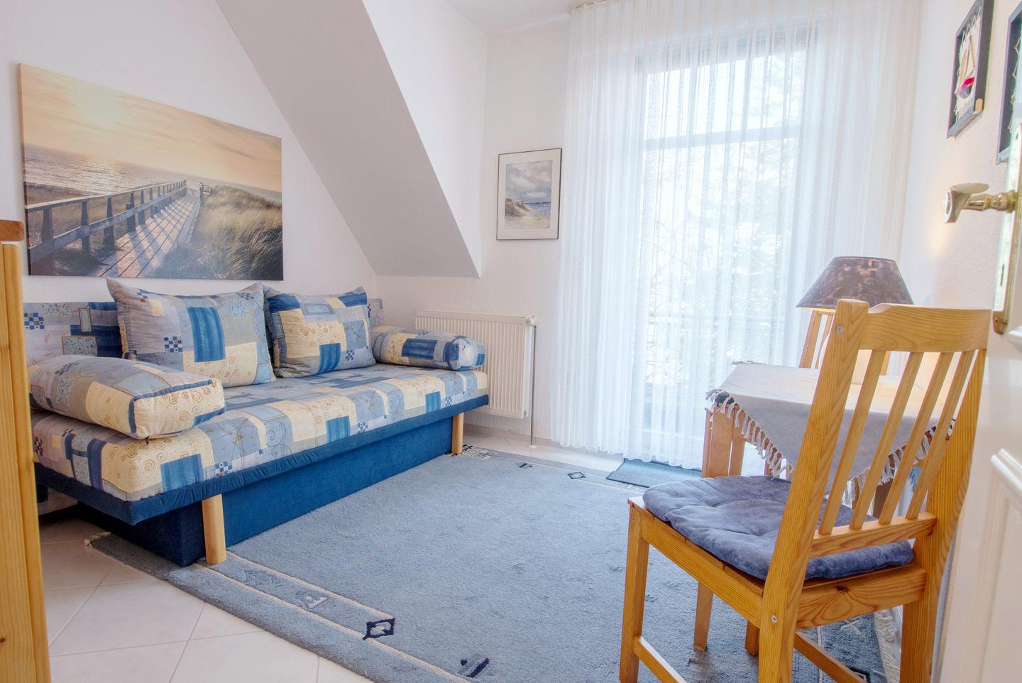 Die Wohnung Himmelkieker ist ca. 80 m² groß und liegt im Obergeschoss des Appartementhauses Boddenblick.