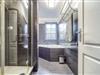 Das Bad ist mit einer Eckbadewanne und bodentiefer Vollglas-Duschkabine ausgestattet.