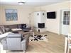 Im Erdgeschoss befindet sich der Flur, ein großer Wohnraum mit Ledersitzgarnitur, Kamin und TV, eine möblierte Terrasse mit Gartenzugang und eine hochwertig ausgestattete Küche.