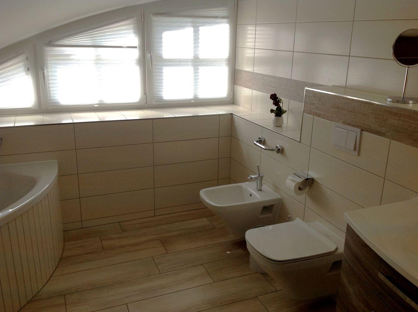 Das Haus verfügt über drei Bäder, einmal im EG mit bodengleicher Dusche und Waschmaschine. Die weiteren Badezimmer mit Dusche bzw. Dusche und Eckbadewanne sowie Bidet befinden sich im 1. Obergeschoss.