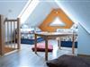Das Kinderzimmer ist mit zwei Einzelbetten ausgestattet und befindet sich im Dachgeschoss, der Raum ist offen und ohne Tür.