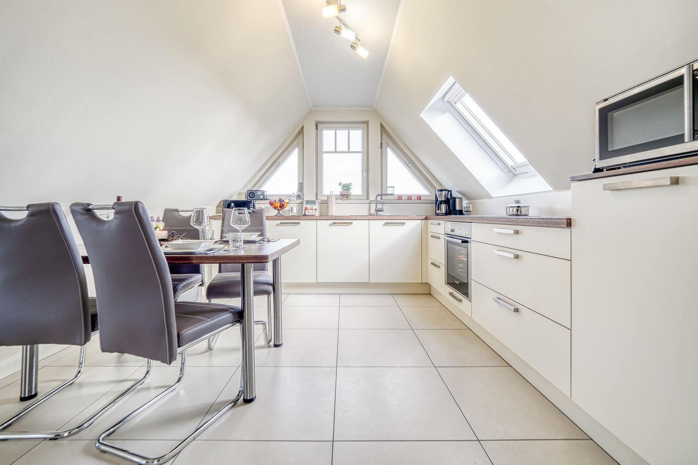 Die offene Küche ist hochwertig ausgestattet und lädt zum entspannten Kochen ein. Auf dem sonnigen Balkon genießen Sie Ruhe und frische Ostseeluft. Die Ferienwohnung befindet sich im zweiten Stock eines gepflegten Hauses und ist ein reines Nichtraucherdomizil. Kinder sind hier herzlich willkommen.