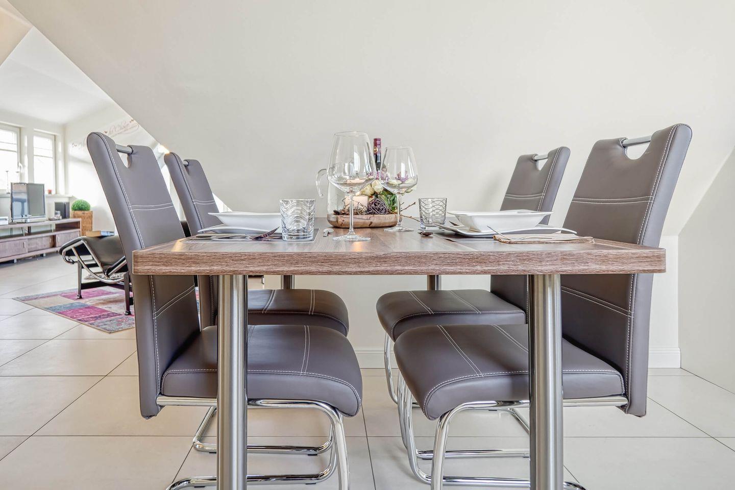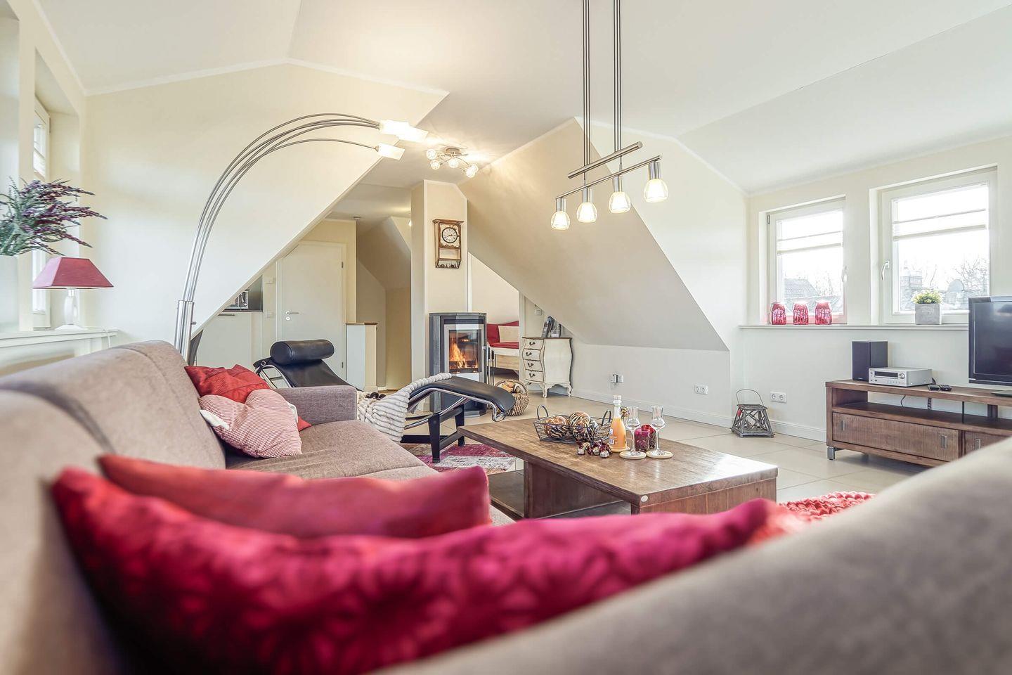 Diese moderne Ferienwohnung im Dachgeschoss vereint stilvolle Einrichtung mit gemütlichem Wohnkomfort auf rund 54?m² – ideal für zwei bis drei Personen. In zwei harmonisch abgestimmten Zimmern erwarten Sie ein großzügiger Wohnbereich mit Kamin, ein separates Schlafzimmer sowie ein Badezimmer mit ebenerdiger Dusche.