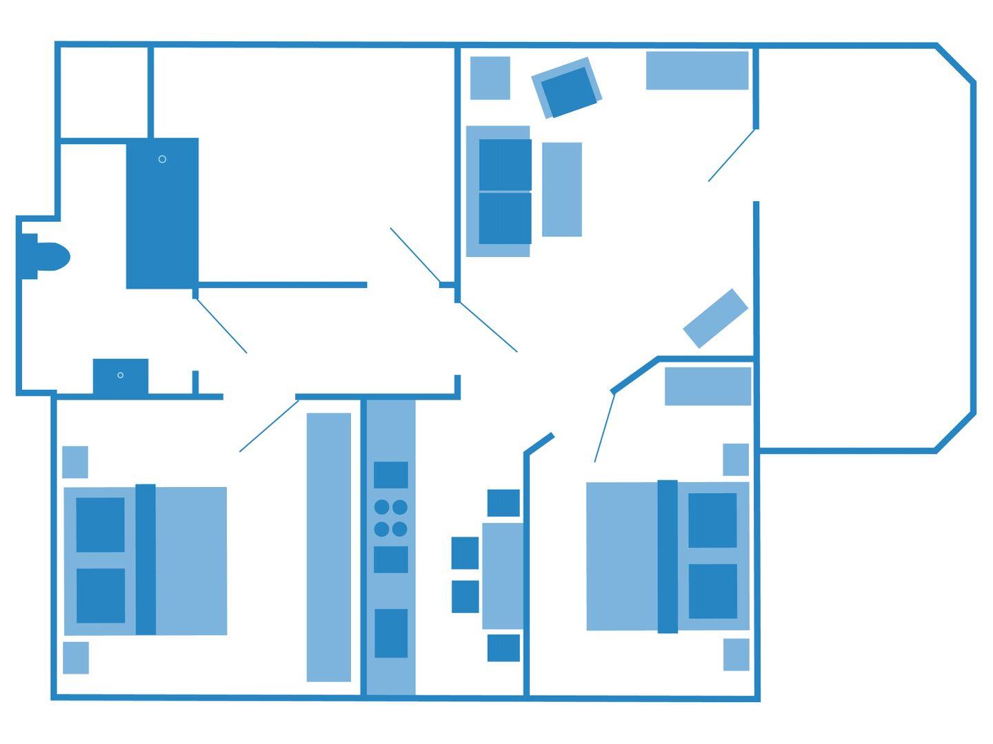 Zwei Schlafzimmer mit Doppelbetten, ein lichtdurchfluteter Wohnbereich mit Westbalkon sowie eine voll ausgestattete Küche mit Spülmaschine, Kaffeemaschine und Mikrowelle schaffen ideale Bedingungen für entspannte Ferientage. Zur Ausstattung zählen WLAN, TV, DVD-/CD-Player, Waschmaschine und ein verschließbarer Fahrradschuppen. Ein Parkplatz direkt am Haus und die schützende Schrankenanlage bieten zusätzliche Sicherheit und Komfort.
