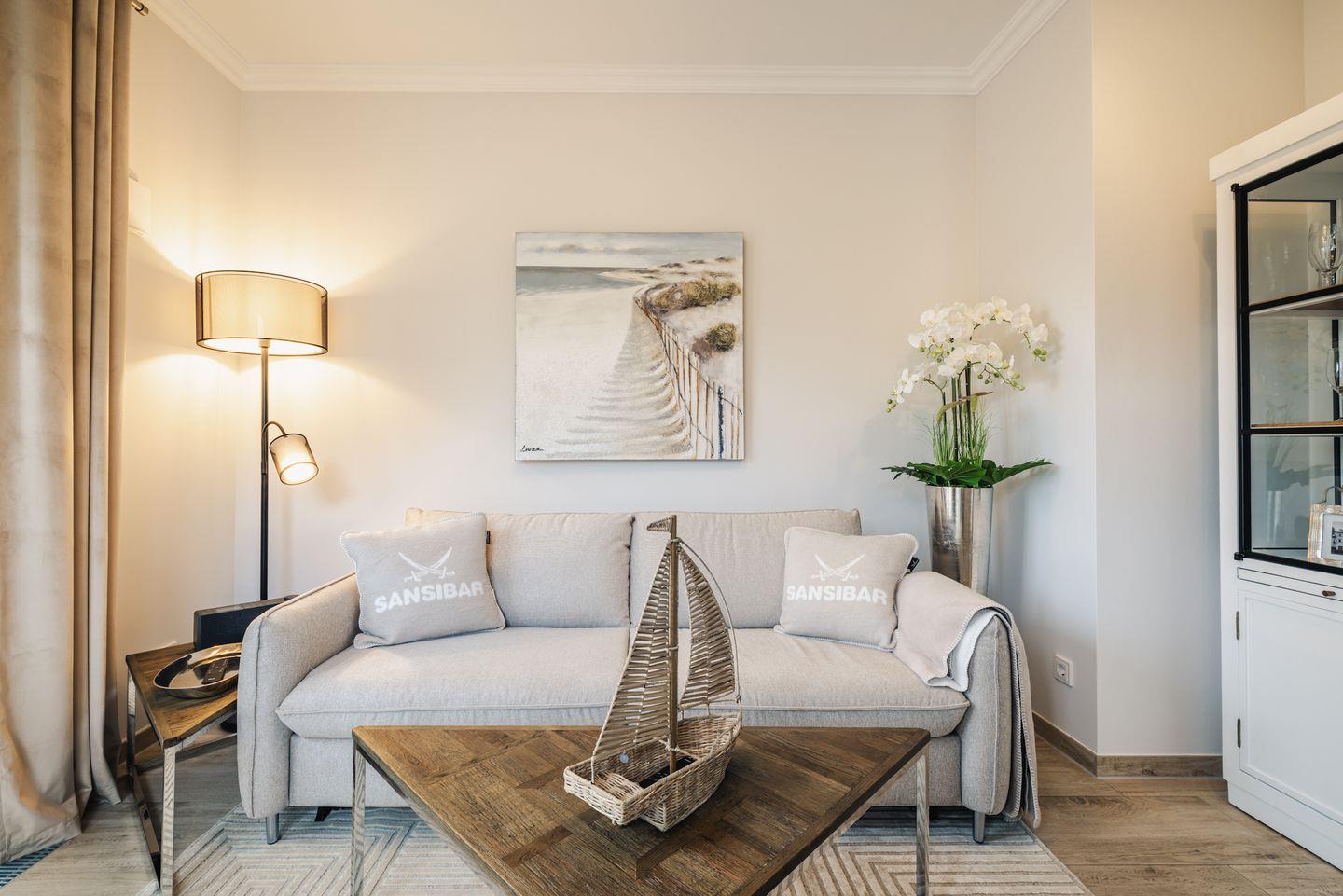 Die helle, barrierefreie Ferienwohnung wurde komplett neu eingerichtet und vereint exklusives Design mit natürlicher Gemütlichkeit. Edle Materialien, ausgewählte Hölzer und Möbel namhafter Labels wie Rivièra Maison schaffen ein harmonisches Ambiente im modernen Beach House-Stil – hell, elegant und maritim.