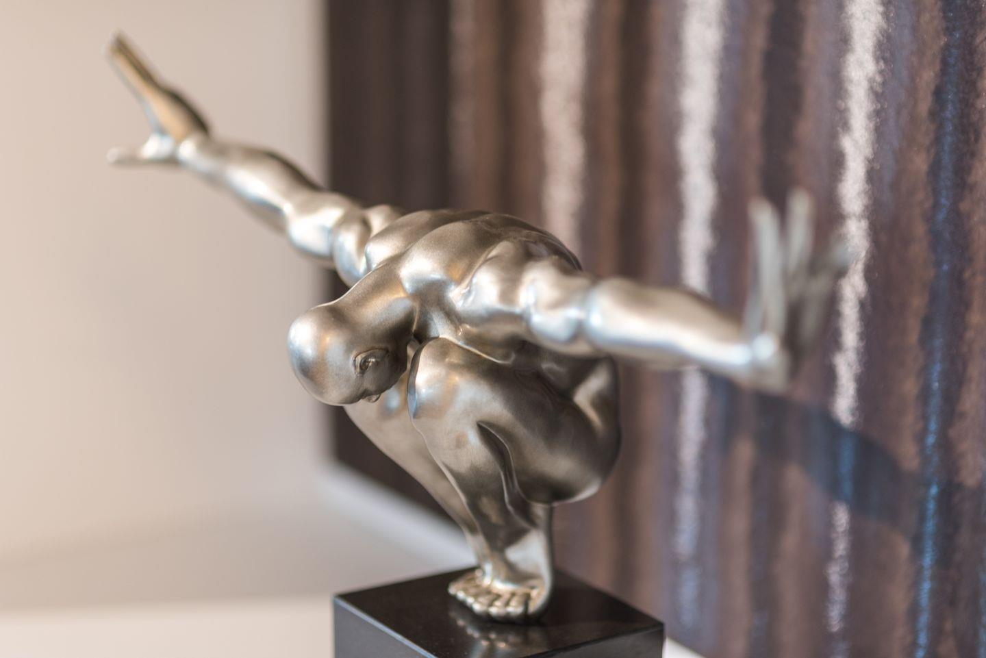 Ein Schlafzimmer bietet ein ungewöhnliches Schlaferlebnis im runden Erkerzimmer. 2 Bäder mit Regendusche, eine Badewanne, Musikschallung sorgt für luxuriösen Komfort.