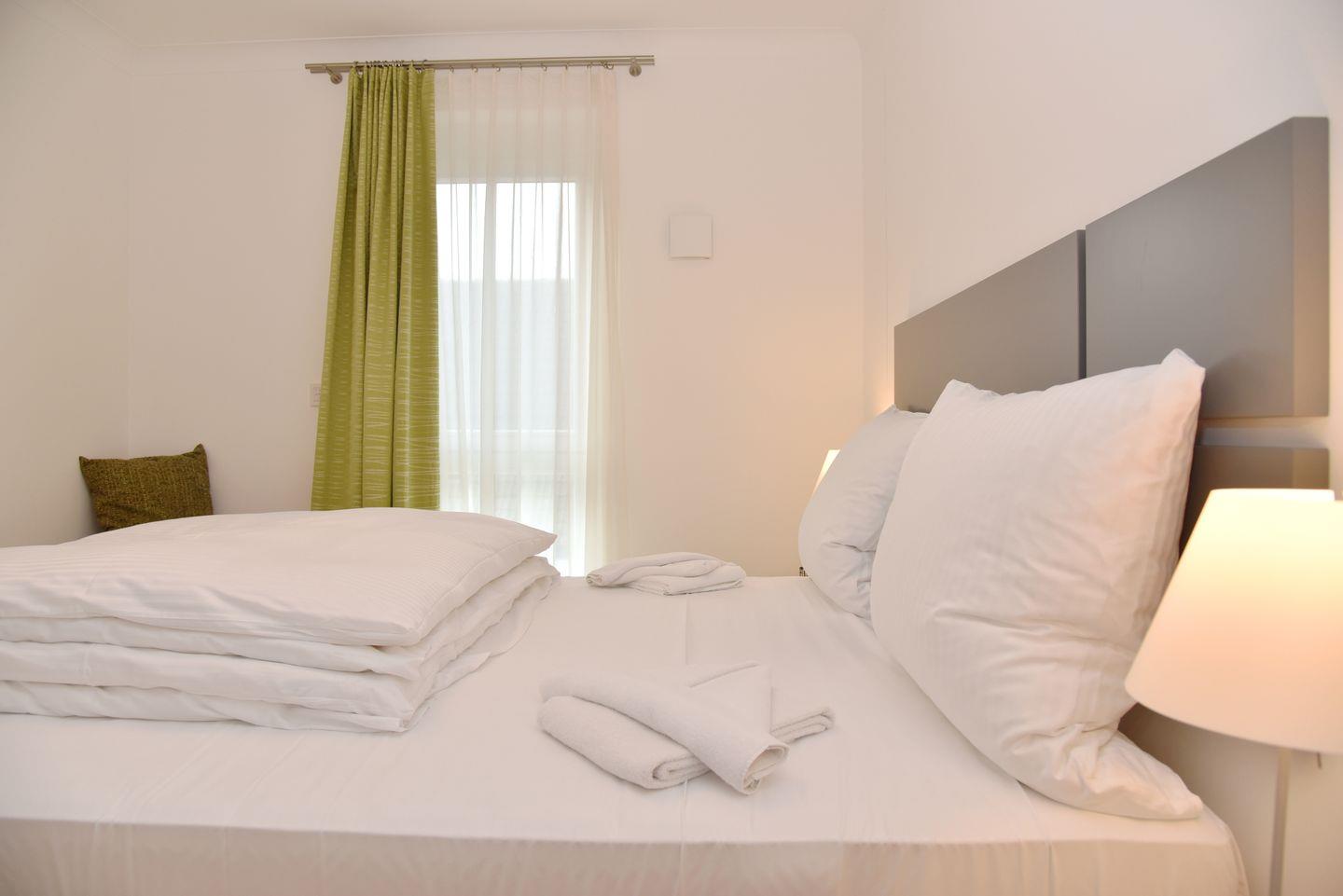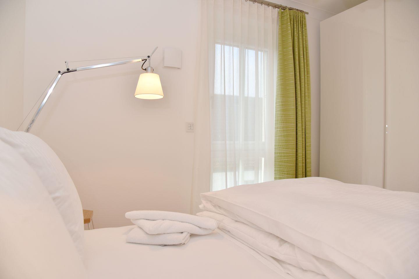 Die beiden Schlafzimmer verfügen über Boxspringbetten und ausreichend Stauraum für Ihre Kleidung.