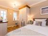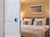 Das Schlafzimmer ist ausgestattet mit einem bequemen Boxspringbett.