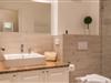 Das großzügige Badezimmer verfügt über eine bodengleiche Dusche und einen Handtuchheizkörper.