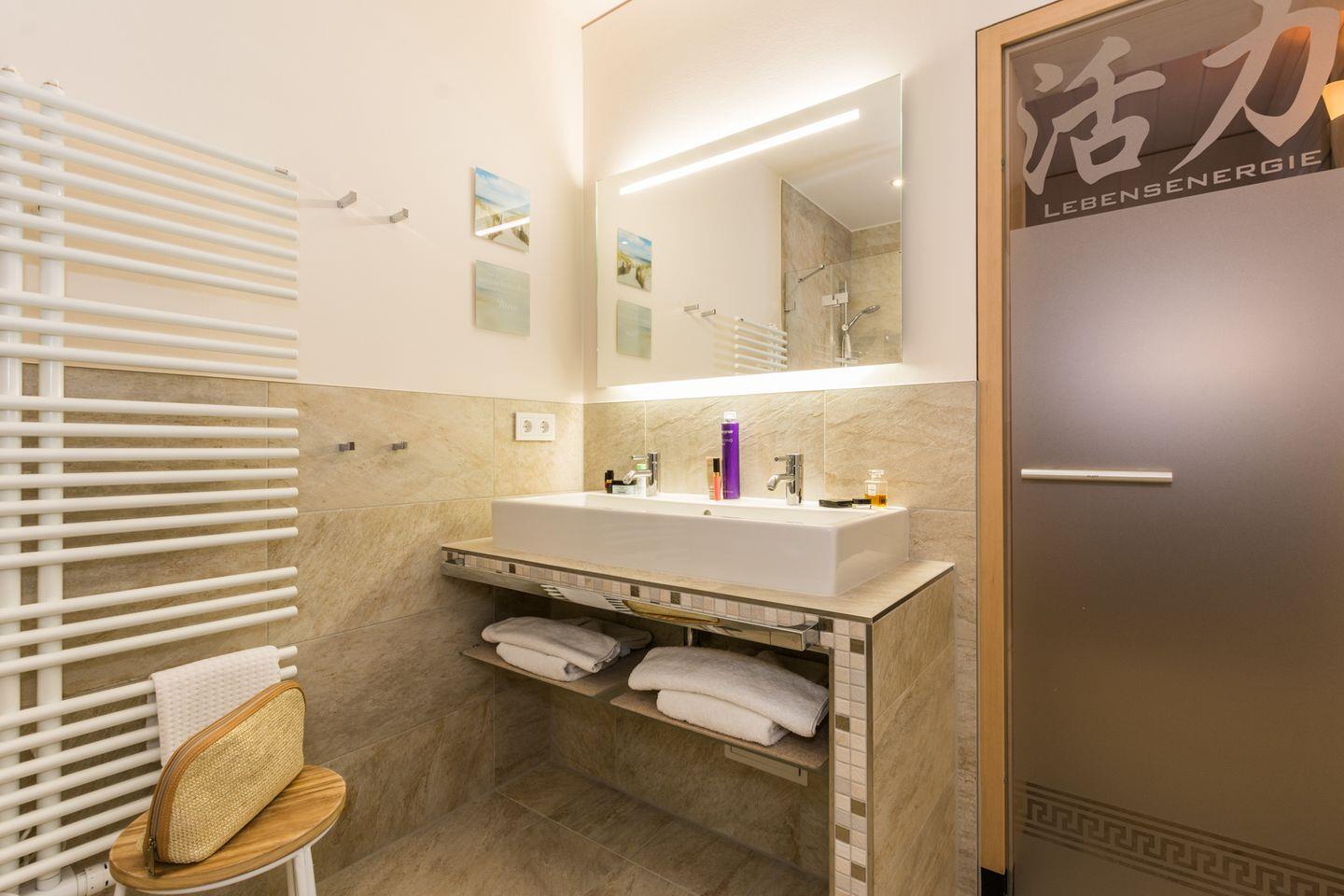 In der neu errichteten Suite in direkter Strandlage befindet sich diese luxuriöse Wellness-Suite "Seestern" mit 2 möbilierten Balkonen (einer zur Ostsee einer nach Süden) und einer wunderschönen Sauna mit Kaminblick.