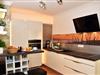 In der neu errichteten Suite in direkter Strandlage befindet sich der lichtdurchflutete Wohnbereich mit Couch- und Essecke und einer komfortabel ausgestatteten Küchenzeile.